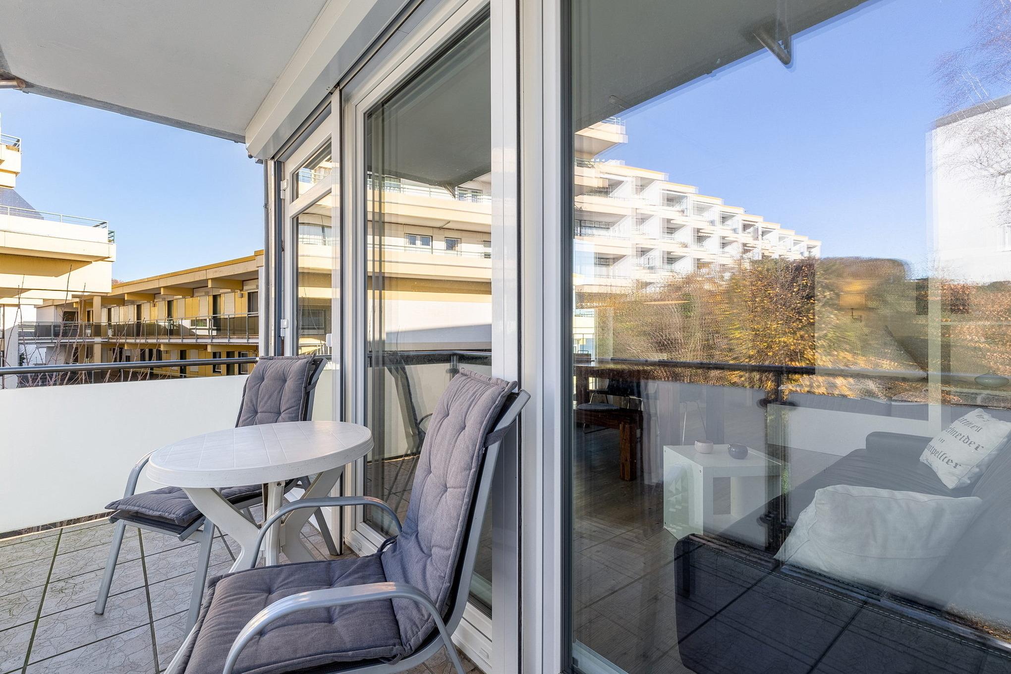 Kostenloser Strandkorb, Balkon in nord-westliche Richtung, Teilseeblick vom Wohn- und Esszimmer, eigener Pkw-Stellplatz direkt hinter dem Gebäude (sehr schmal), Waschmaschine, Trockner und Sauna gegen Gebühr, Fahrstuhl vorhanden.