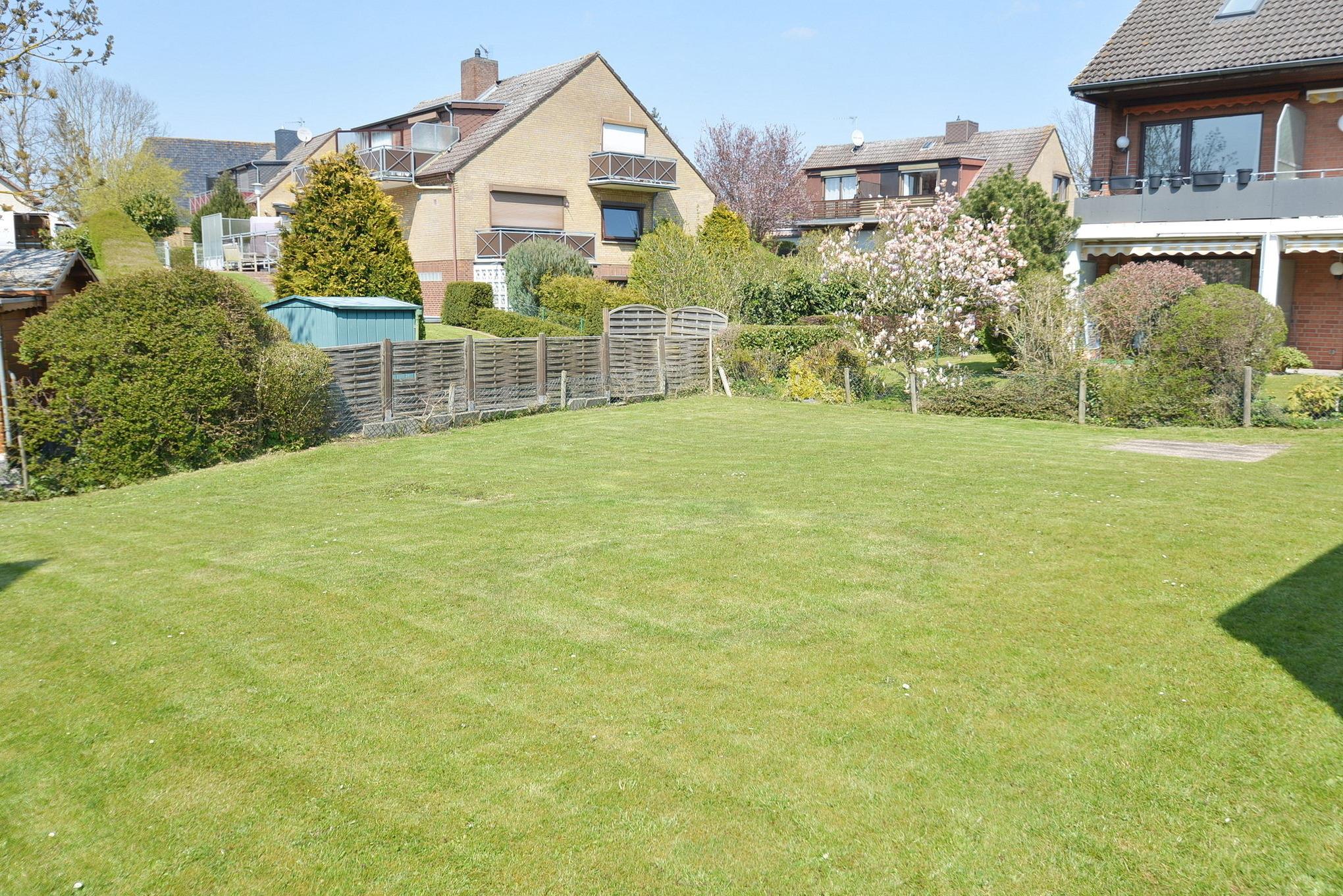 Gemütliches Apartment in Grömitz mit moderner Küche und großem Gemeinschaftsgarten, nur wenige Gehminuten vom Strand entfernt.