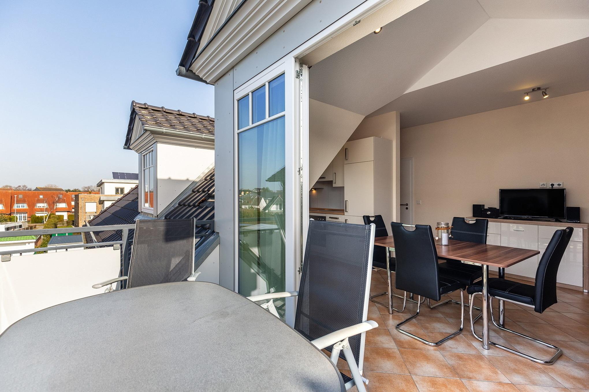 Moderne Ferienwohnung in Grömitz mit Balkon, Aufzug und Nähe zum Strand für erholsamen Urlaub.