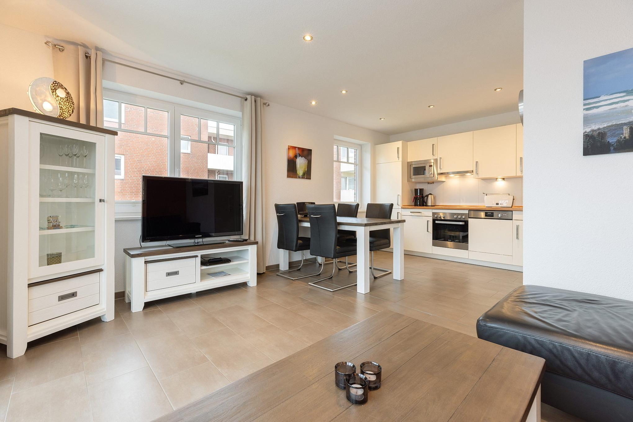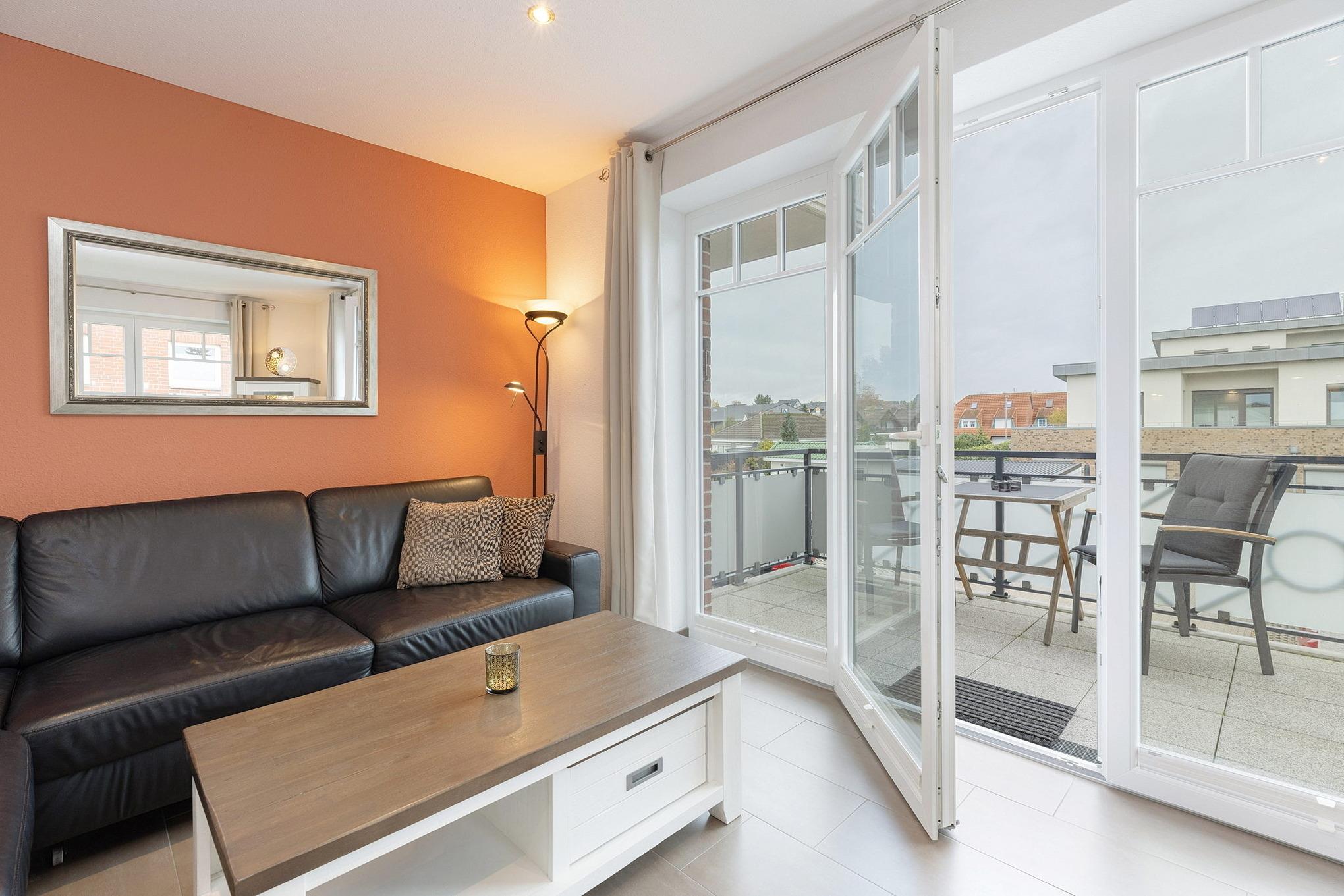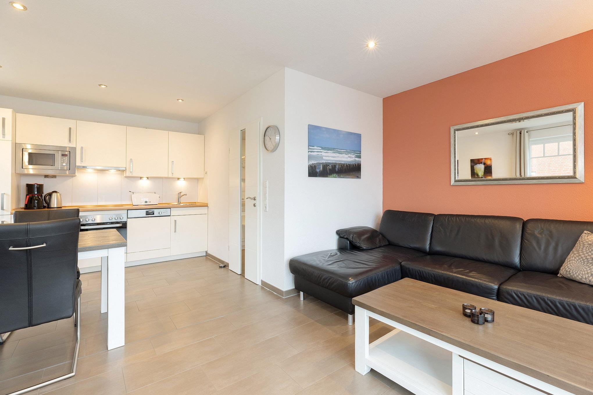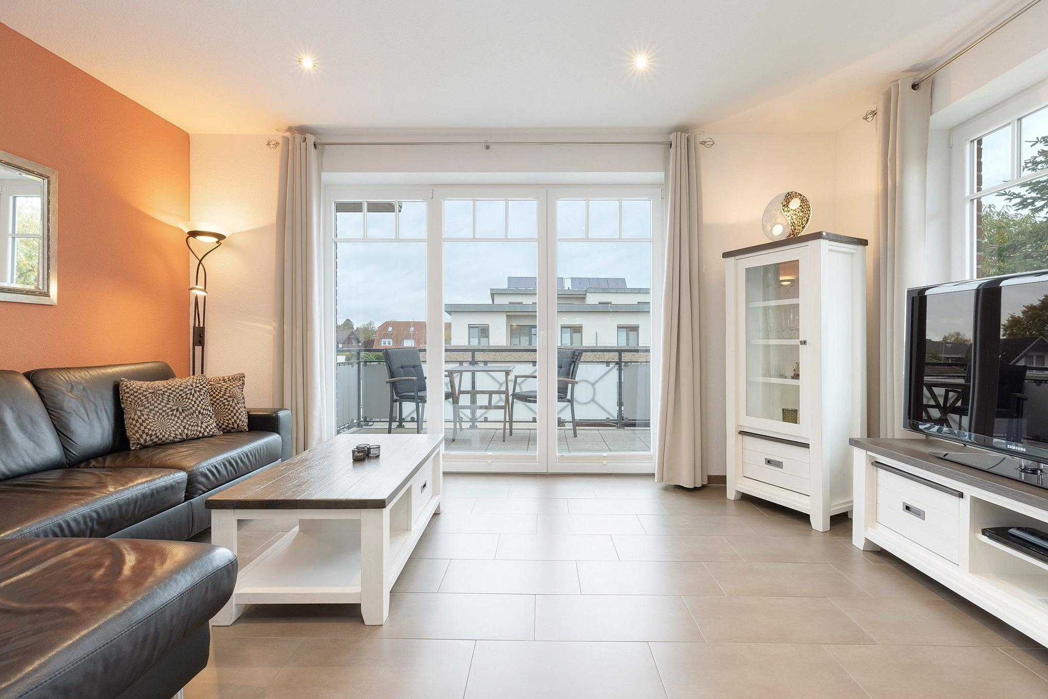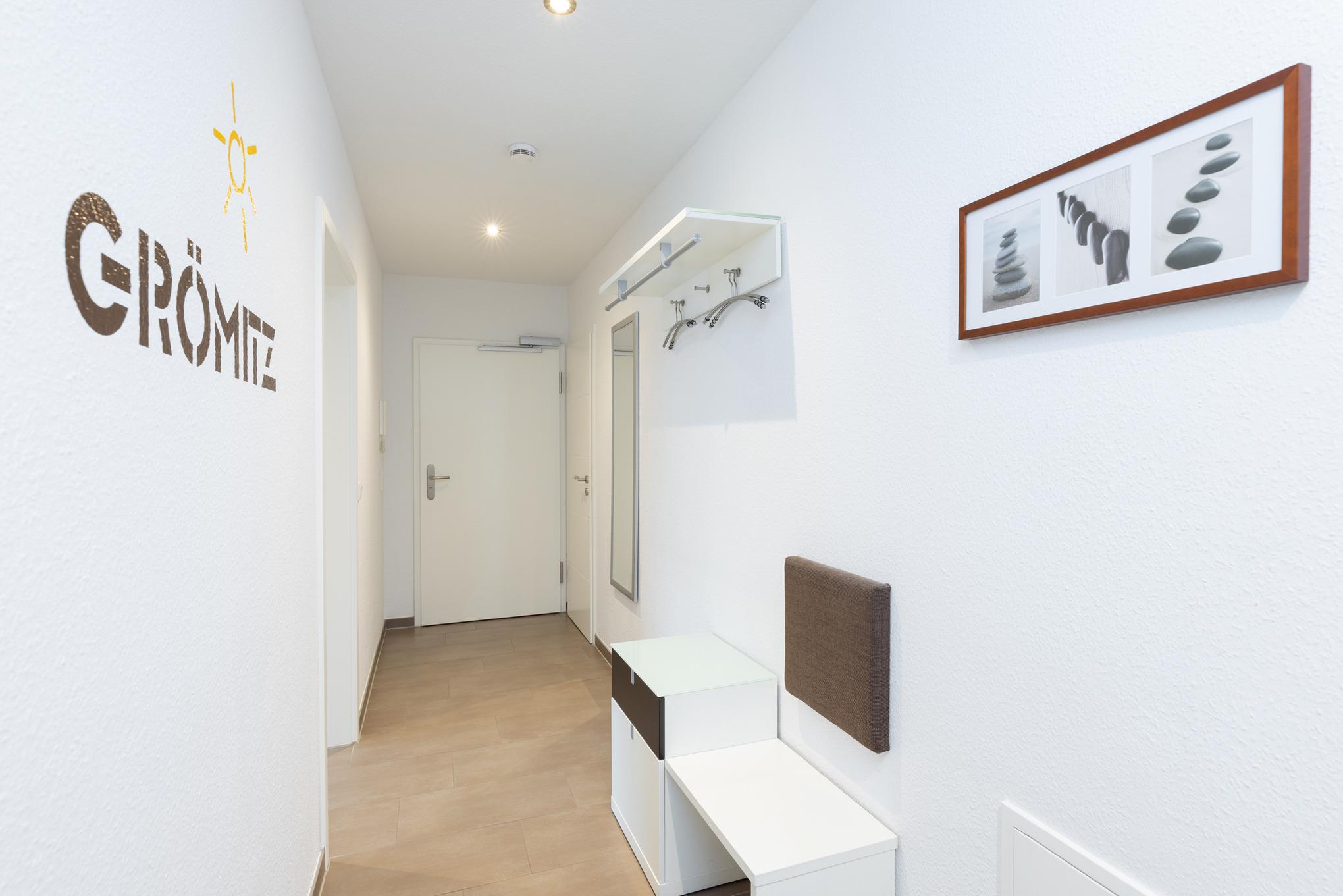 Moderne Ferienwohnung in Grömitz mit Balkon, Fußbodenheizung und kostenlosem WLAN, wenige Gehminuten vom Strand entfernt.