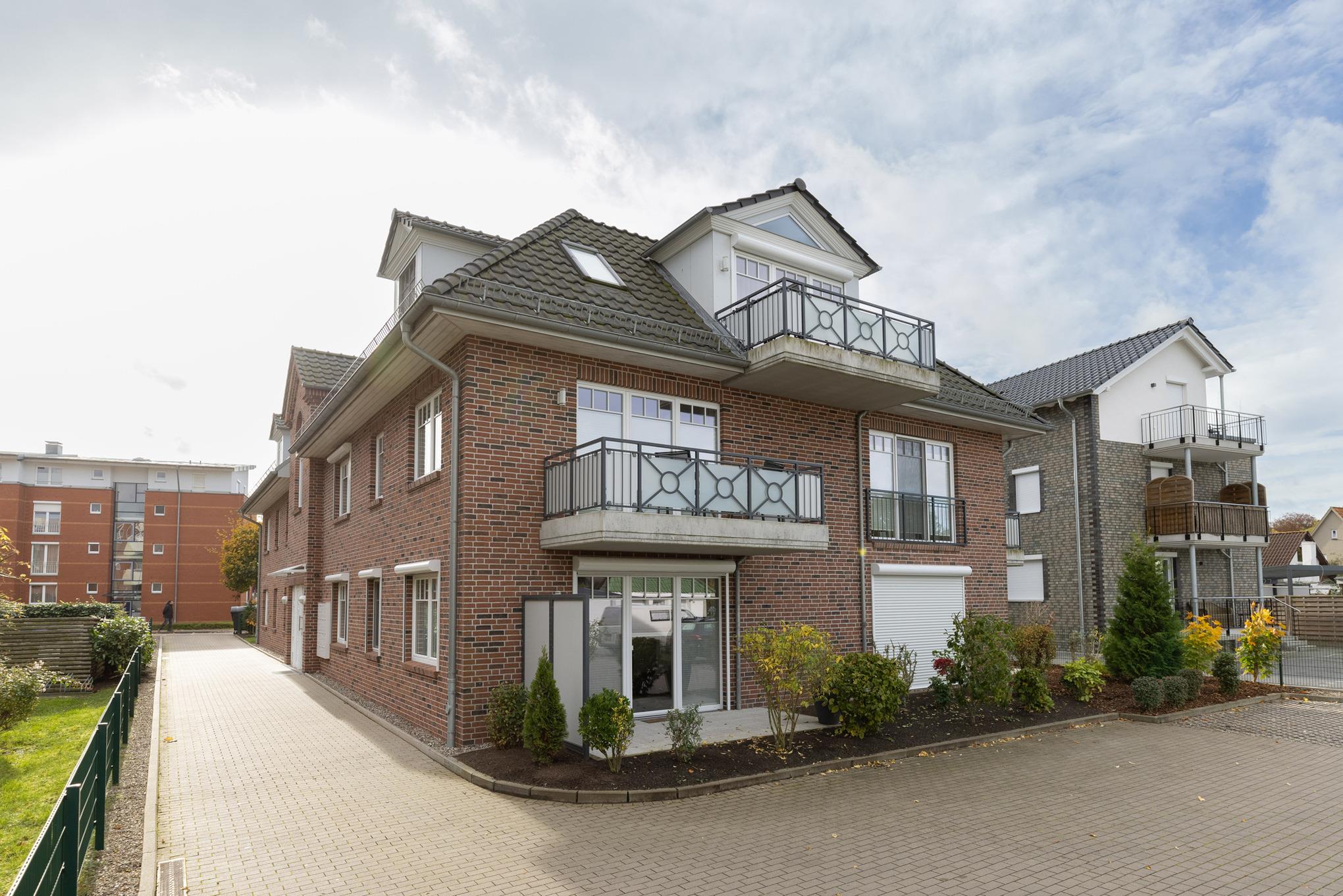 Das moderne Wohnhaus befindet sich in zentraler Lage von Grömitz nur wenige Gehminuten vom Strand entfernt. Alle Wohnungen sind barrierefrei durch einen Aufzug erreichbar. Die Parkplätze befinden sich hinter dem Gebäude.