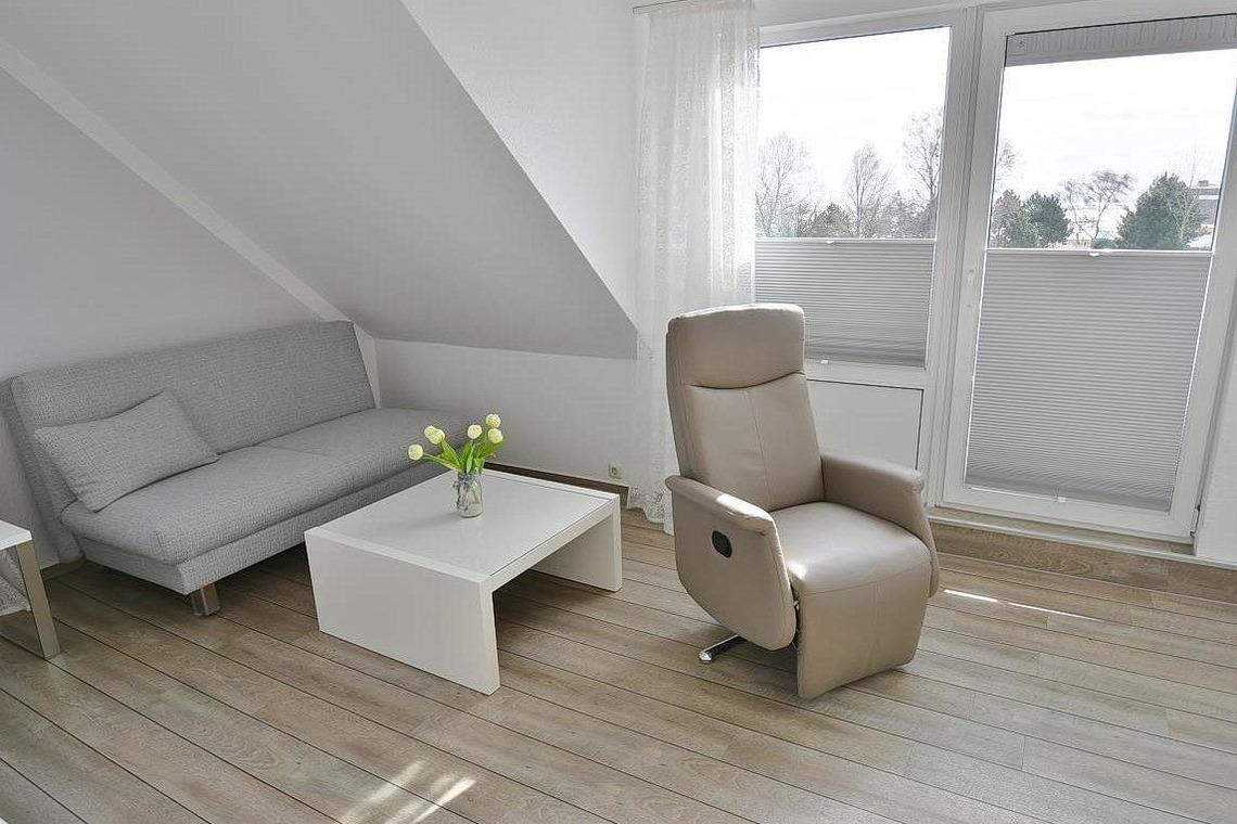 Modernes Maisonette-Apartment mit Meerblick und zwei Balkonen in Grömitz, ideal für entspannte Urlaubstage.