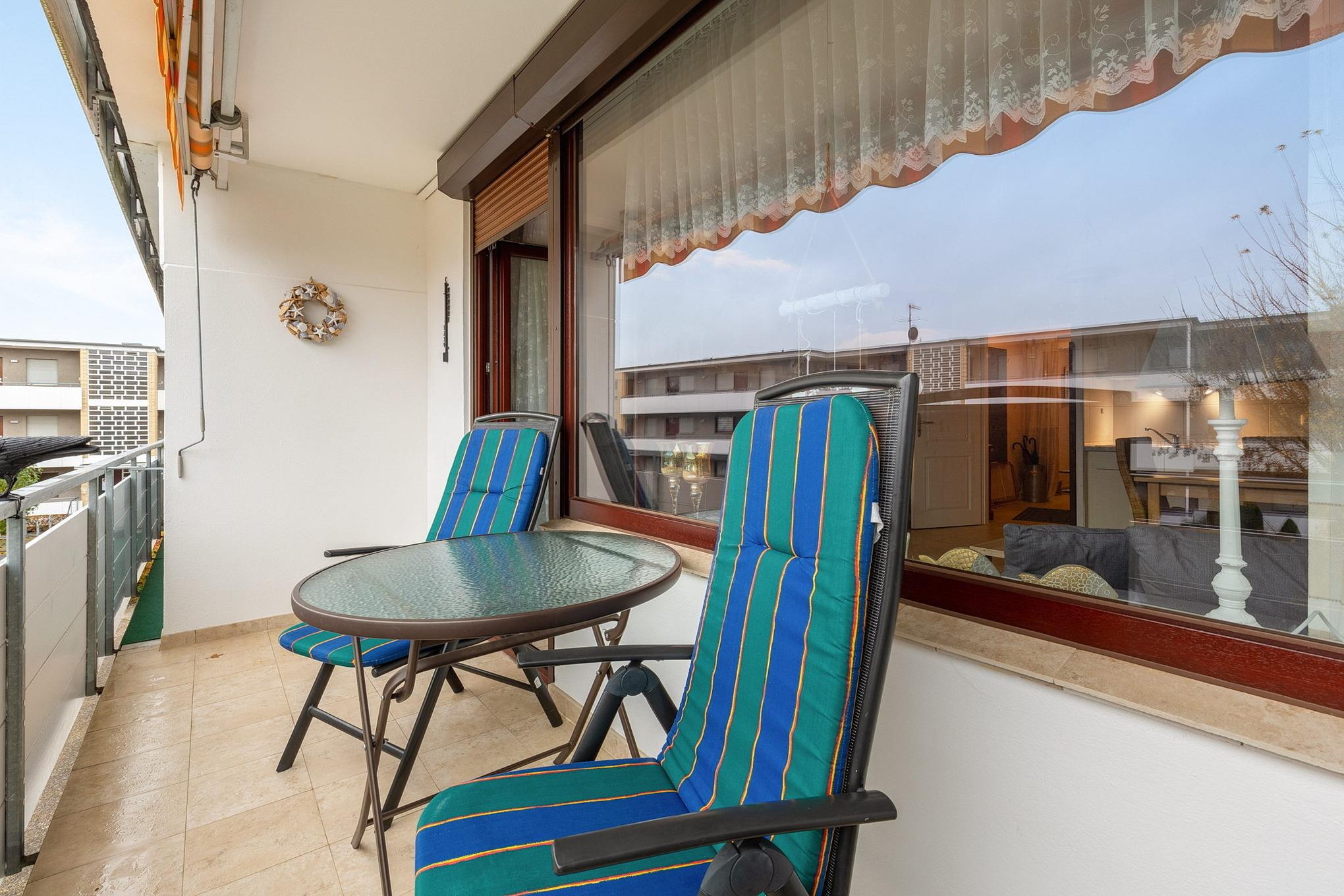 Moderne Ferienwohnung mit Balkon und zentraler Lage in Grömitz, nur wenige Gehminuten vom Strand entfernt.