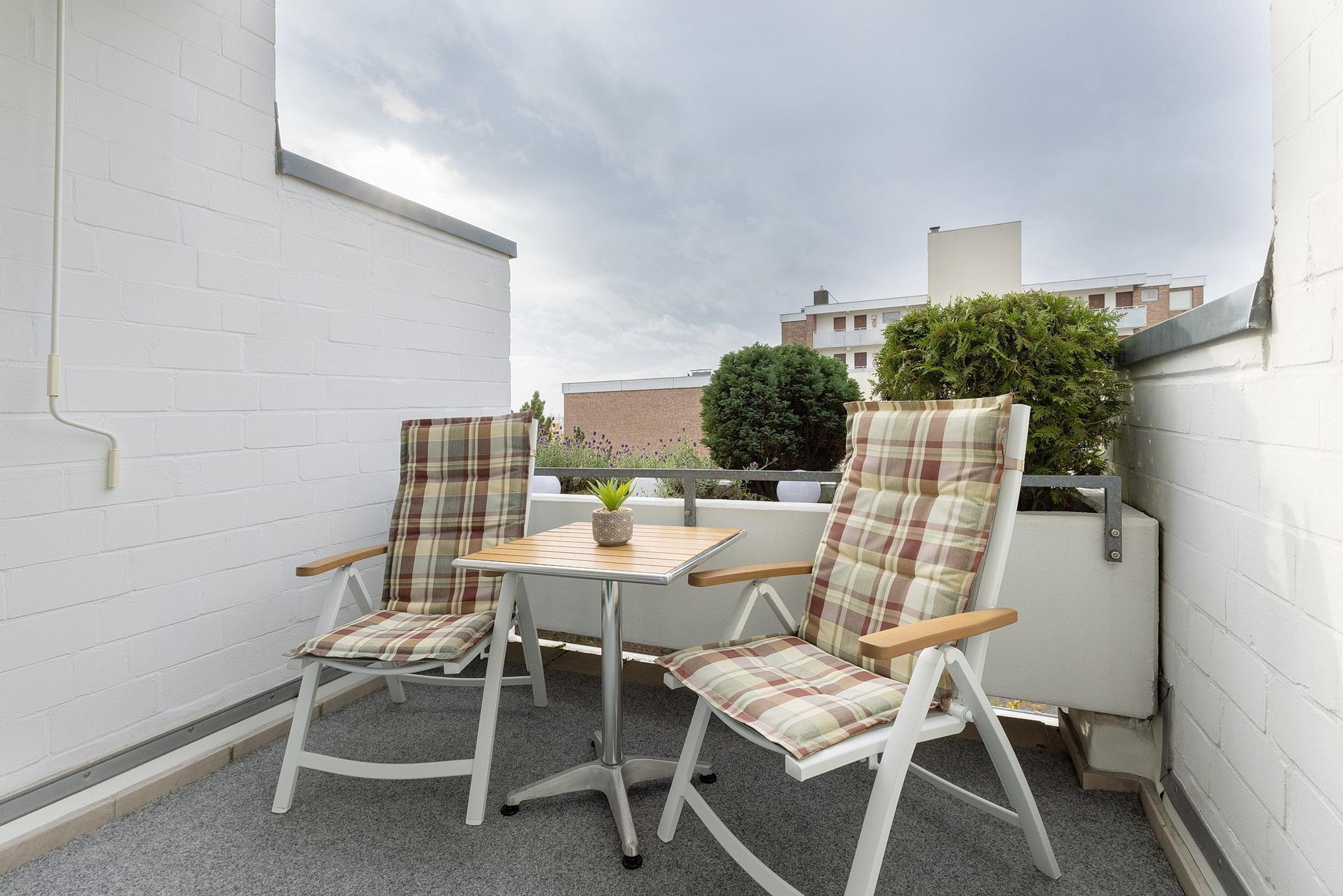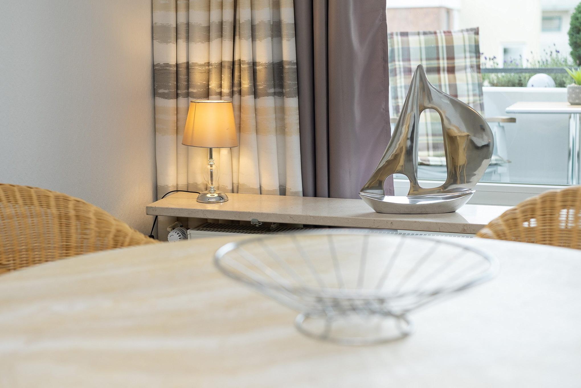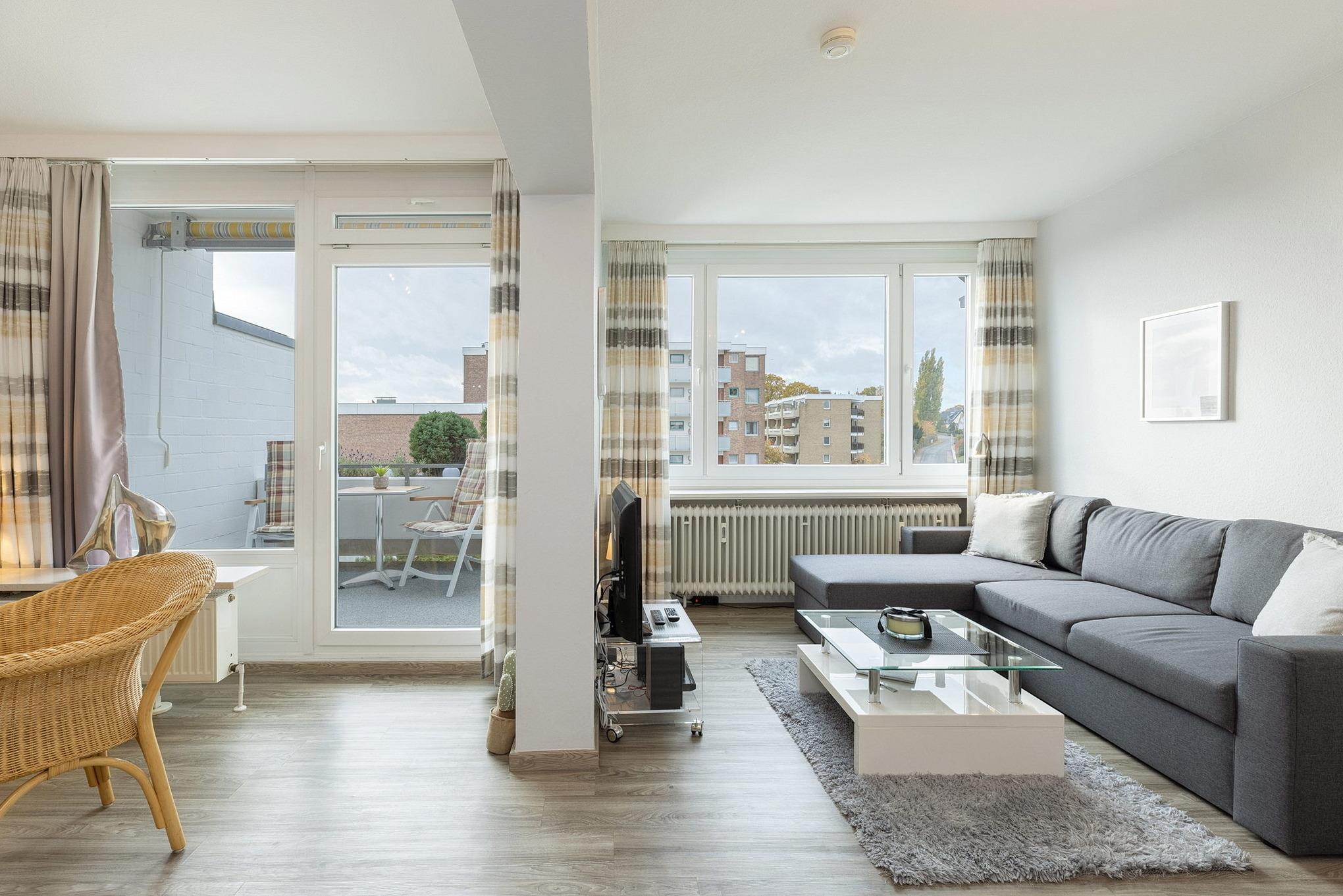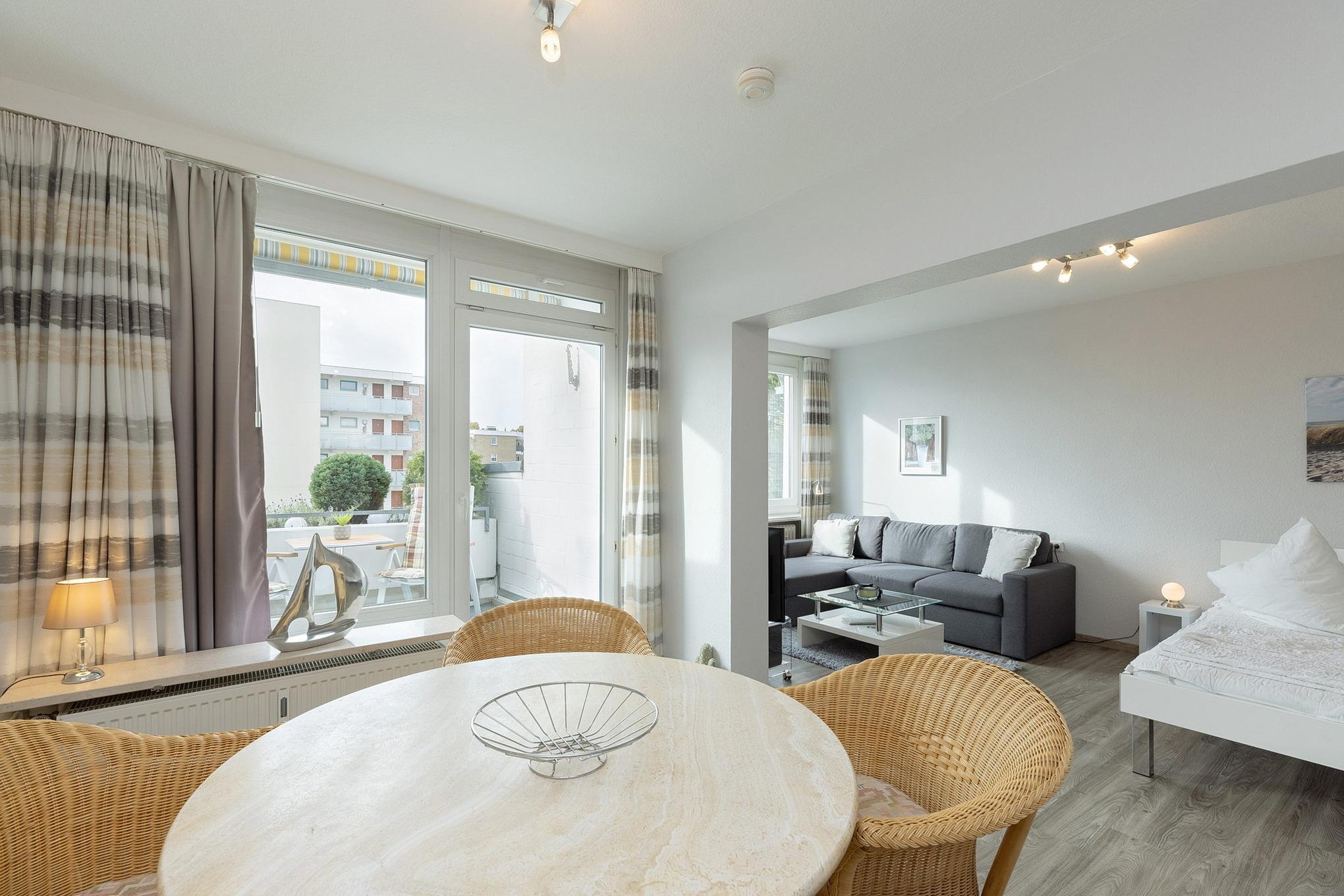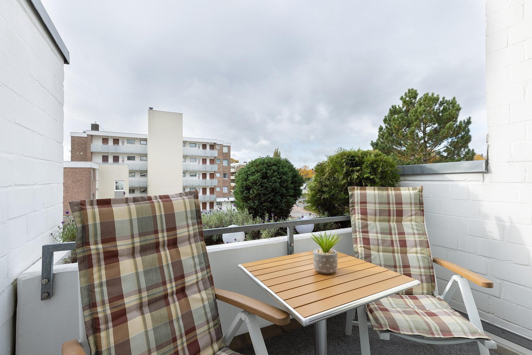 Gemütliche Ferienwohnung mit Balkon und seitlichem Seeblick in Grömitz, nur 100m vom Strand und der Promenade entfernt.