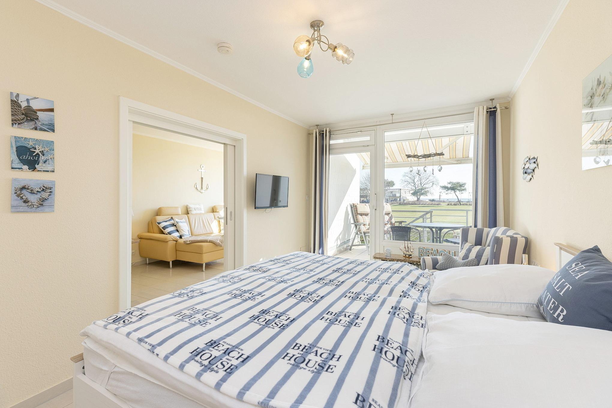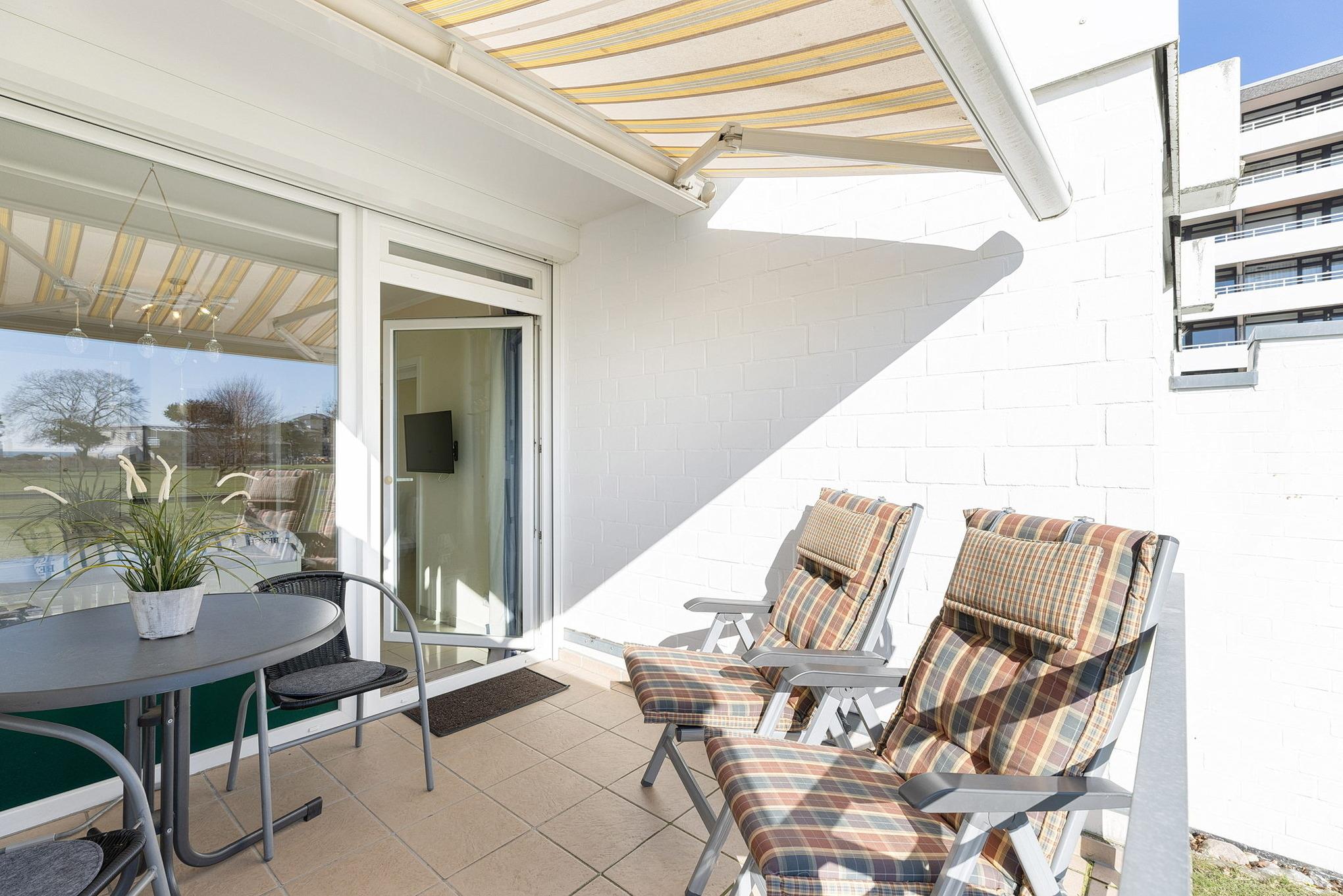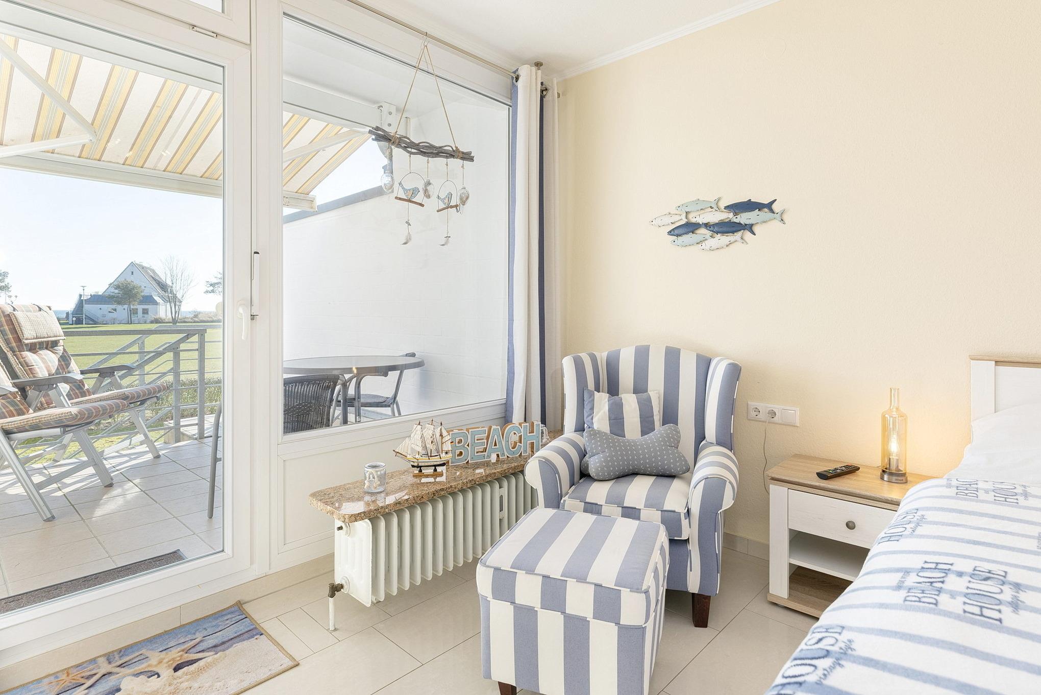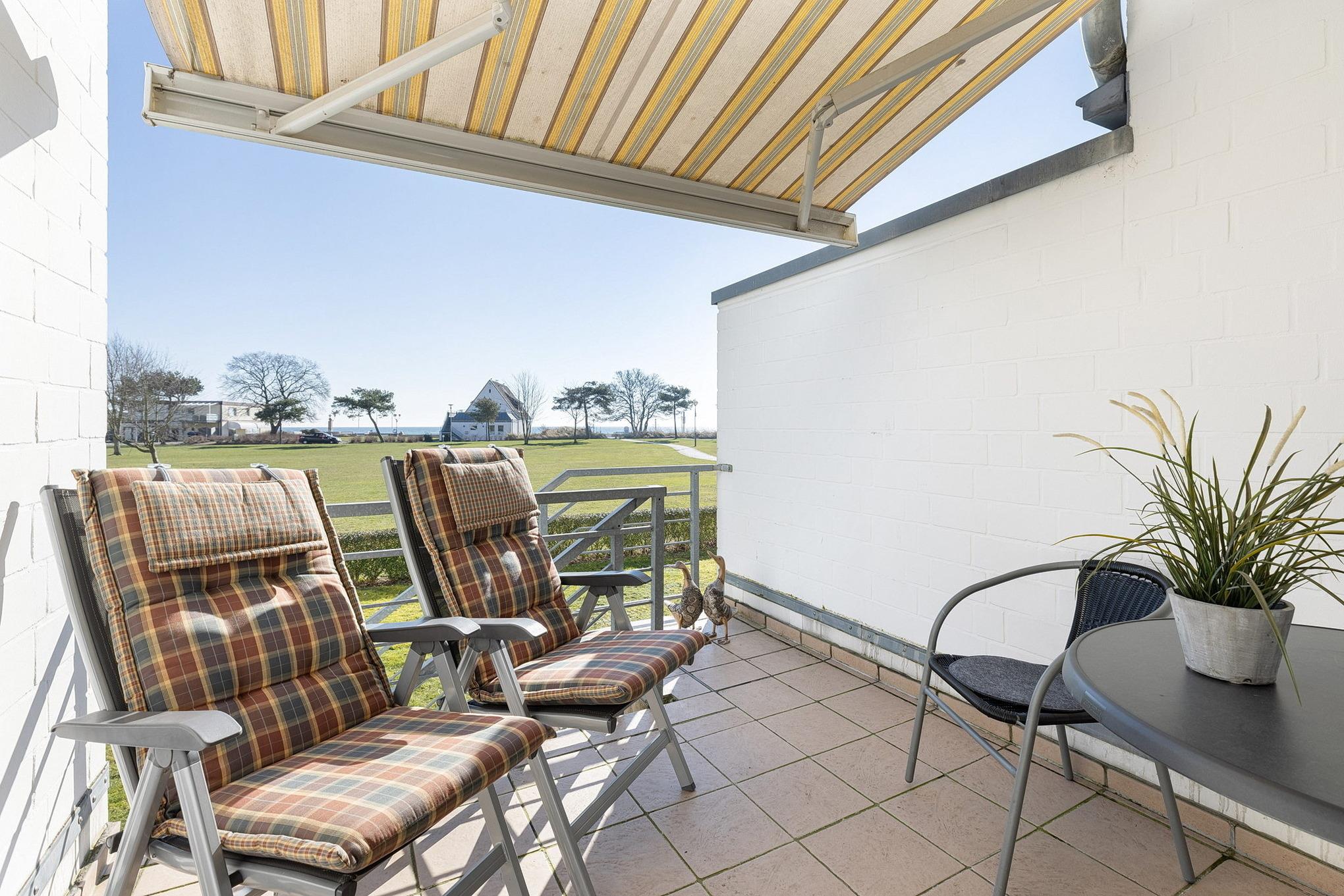 Komfortable Ferienwohnung in Grömitz mit Seeblick und eigenem Strandzugang, nur 100m von Promenade und Strand entfernt.