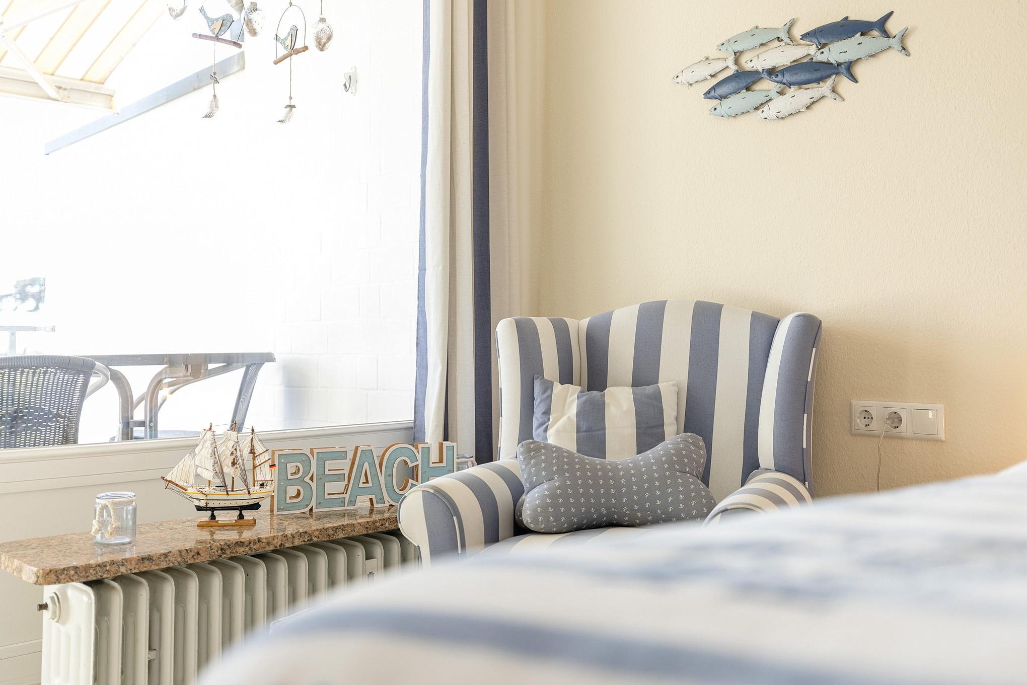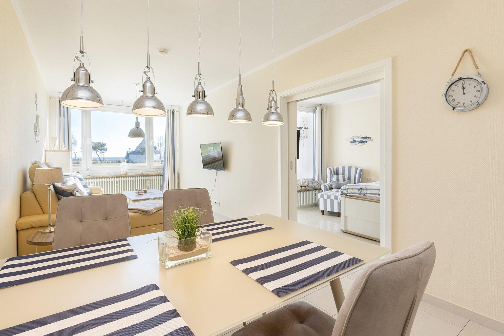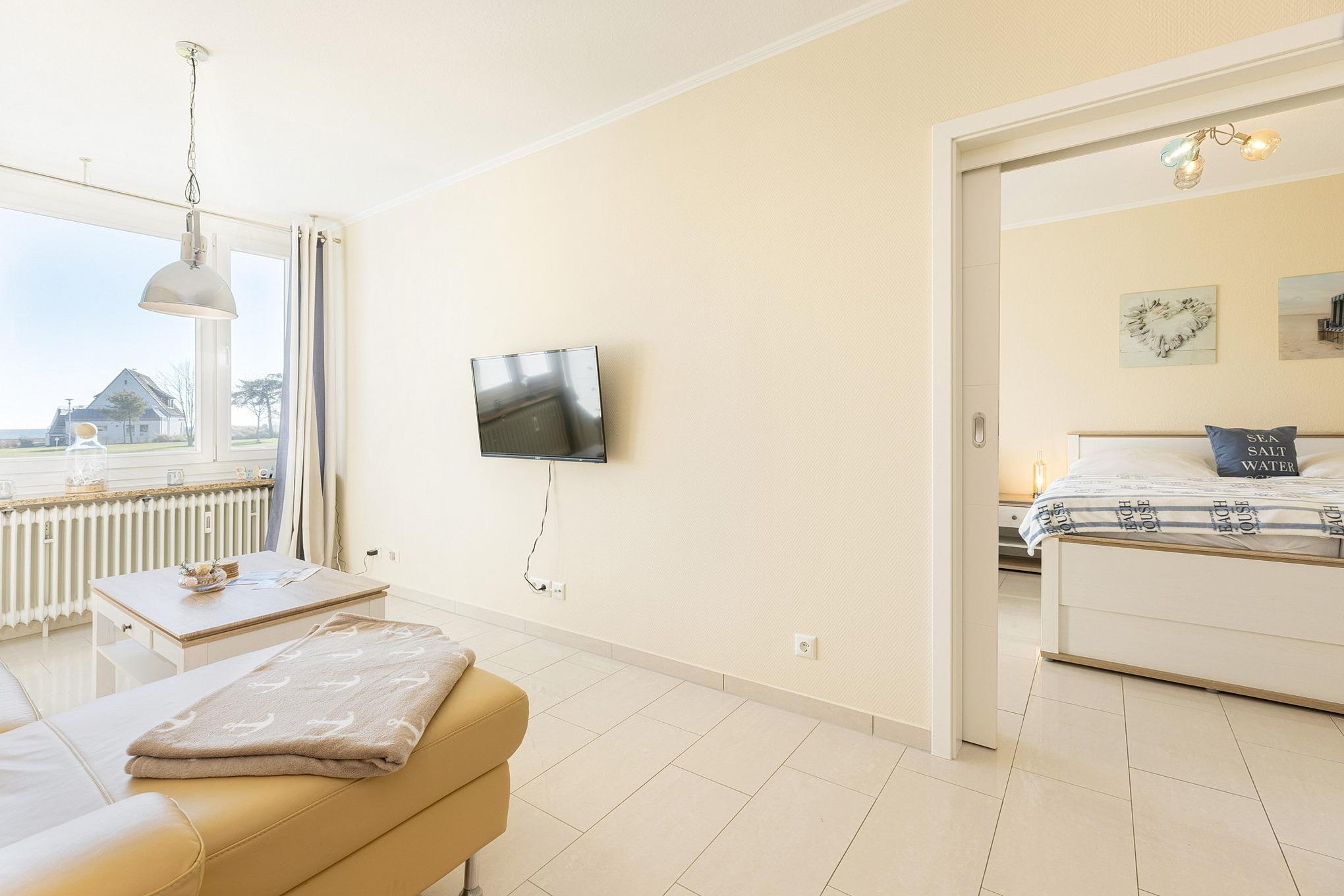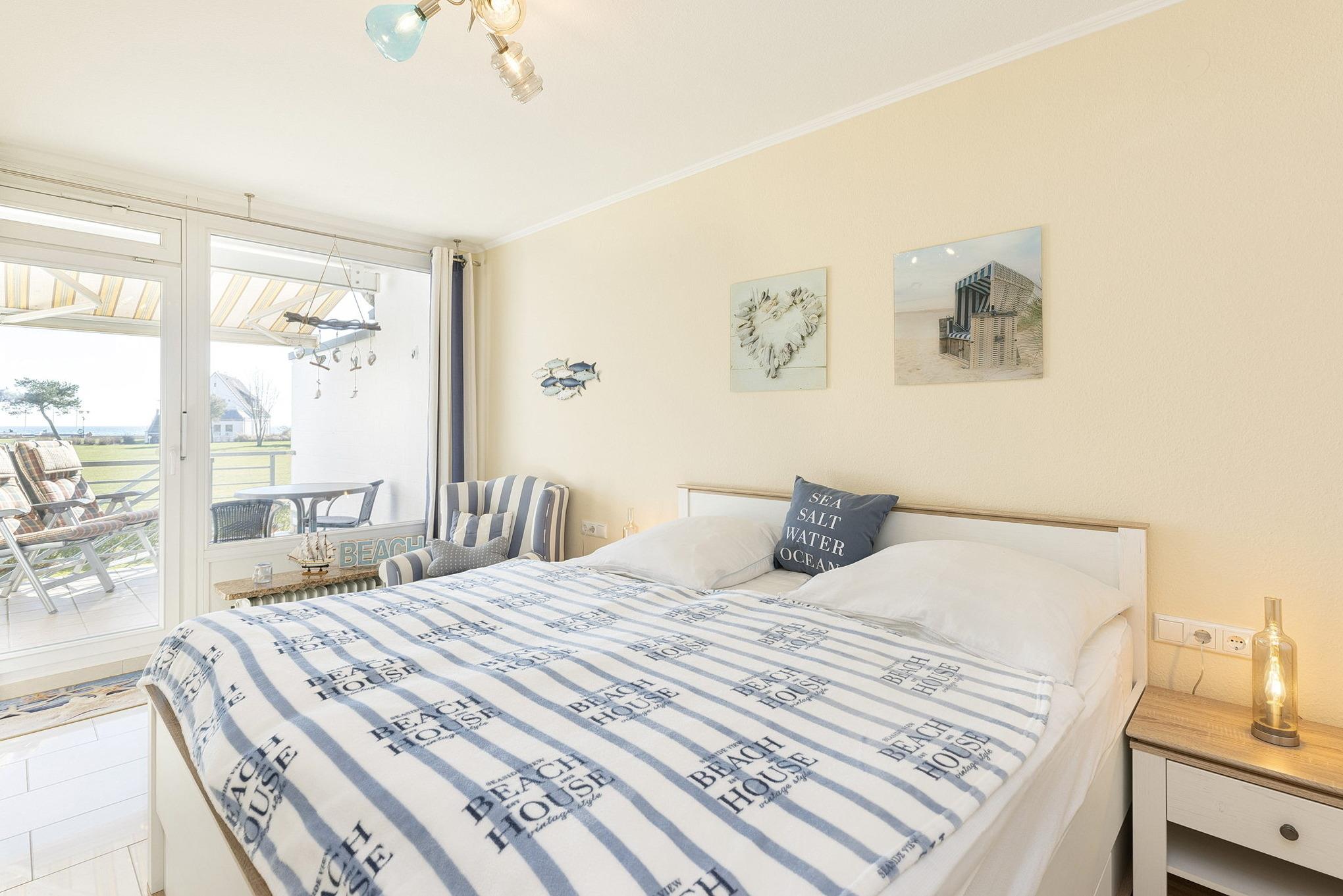 Komfortable Ferienwohnung in Grömitz mit Seeblick und eigenem Strandzugang, nur 100m von Promenade und Strand entfernt.