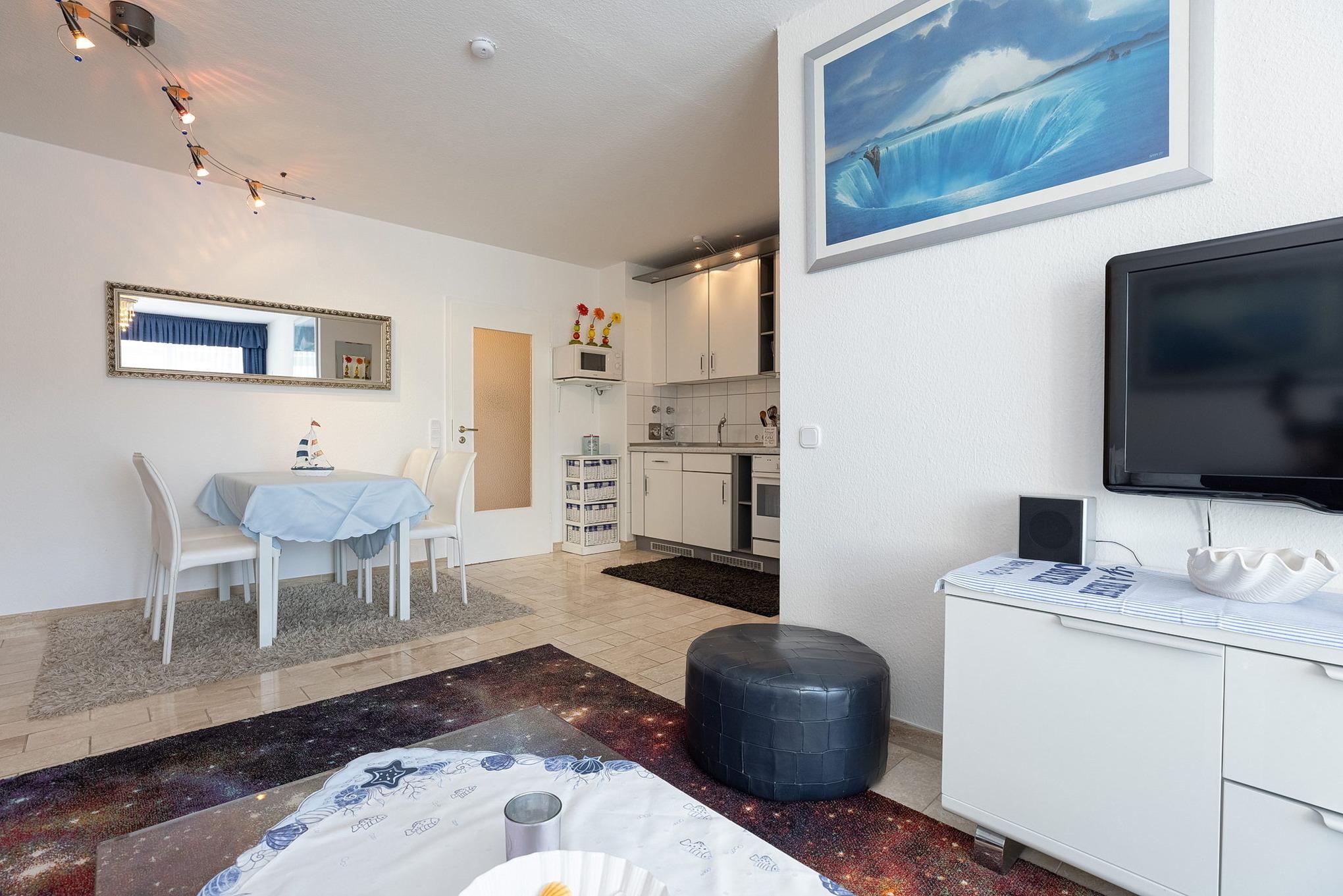 Gemütliche Ferienwohnung in Grömitz mit Balkon, moderner Küche und WLAN, nur wenige Schritte vom Strand entfernt.