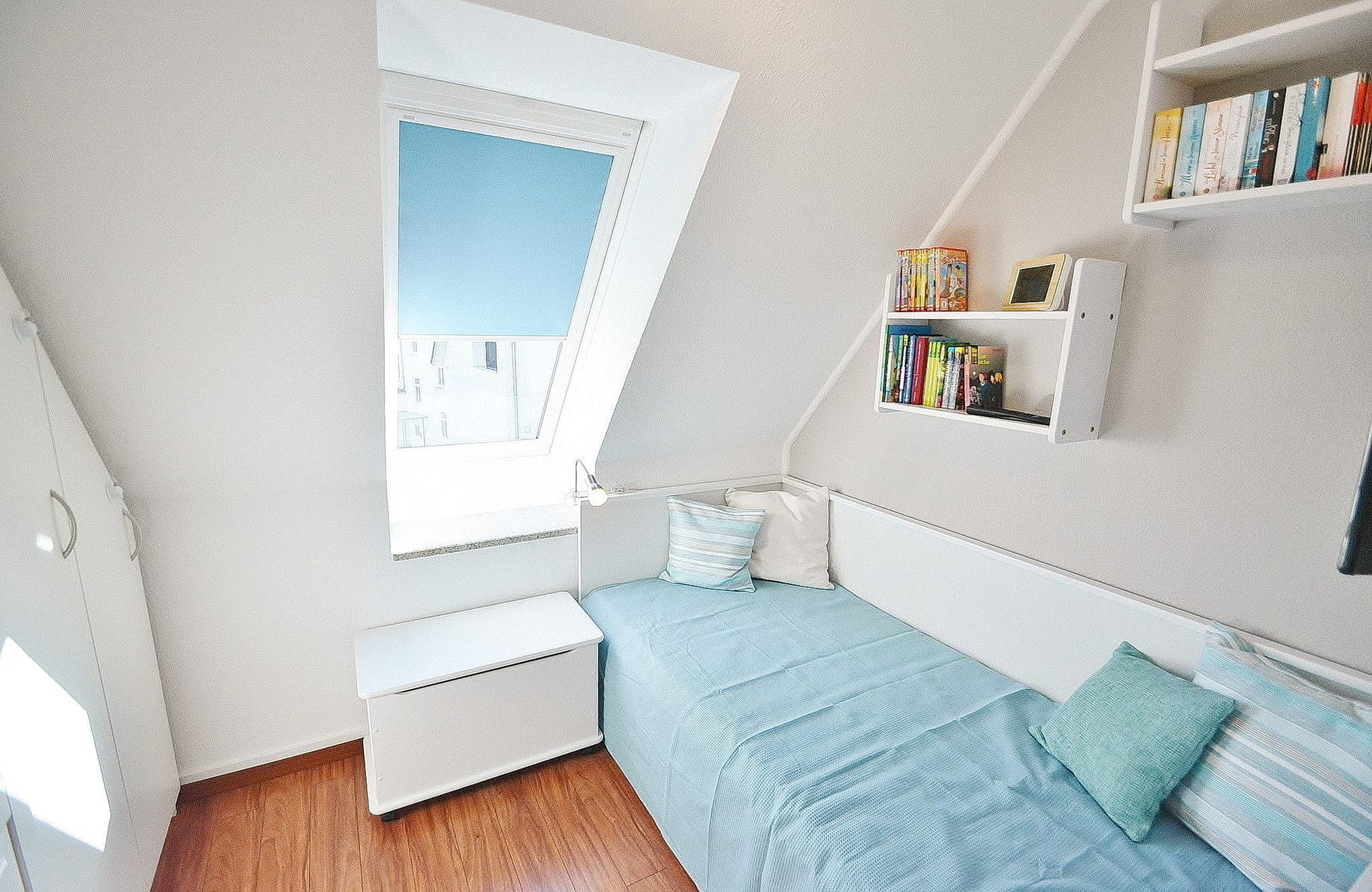Das kleine, separate und modern ausgestattete Kinderzimmer ist mit einem Bett (90x200) und einem Einbaukleiderschrank ausgestattet. Das Zimmer ist mit Designer-Planken ausgelegt; das Fenster lässt sich durch ein Innenrollo fast vollständig verdunkeln. Zur Unterhaltung steht ein Flachbildfernseher mit DVD-Player zur Verfügung.