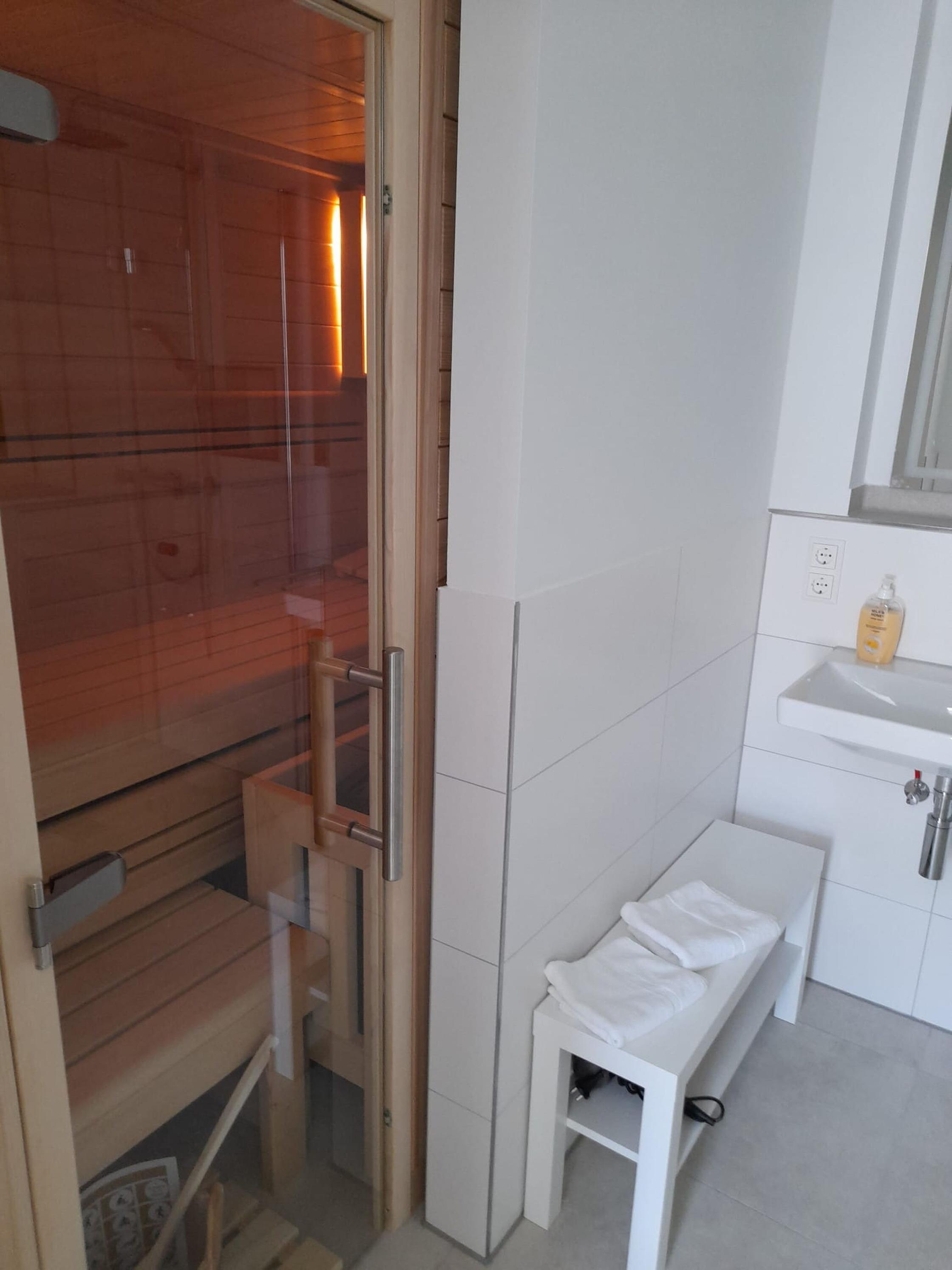 Ein besonderes Highlight der Wohnung ist die private Sauna, in der Sie nach einem erlebnisreichen Tag am Strand oder bei einer Fahrradtour wunderbar entspannen können.