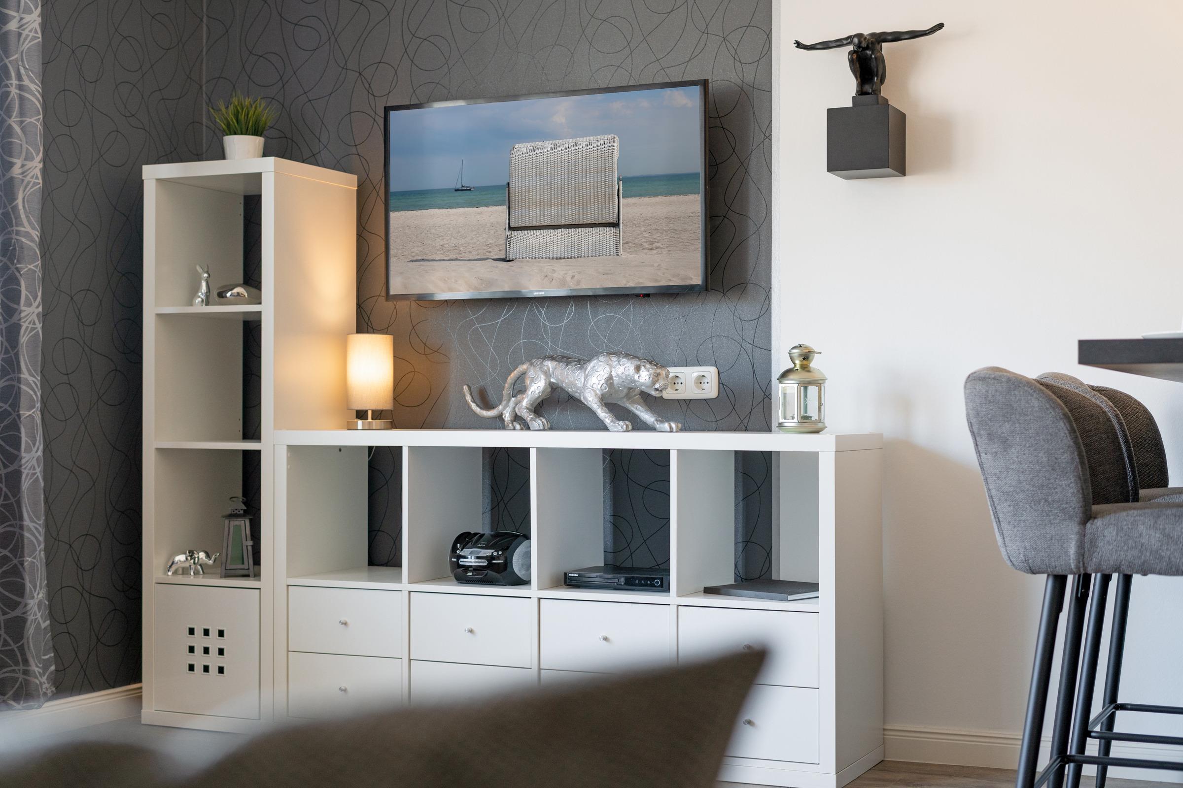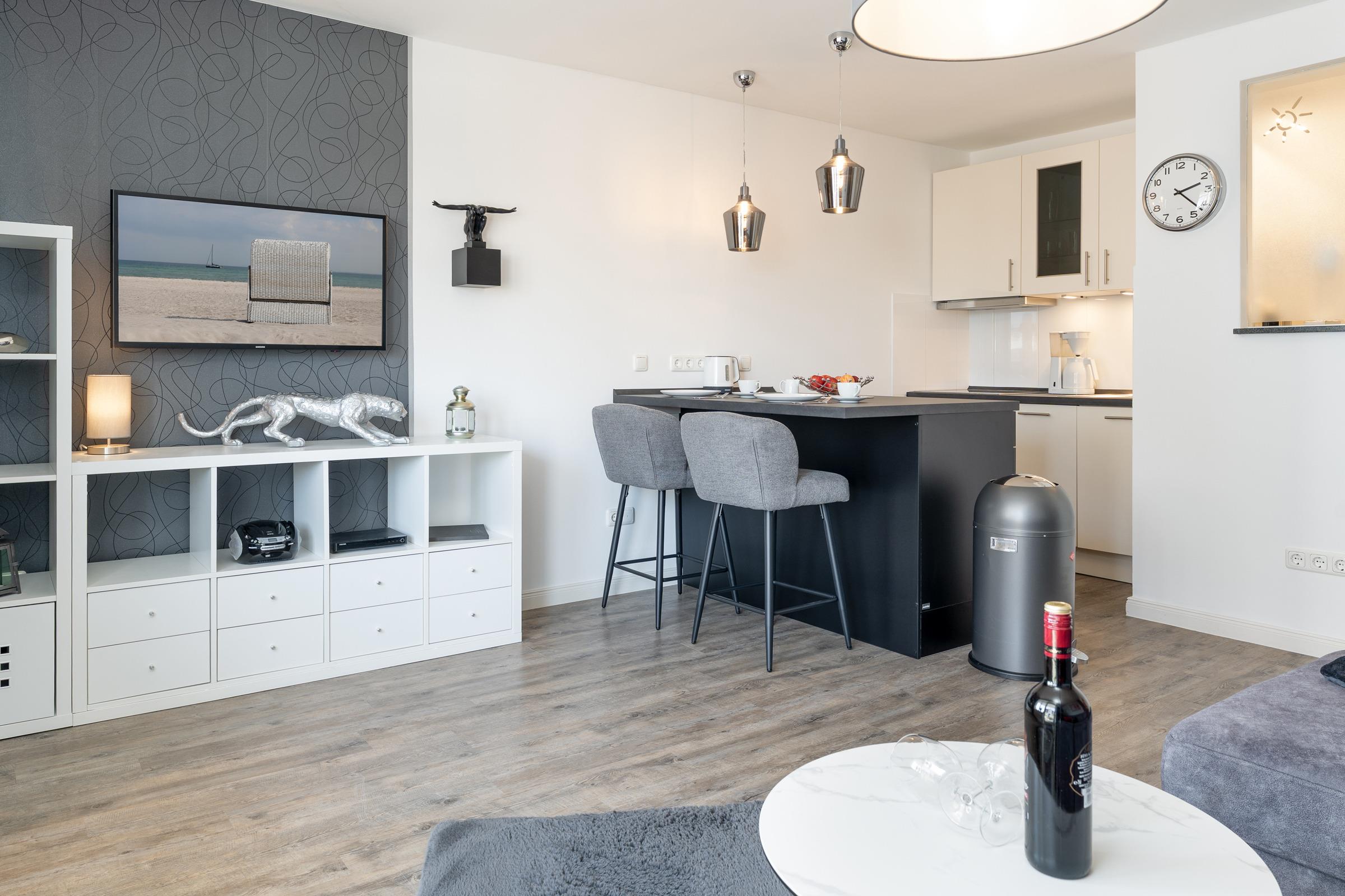 Diese moderne Ferienwohnung mit ca. 40 m² bietet mit separatem Schlafzimmer, Wohnraum mit offener Küche, Duschbad und sonnigem Balkon den idealen Rückzugsort für bis zu 2 Personen. Ruhig, stilvoll und komfortabel gelegen – und dennoch nah am lebendigen Zentrum von Grömitz.