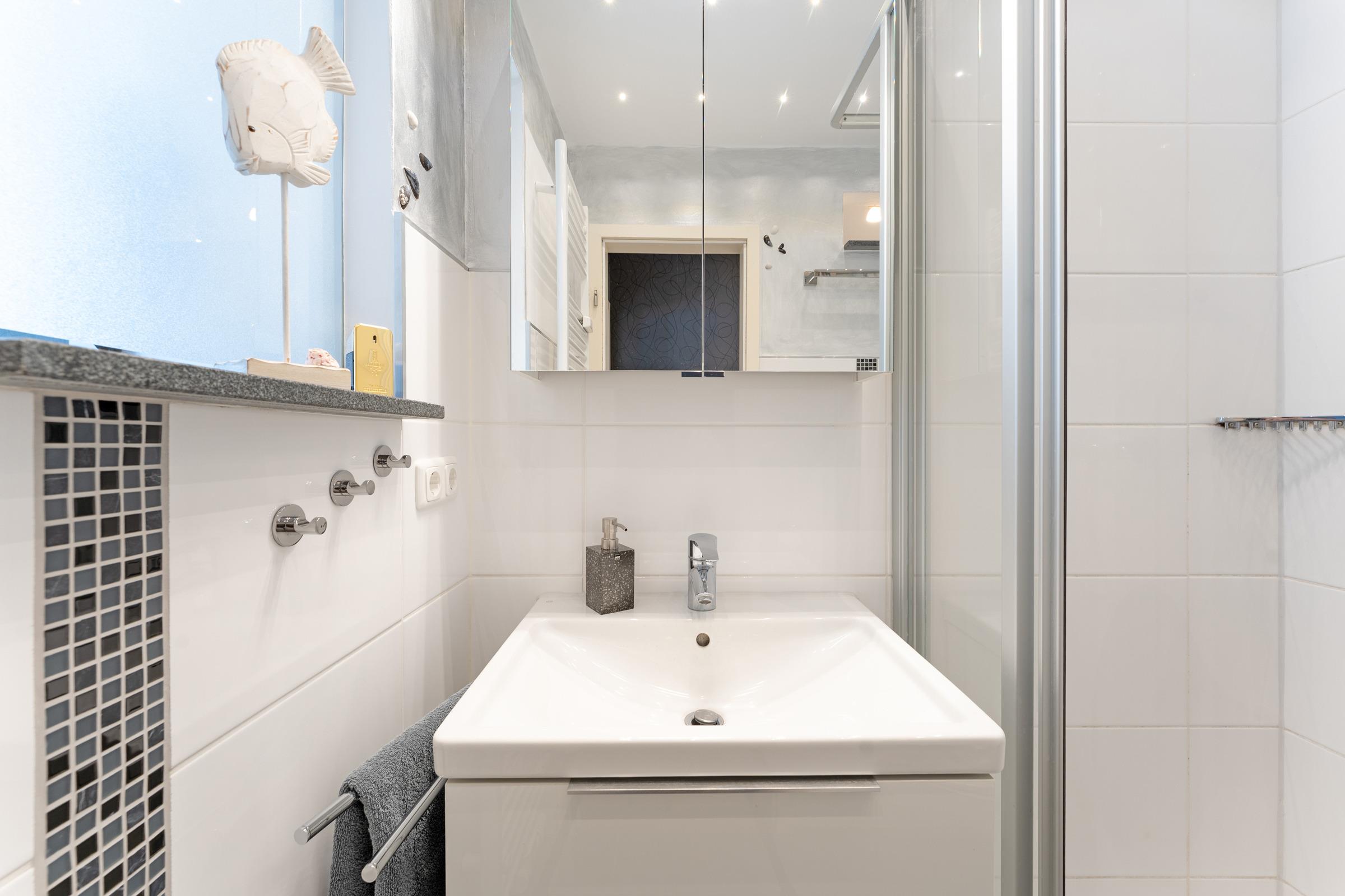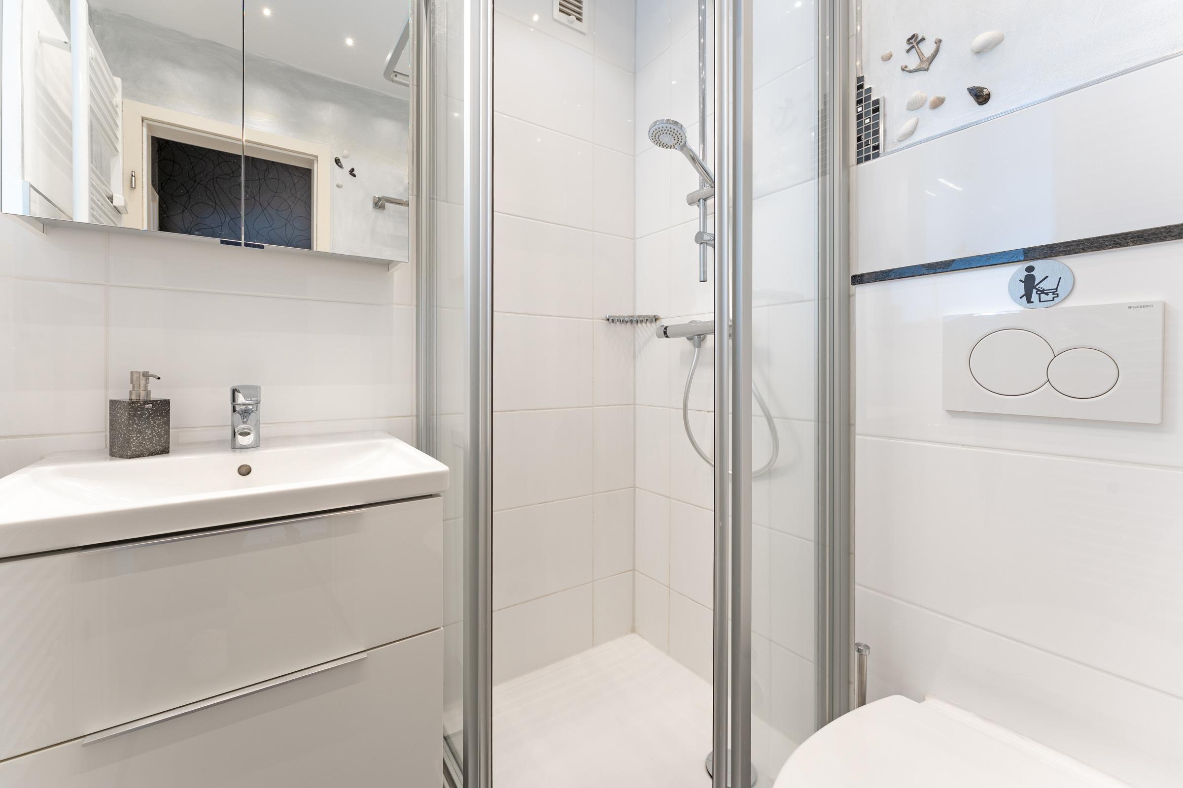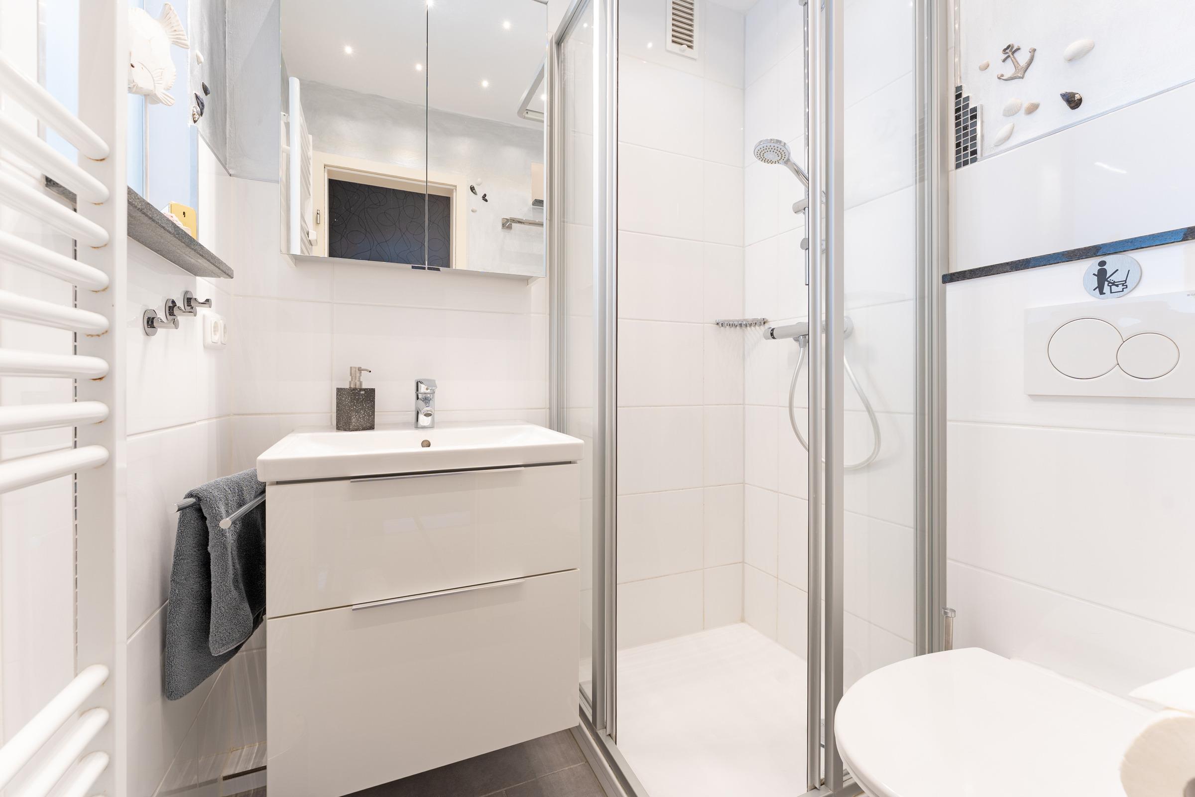Das separate Schlafzimmer verfügt über ein komfortables Doppelbett. Das moderne Bad ist mit Dusche, WC, Föhn und beheizbarem Handtuchhalter ausgestattet. Außenjalousien sorgen für angenehme Verdunklung.