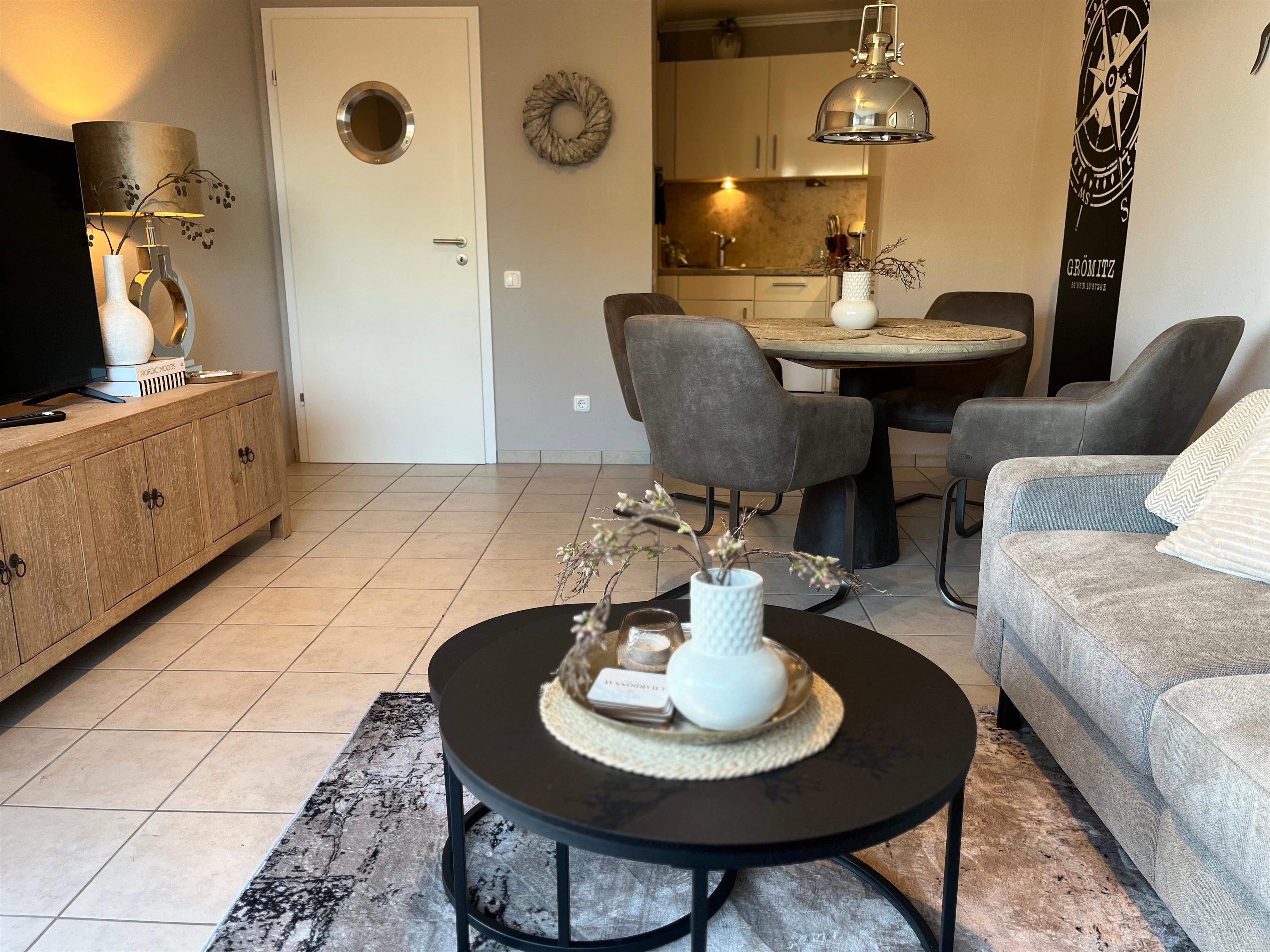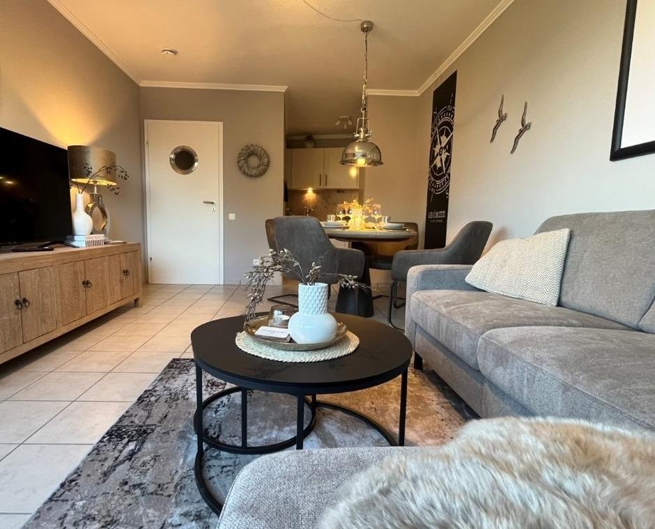 Auf gemütlichen 46 qm erwartet Sie in erster Reihe ein modernes Zuhause, 2025 frisch saniert und hochwertig möbliert. Das perfekt aufgeteilte Apartment bietet Platz für drei Personen, bequem über den Fahrstuhl zu erreichen. Es befinden sich nur sechs Stufen vor dem Eingangsbereich des Hauses.
