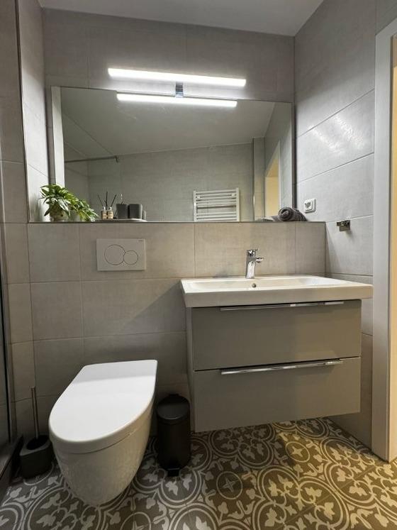 Genießen Sie nicht zuletzt das frisch sanierte Bad mit Walk-in Regendusche und einem großen Spiegel.