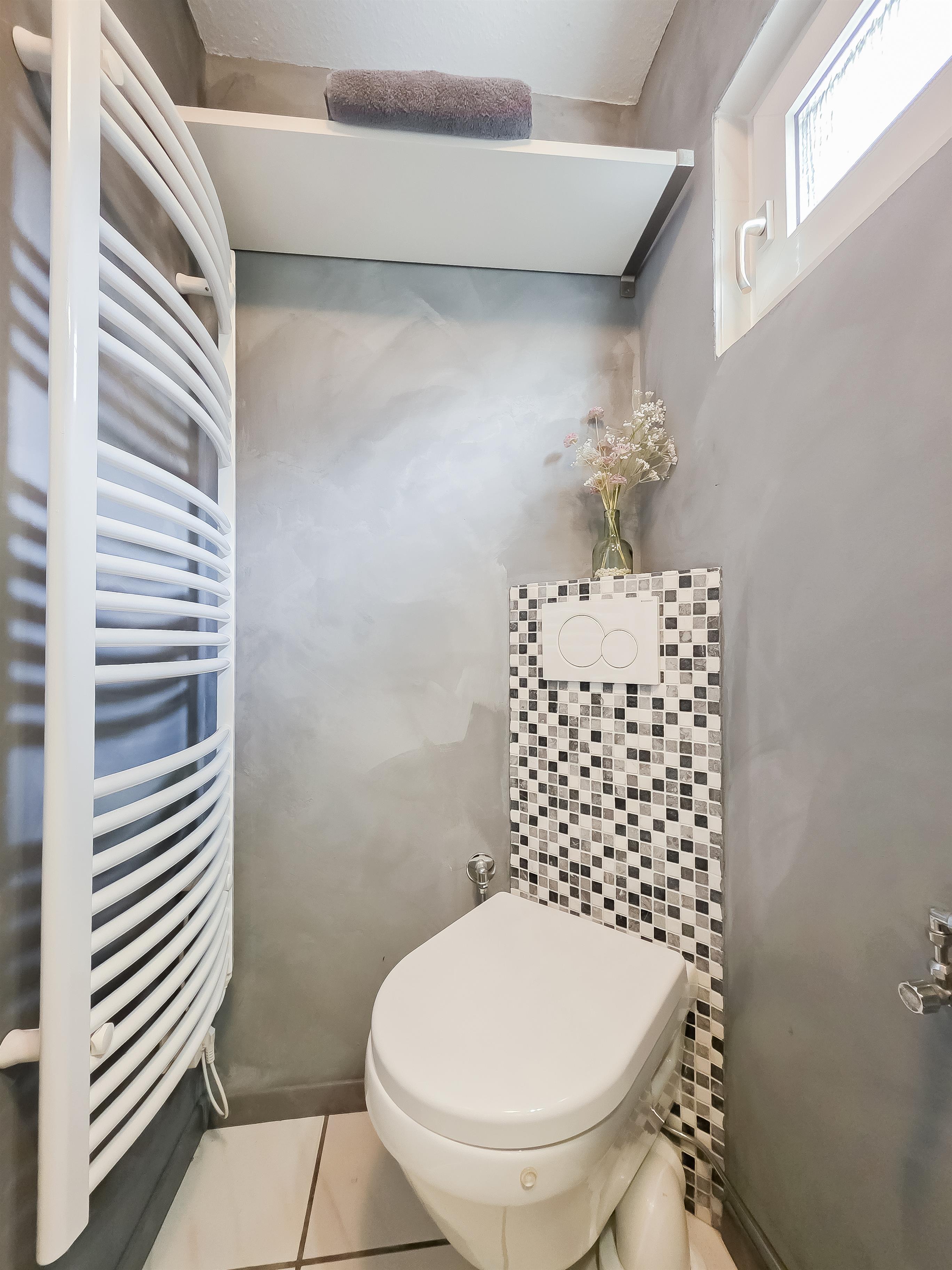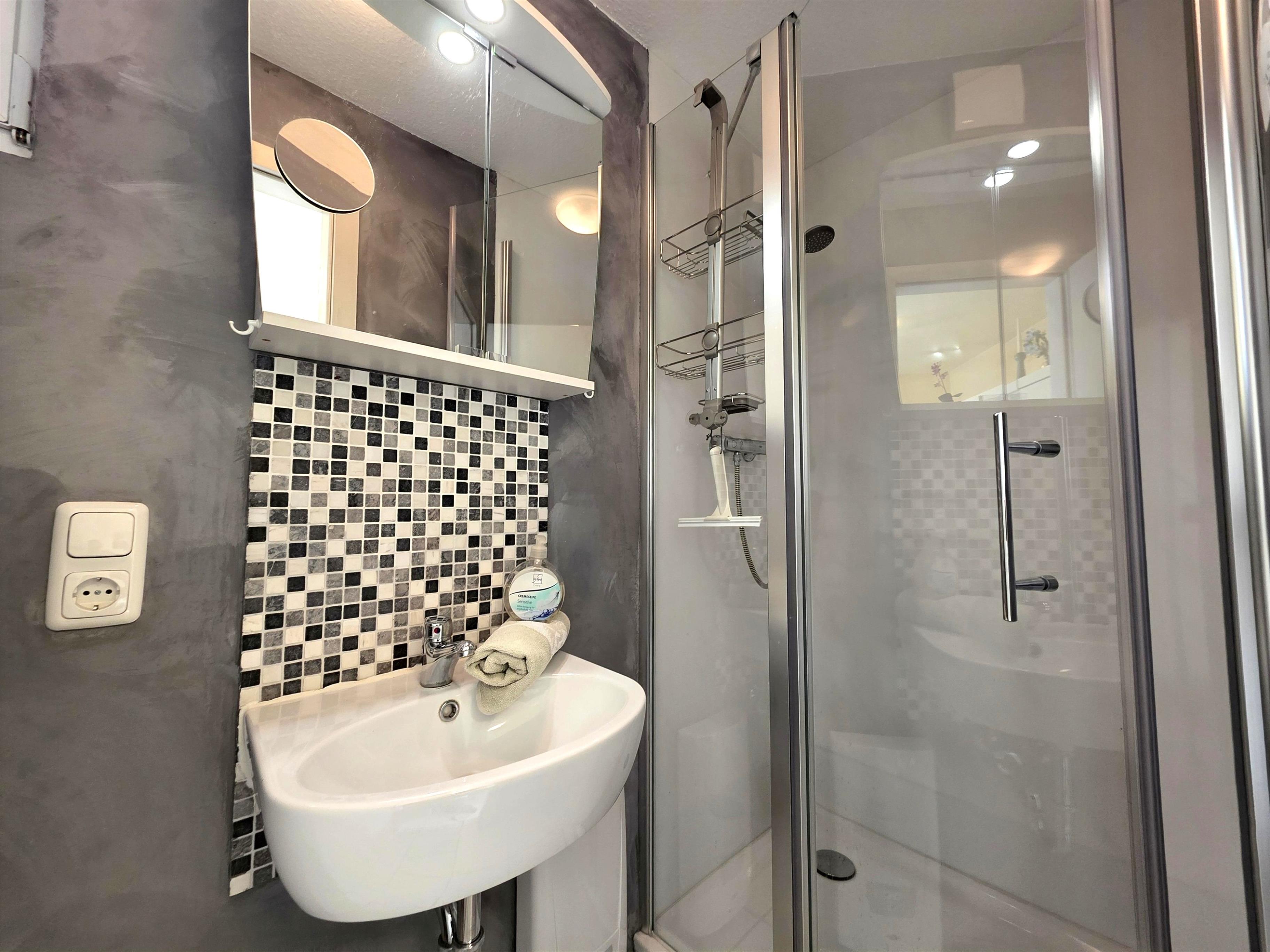 Modernes, helles Ambiente mit freundlichen Farbtönen und umfassender Ausstattung.