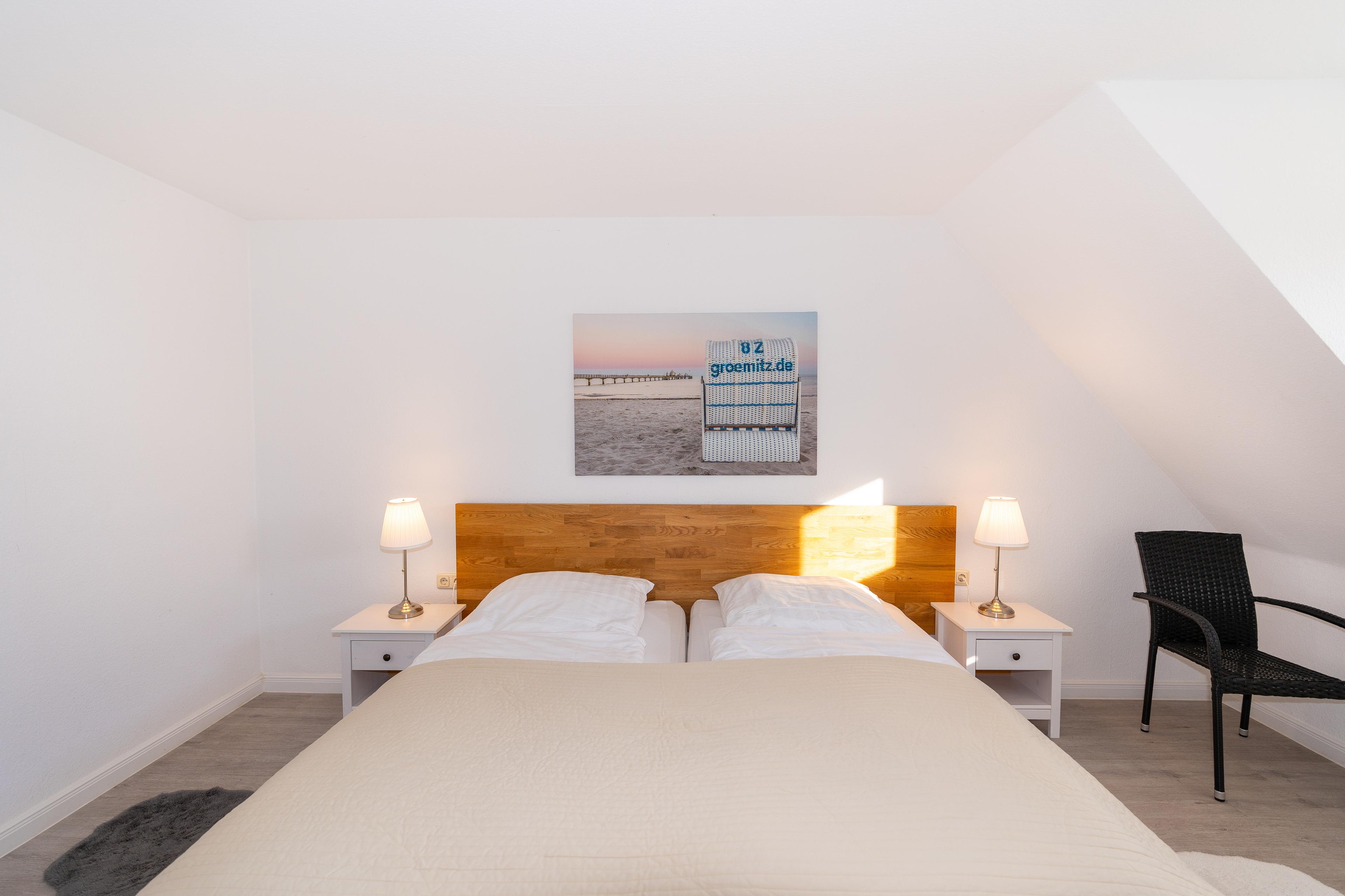 Schlafzimmer 1: 1 Doppelbett (2x 90x200 cm)