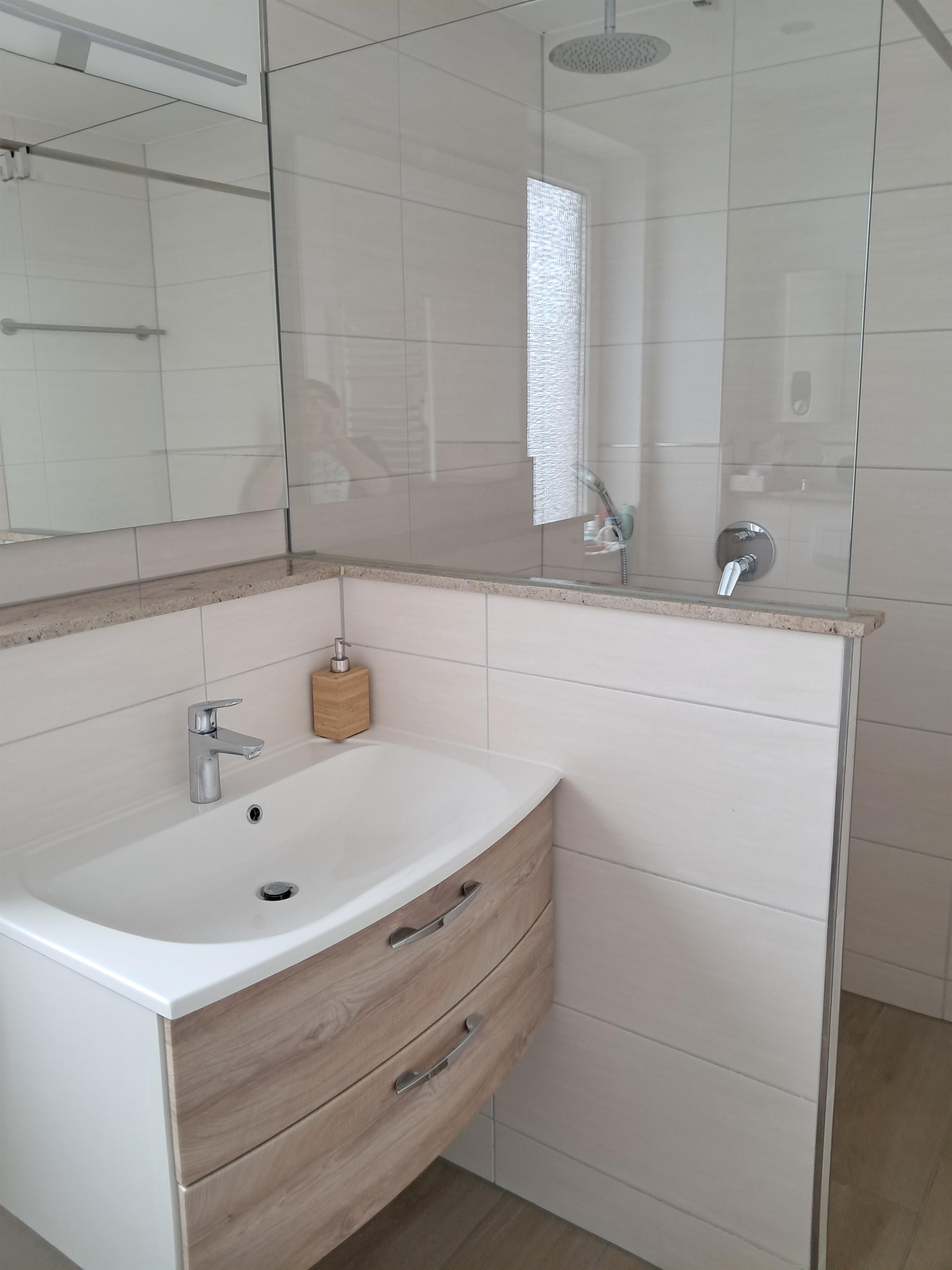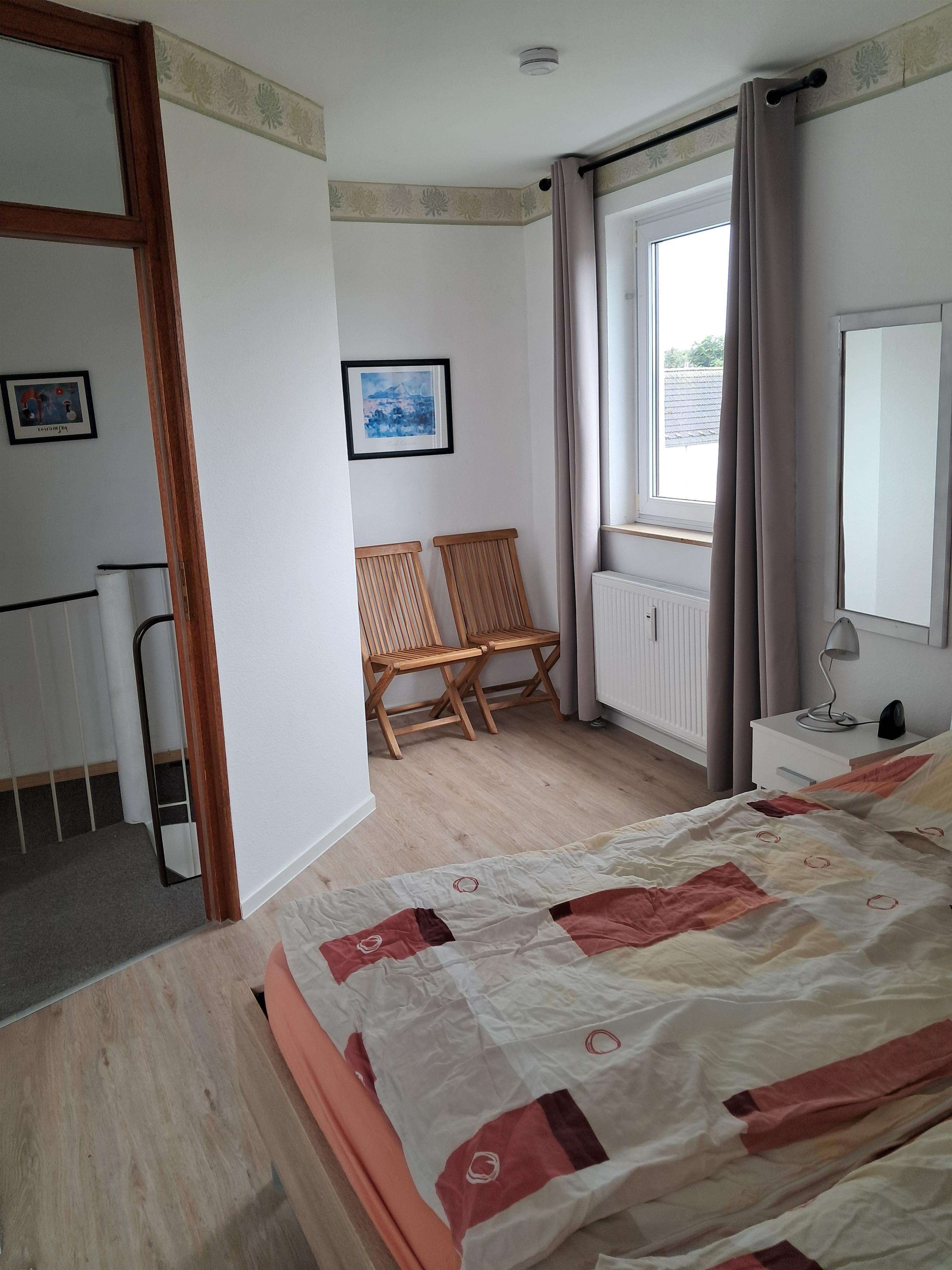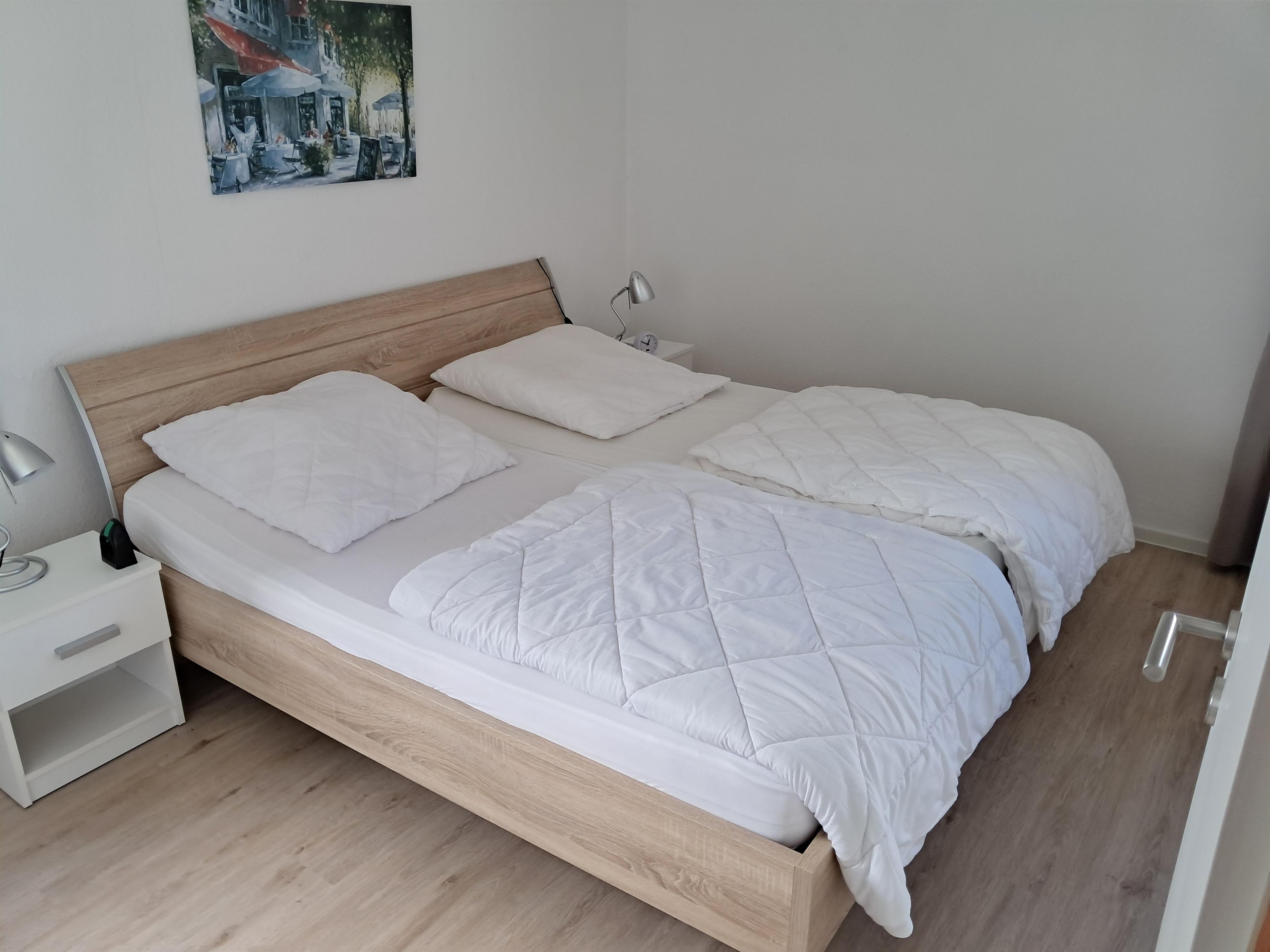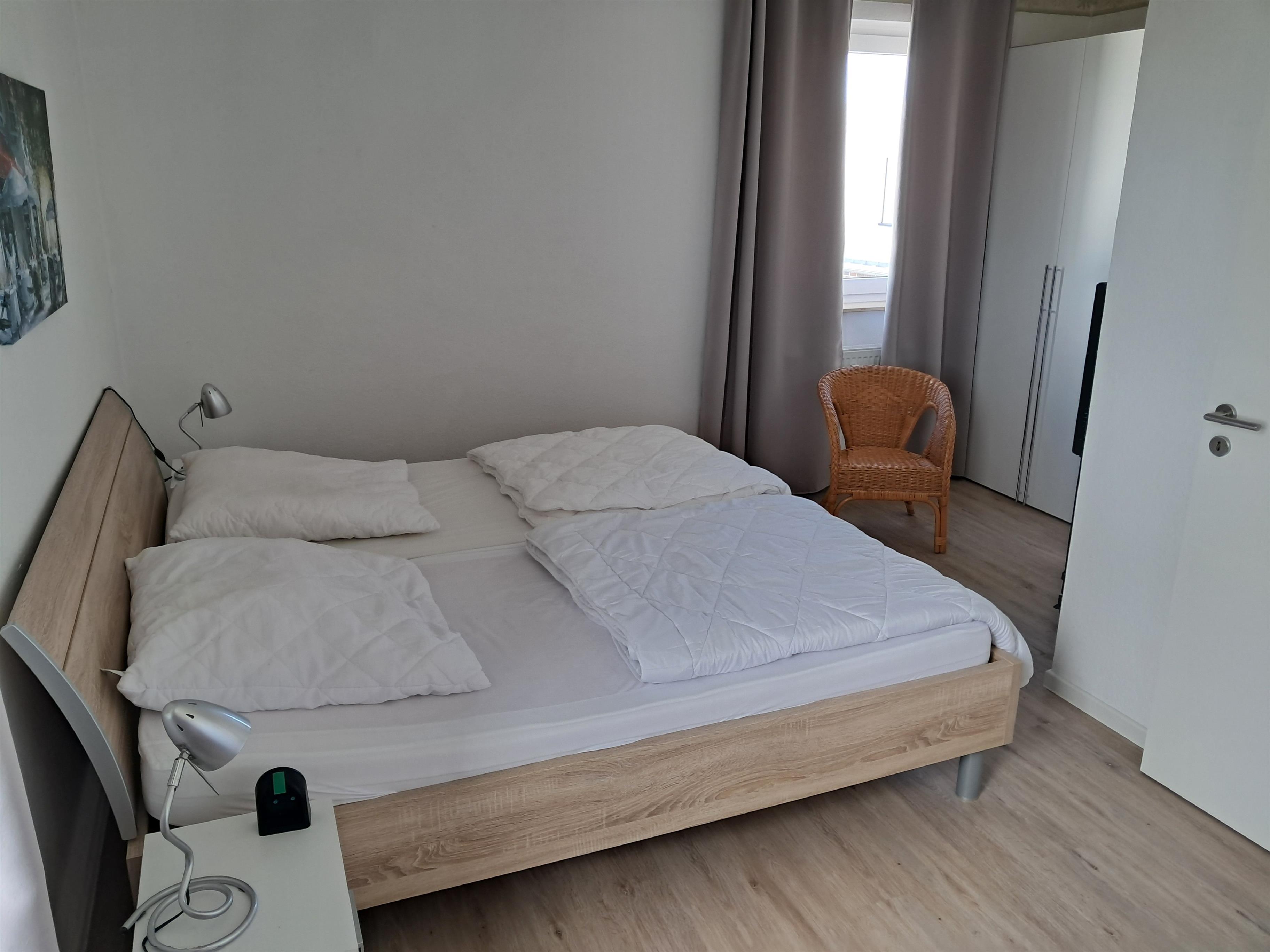 Die Ferienwohnung verfügt über ein modernes, helles Wohnzimmer mit einer gemütlichen Sitzecke inklusive Ausziehcouch sowie einem Flachbild-TV, CD-Player und Radio. Die voll ausgestattete Küche bietet alles, was Sie benötigen – unter anderem Geschirrspüler, Backofen, Mikrowelle, Eierkocher, Kaffeemaschine, Wasserkocher und eine Cafissimo-Maschine. Im Schlafzimmer erwartet Sie ein komfortables Doppelbett (2 x 1,00 m x 2,00 m), ein großzügiger Kleiderschrank sowie ein weiterer Flachbild-TV. Das moderne Badezimmer ist mit einer Regendusche ausgestattet, zusätzlich steht Ihnen ein modernes Gäste-WC im Erdgeschoss zur Verfügung. Ein 20 qm großer Balkon mit Sitz- und Liegemöglichkeiten lädt zum Entspannen ein. Kostenloses WLAN sowie ein Parkplatz direkt am Haus runden die Ausstattung ab.