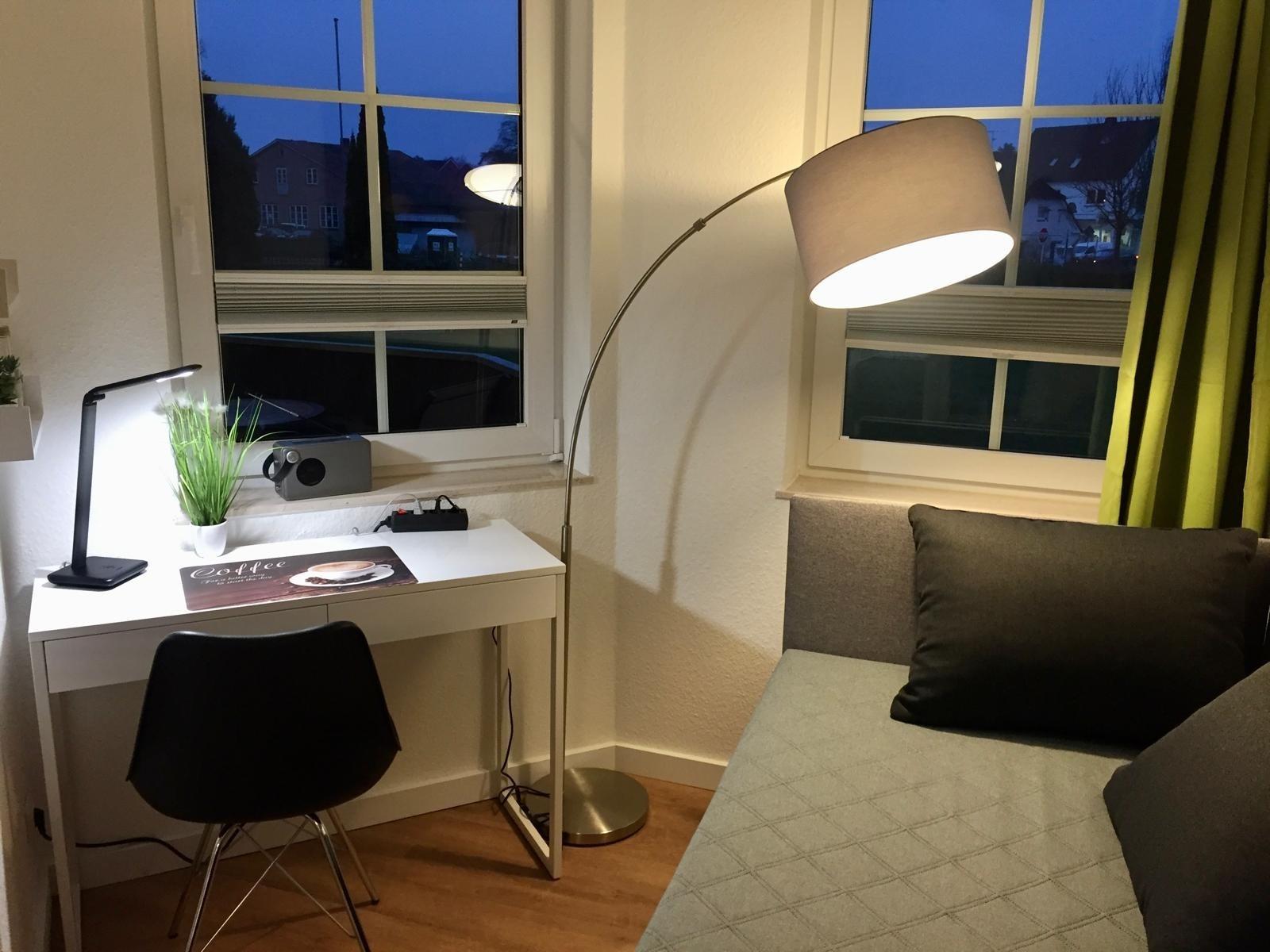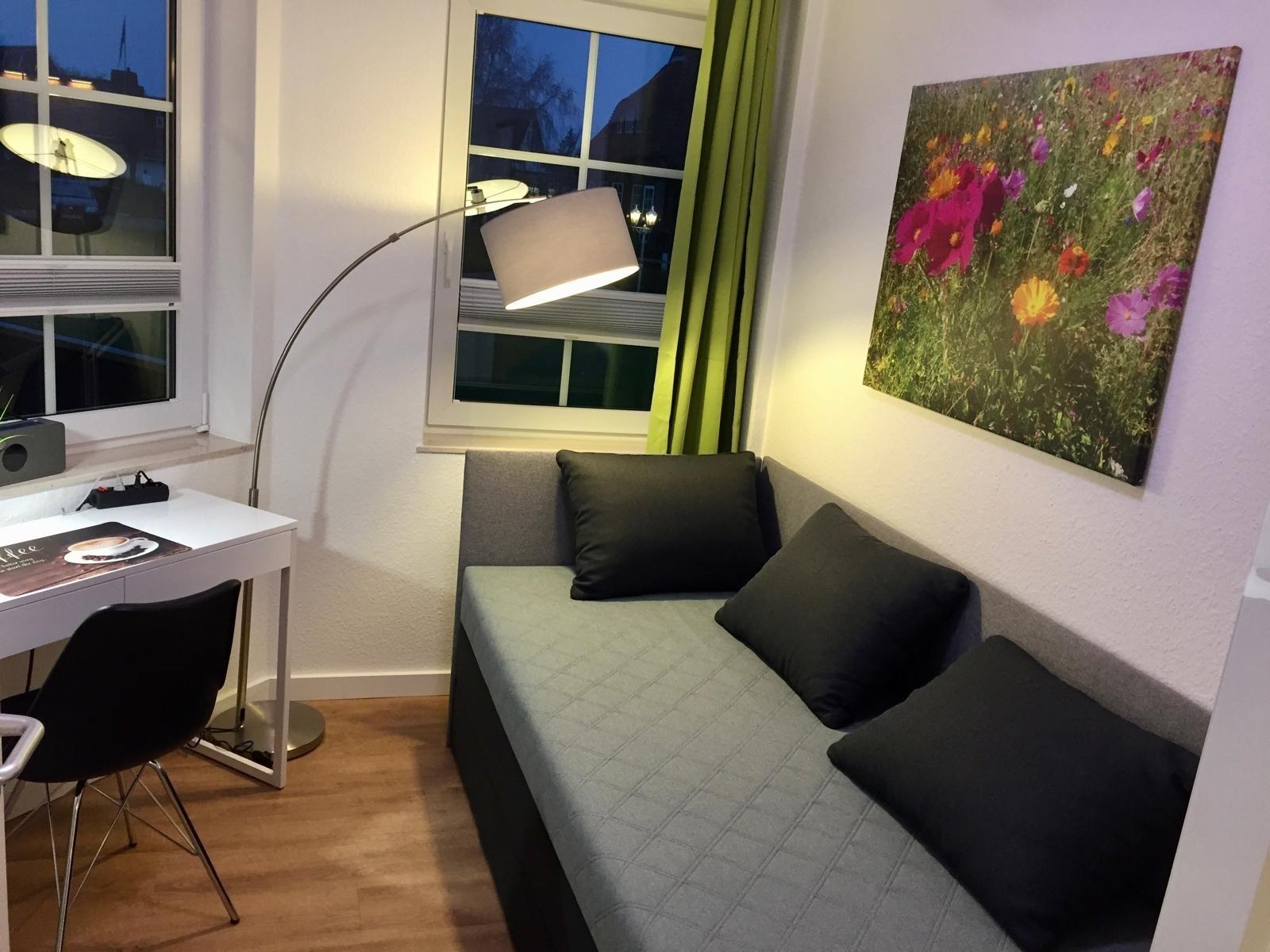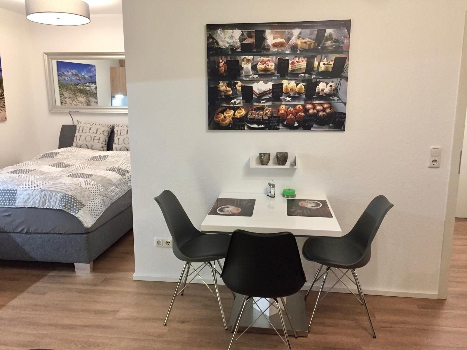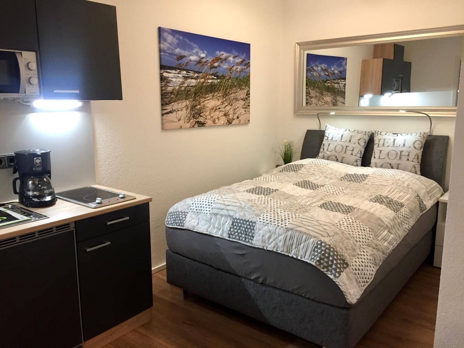 Die liebevoll eingerichtete Ferienwohnung ist eine kleine Wohlfühloase mit SüdOst Balkon und Gartenblick. Das Wohn-/Schlafzimmer ist mit einer kleinen Küche und einem Essplatz ausgestattet, sowie einem hochwertigem Boxspringbett für 2 Personen. Ein Sofa und Fernseher mit Kabelanschluss stehen Ihnen dort außerdem zur Verfügung.