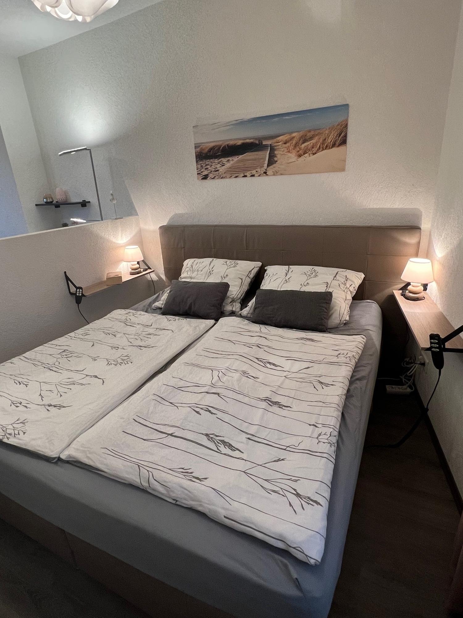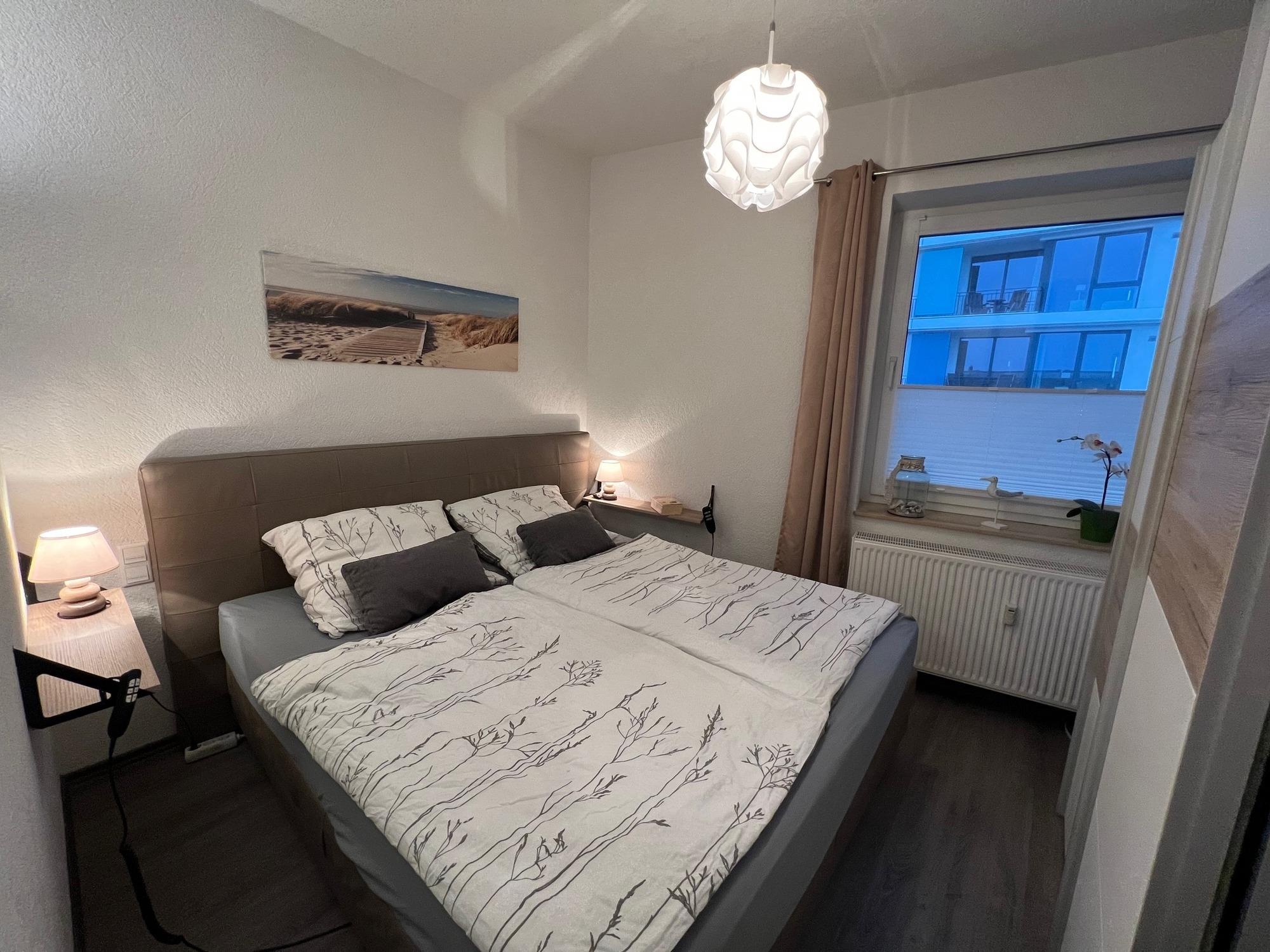 Ein weiteres Schlafzimmer bietet mit zwei Einzelbetten (90x200), einer Kommode und einem Smart-TV einen schönen Rückzugsort für Kinder. Auch im Wohnbereich steht ein Fernseher zur Verfügung.