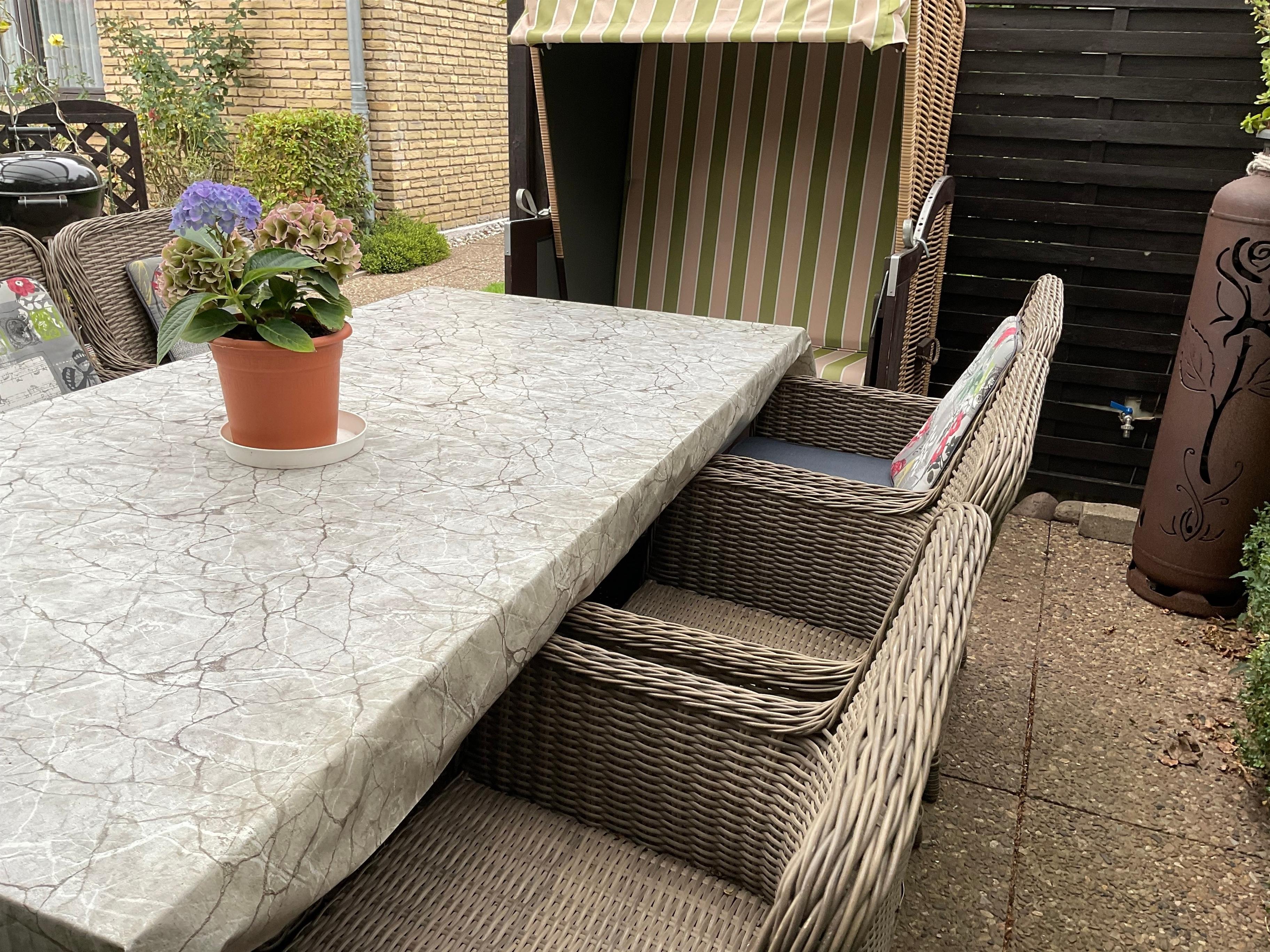 Neben einer Grillecke im Garten, die auch mit einem Strandkorb ausgestattet ist, finden Sie in der Wohnung auch einen Wäscheständer sowie Gesellschaftsspiele und Bücher zur Unterhaltung.