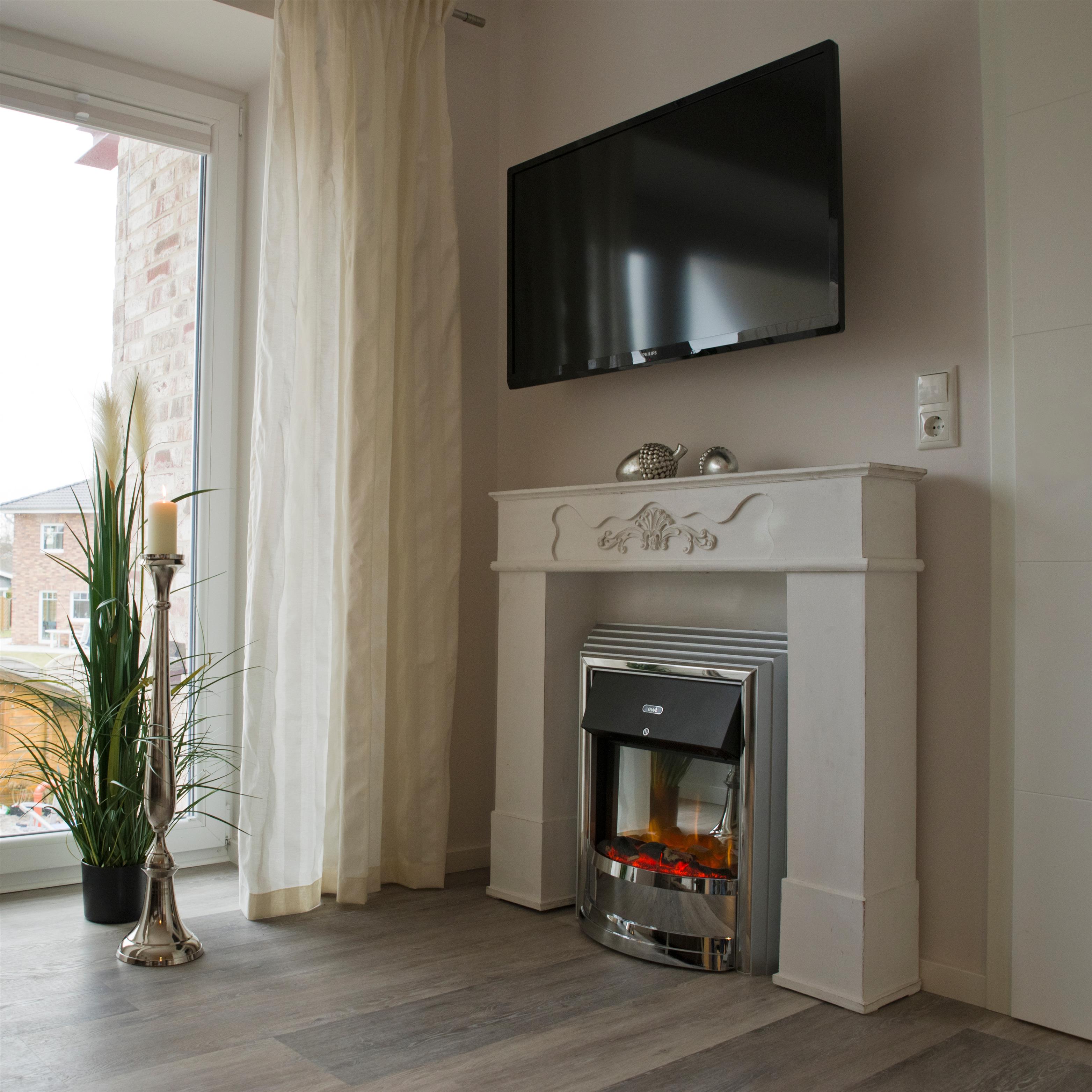 Der helle und komfortable Wohnbereich ist mit einer Eck-Kuschelcouch, Couchtisch, Leselampe, Flat-TV, DVD-Player, Stereoanlage mit Bluetooth zum Abspielen der eigenen Musik vom Smartphone oder Tablet sowie mit kostenlosem WLAN ausgestattet. An kühleren Abenden bringt ein Kamin entspannte Wohlfühlatmosphäre. Balkontür mit Mückenschutztür.