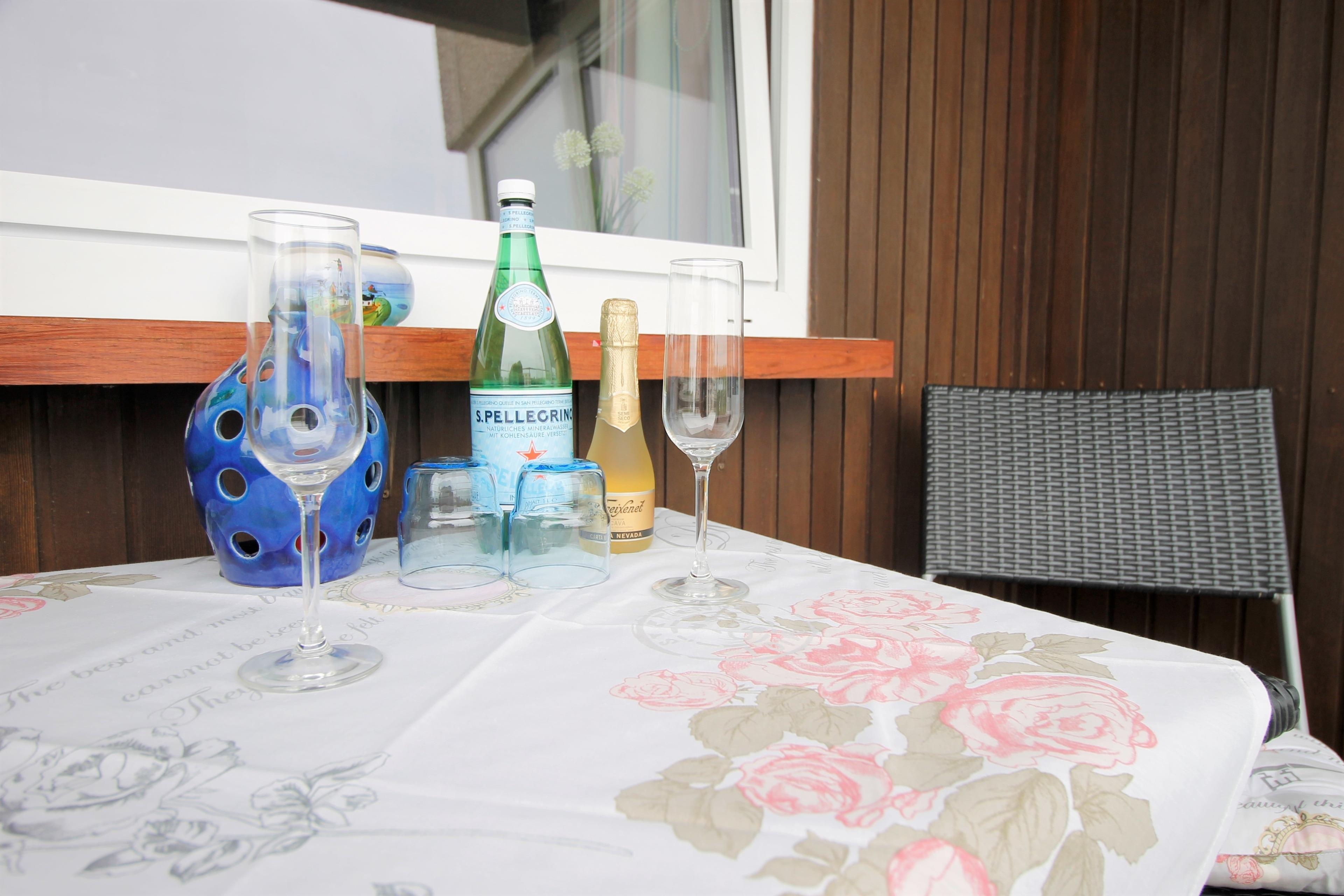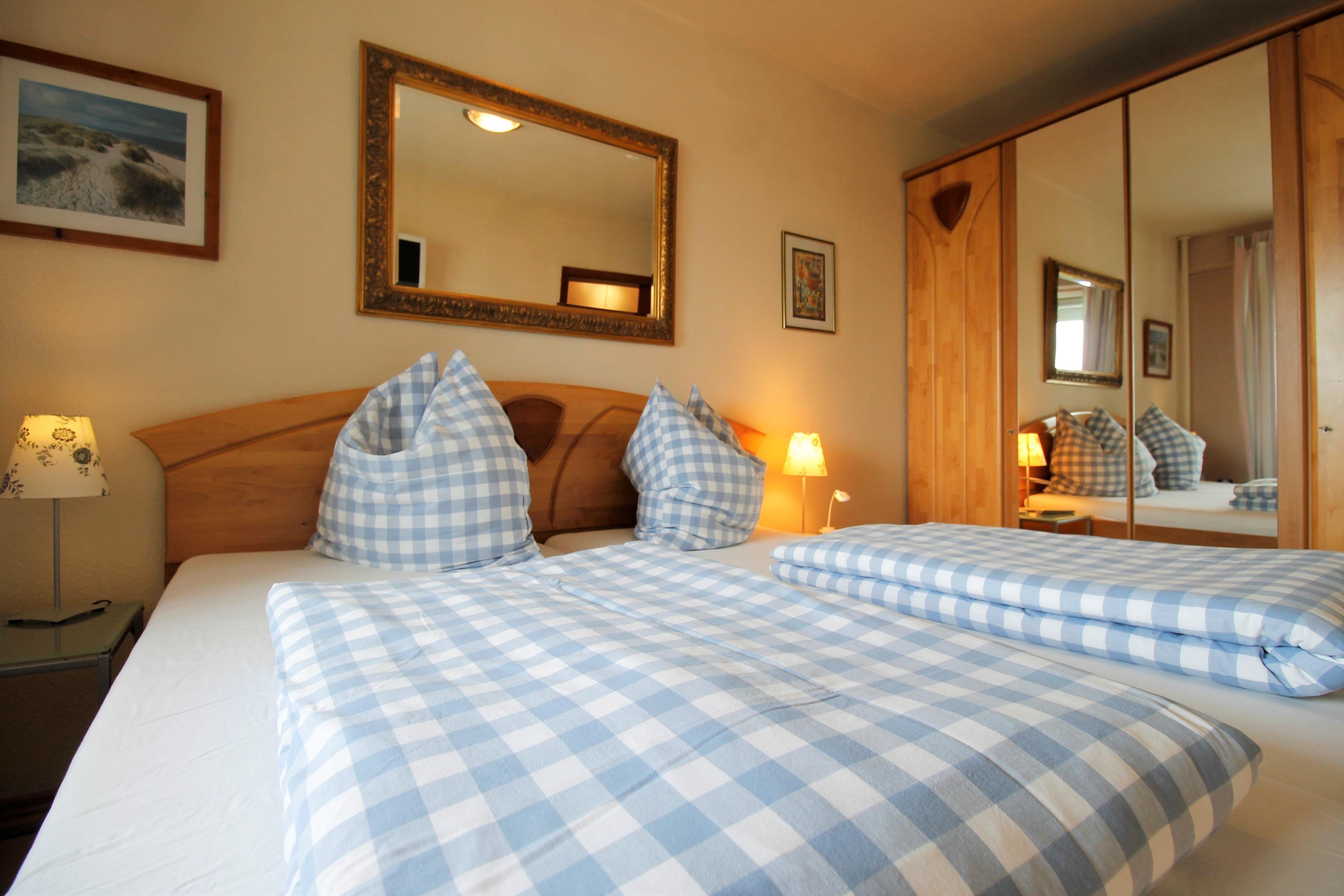 Die 2-Zimmer-Ferienwohnung ist ca. 49 m², im 5. Stock mit Balkon in Südostlage. Die Wohnung besteht aus einem Wohnzimmer mit Meerblick und mit Essbereich (ein großer TV, sowie eine Stereoanlage, große Anzahl von Büchern und div. Spiele sind vorhanden), einem Schlafzimmer mit Doppelbett (180 x 200 cm - getrennte Matratzen) und großem Kleiderschrank, sowie einem Bad mit Badewanne/Duschmöglichkeit und WC. Die Couch im Wohnzimmer (oder Zusatzbett) bietet Platz für eine weitere Person. Die Küche ist durch einen offenen Durchgang vom Wohnzimmer zugänglich. Sie verfügt über ein Ceranfeld (4 Kochstellen), Geschirrspüler, Mini-Backofen, Mikrowelle, Kühlschrank mit Gefrierfach, Toaster, Wasserkocher, Kaffeekapselmaschine, Kaffeemaschine, Eierkocher, Waffeleisen, hochwertiges Kochgeschirr und Mixer.