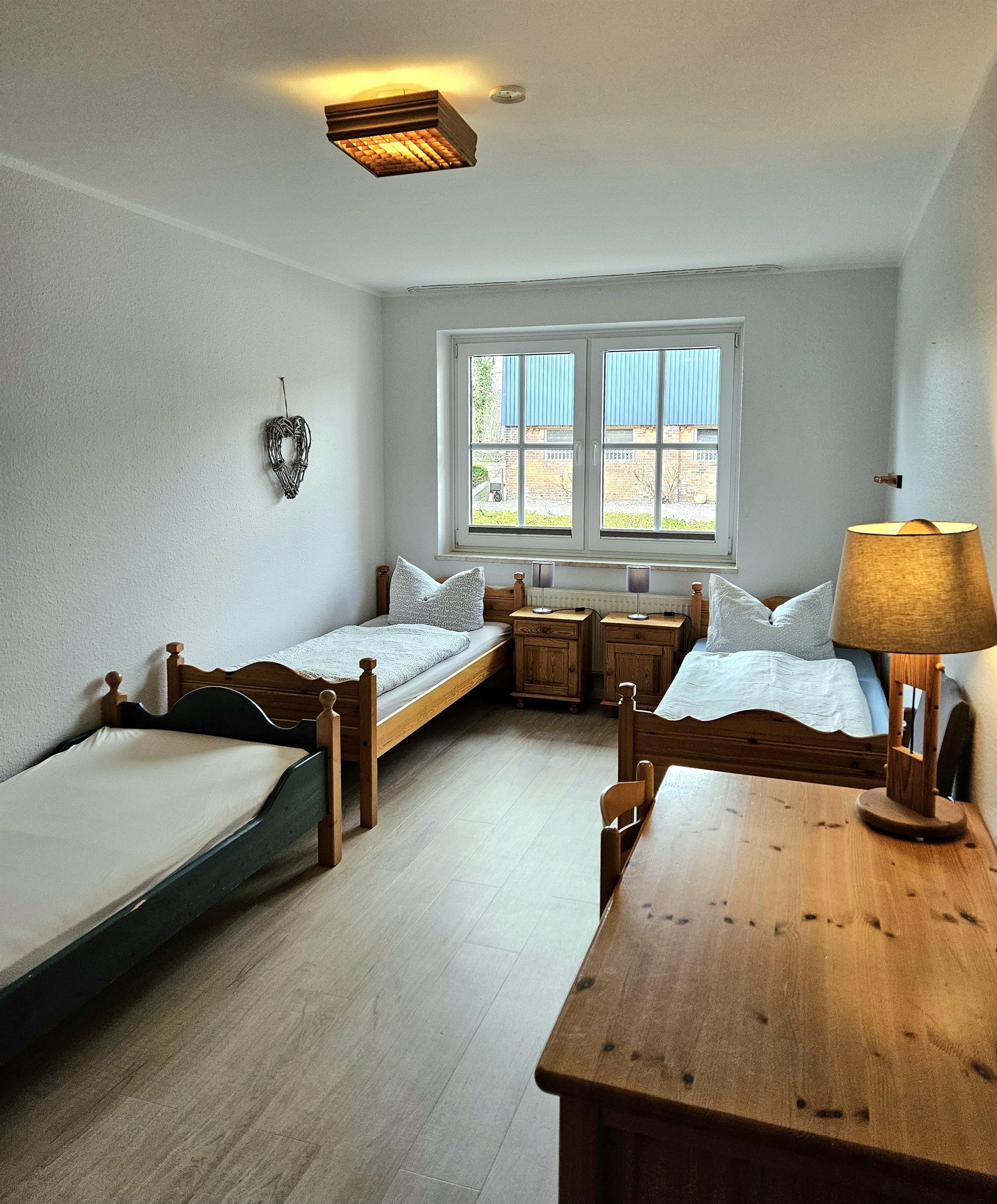 Die Wohnung "Nr. 3" auf dem "Grömitzer Pappelhof" liegt im Erdgeschoss und bietet Platz für bis zu 5 Personen. Die Wohnfläche der ca. 80 m² großen Ferienunterkunft verteilt sich auf ein Wohn- / Esszimmer, zwei separate Schlafzimmer, einen Flur, einen kleinen Abstellraum sowie auf eine separate Küche und auf ein Badezimmer. Das Wohn- / Esszimmer ist mit einer gemütlichen Sitzecke, Flachbild-TV sowie einem Esstisch versehen. Die separate Küche ist u.a. mit Backofen, 4-Plattenherd, Kaffeeemaschine, Mikrowelle und weiteren Küchengeräten versehen, auch hier befindet sich ein kleiner Essplatz für 2 Personen. Eins der beiden Schlafzimmer ist mit einem Doppelbett (getrennte Matratzen - Maße 0,90 x 2,00 m) und einem großen Kleiderschrank versehen. Das zweite Schlafzimmer verfügt über drei Einzelbetten (0,90 x 2,00 m), ein Kinder-/Babybett, einen Schreibtisch sowie einen Kleiderschrank. Das Badezimmer ist mit WC und Dusche versehen. Über den langgezogenen Flur gelangen Sie in alle Räume. Ein Abstellraum ist ebenfalls vorhanden. Vor dem Eingangsbereich der Wohnung befindet sich eine Terrasse sowie der große Garten.