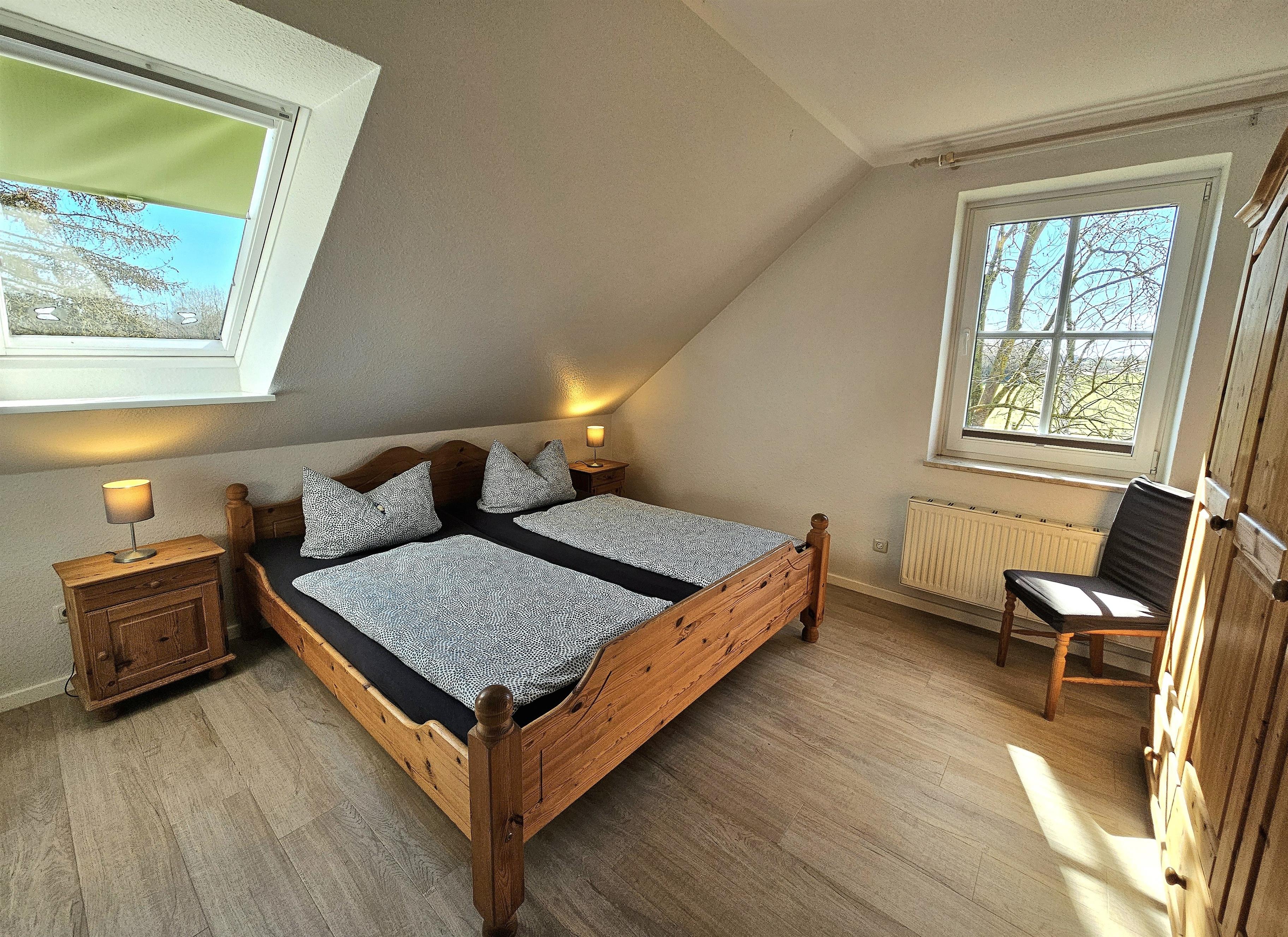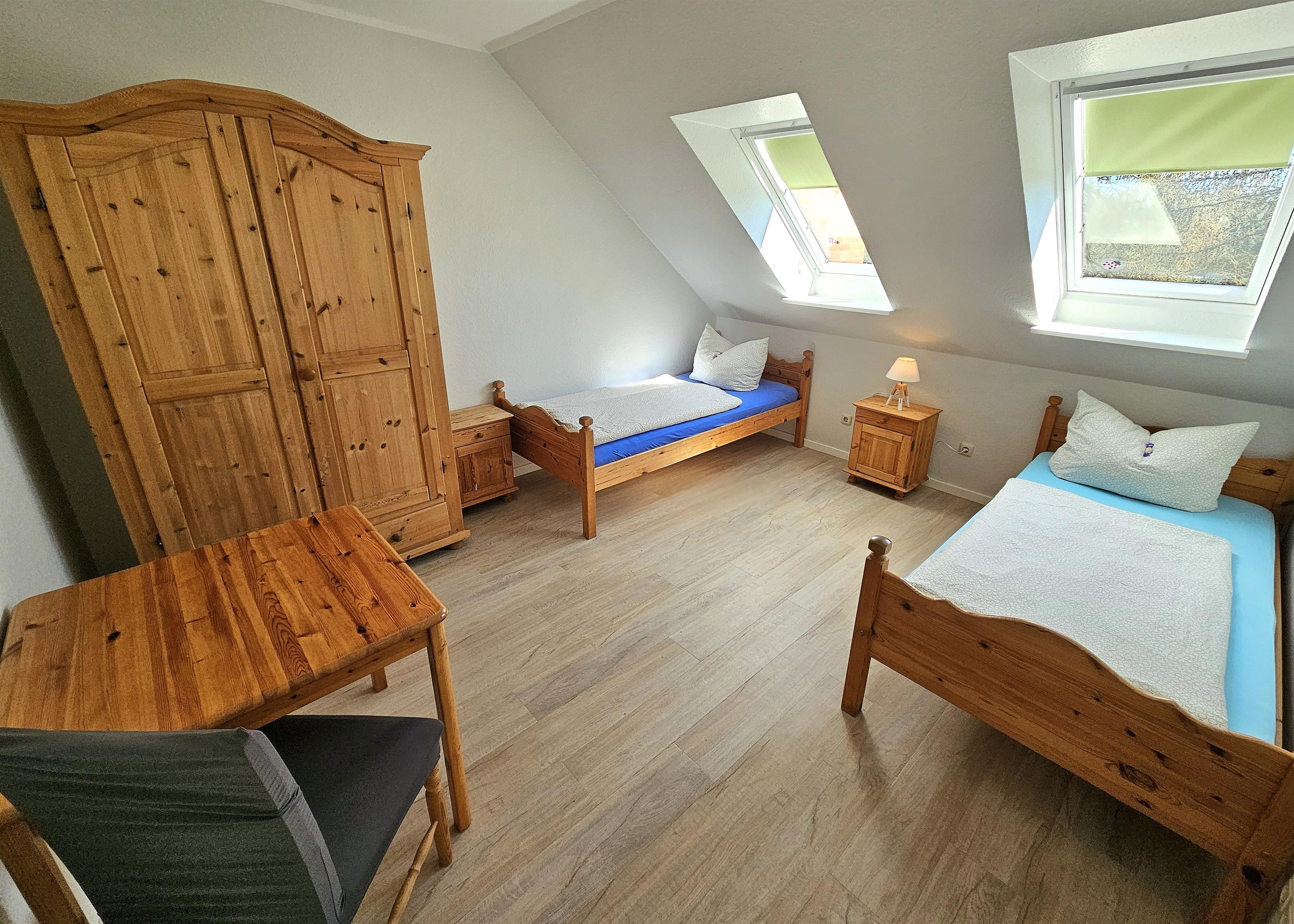 Die Wohnung "Nr. 7" auf dem "Grömitzer Pappelhof" liegt in der 1. Etage und bietet Platz für bis zu 5 Personen. Die Wohnfläche der ca. 80 m² großen Ferienunterkunft verteilt sich auf ein Wohn- / Esszimmer, zwei separate Schlafzimmer, einen Flur und auf ein Badezimmer. Das Wohn- / Esszimmer ist mit einer gemütlichen Sitzecke, Flachbild-TV, einem Esstisch und einer offenen Küchenzeile versehen. Von hier aus haben Sie Zugang zum möblierten kleinen Balkon. Die Küche ist u.a. mit 4-Plattenherd, Kaffeeemaschine und weiteren Küchengeräten versehen. Eins der beiden Schlafzimmer ist mit einem Doppelbett (getrennte Matratzen - Maße 0,90 x 2,00 m) und einem großen Kleiderschrank versehen. Das zweite Schlafzimmer verfügt über zwei Einzelbetten (0,90 x 2,00 m), eine Sitzgelegenheit sowie einen Kleiderschrank. Das Tageslicht-Badezimmer ist mit WC und Dusche versehen. Über den Flur gelangen Sie in alle Räume.