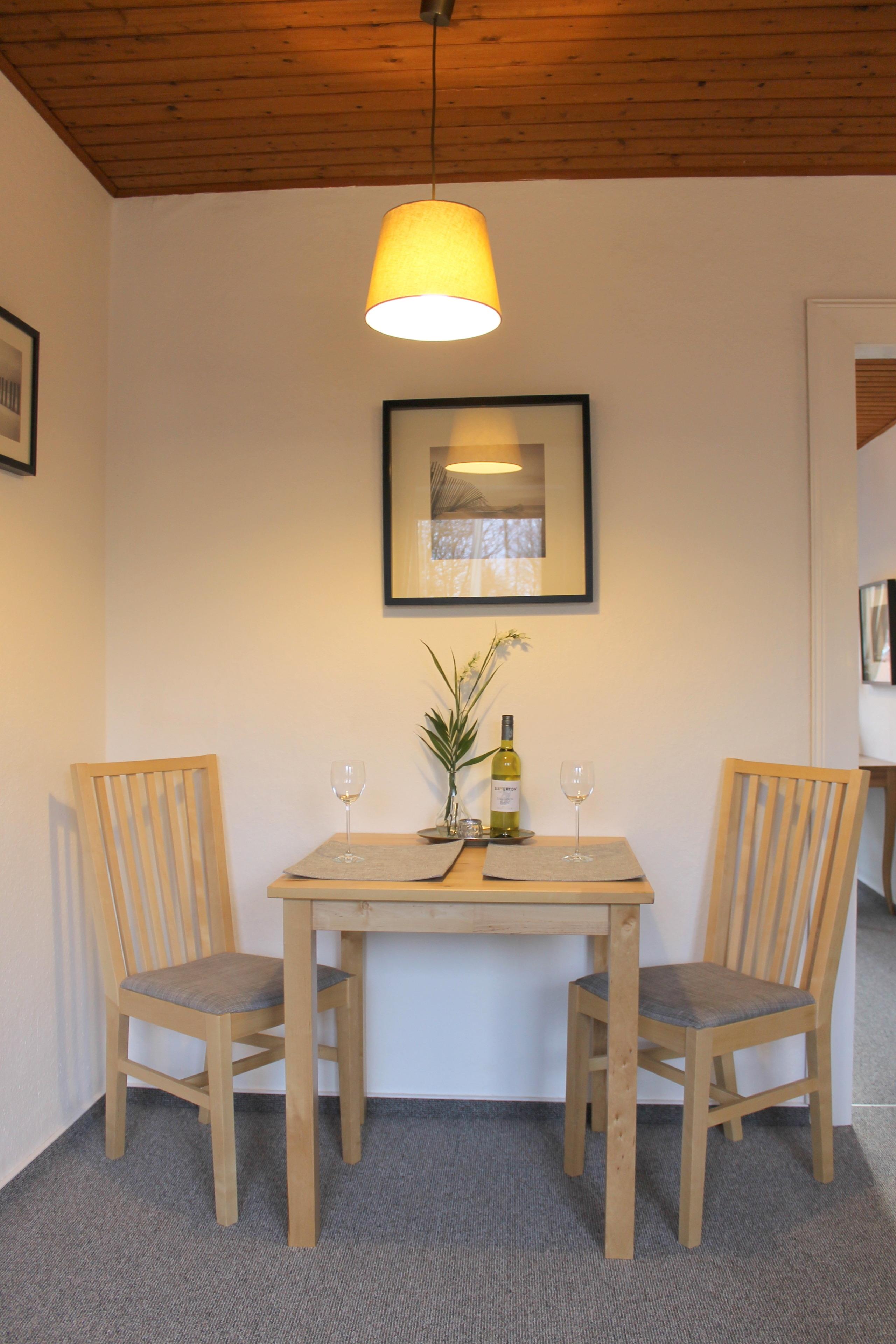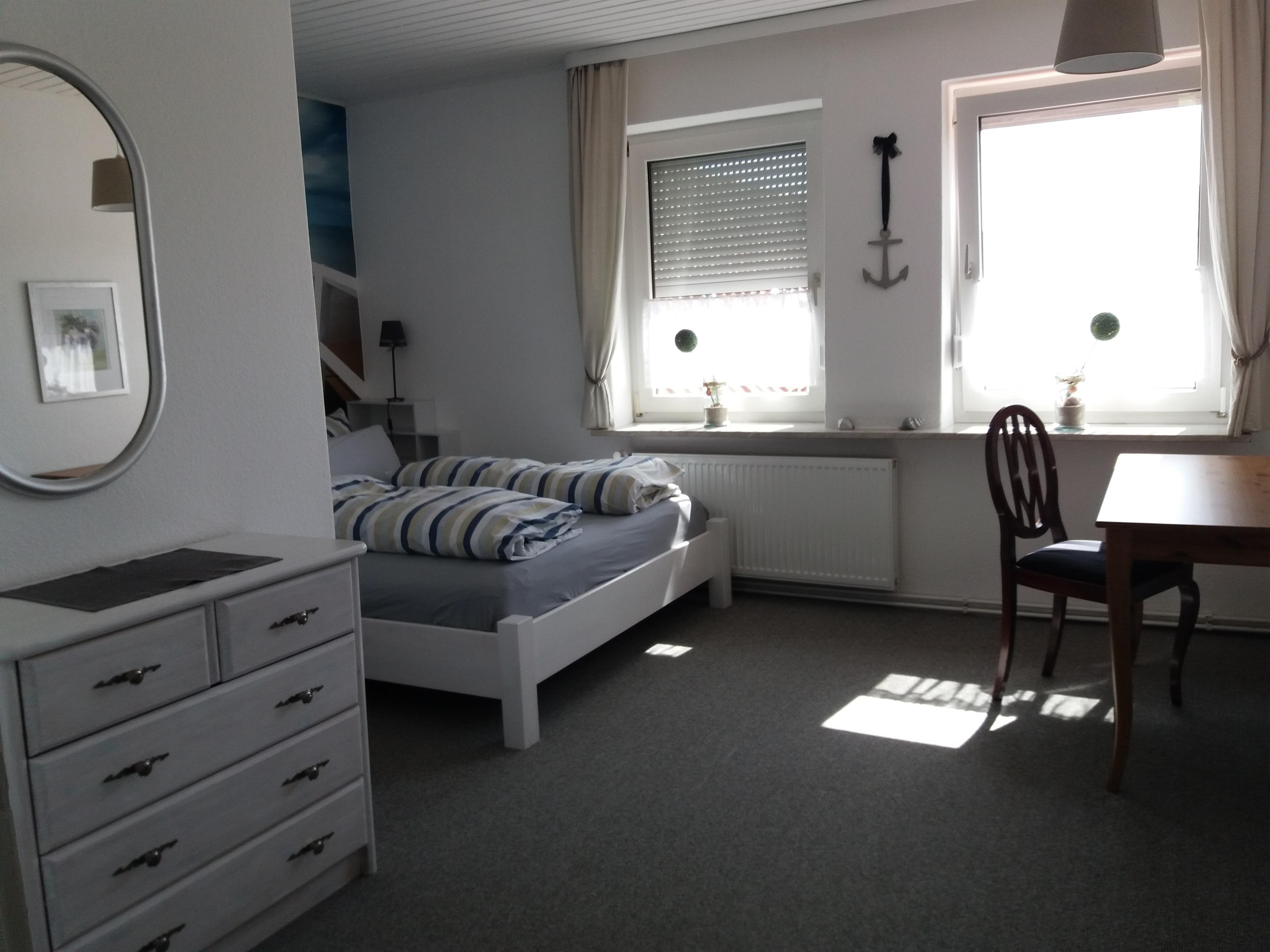 Die ca. 42 qm große Ferienwohnung befindet sich im 1. Obergeschoss des Hauses. Der zur Wohnung gehörende, eingezäunte Vorgarten mit Gartenhaus und überdachter Terrasse steht Ihnen zur alleinigen Nutzung zur Verfügung.
