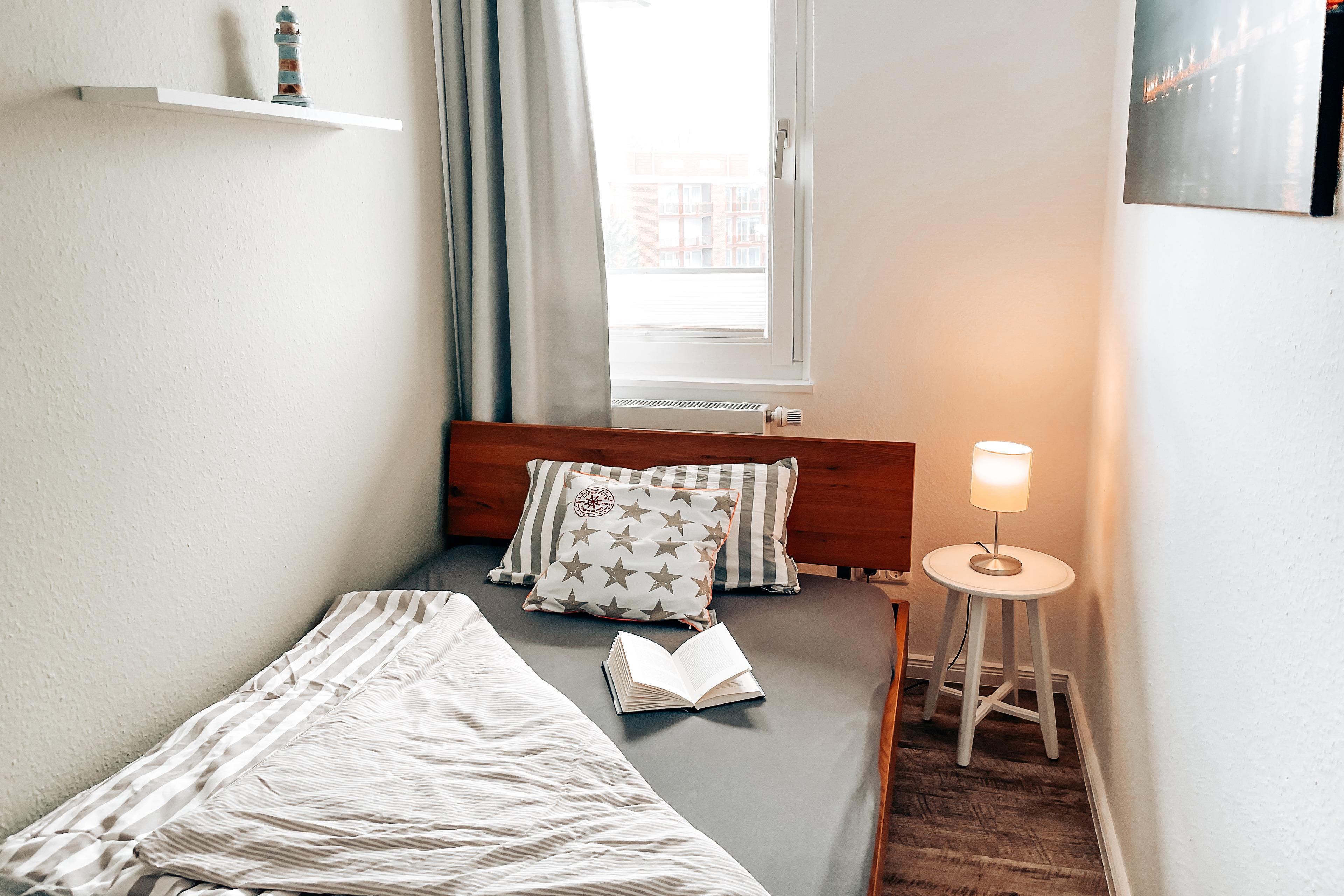 Die Wohnfläche der ca. 52 m² großen Ferienunterkunft verteilt sich auf ein Wohn- / Esszimmer mit integrierter Küche, zwei separate Schlafzimmer sowie auf einen kleinen Flur und ein Badezimmer und bietet Platz für max. 3 Personen. Der Wohnbereich ist mit einer gemütlichen Couch sowie einem Essplatz versehen. Vom Wohnzimmer gelangen Sie auf den möblierten Balkon, Sie genießen einen herrlichen Blick auf die Grömitzer Seebrücke und können hier morgens in der Sonne frühstücken. Die Küche ist u.a. mit: Kühlschrank, Spülmaschine, 4-Platten-Herd, Backofen, Kaffeemaschine und weiteren Küchengeräten ausgestattet. Eines der beiden separaten Schlafzimmer ist mit einem Doppelbett (getrennte Matratzen, Maße: 1,80 x 2,00 m) versehen. Im Flur der Wohnung steht für Sie ein Kleiderschrank bereit. Das zweite Schlafzimmer verfügt über ein Bett (1,20 m x 2 m). Das Badezimmer verfügt über eine Walk-in-Dusche, WC.