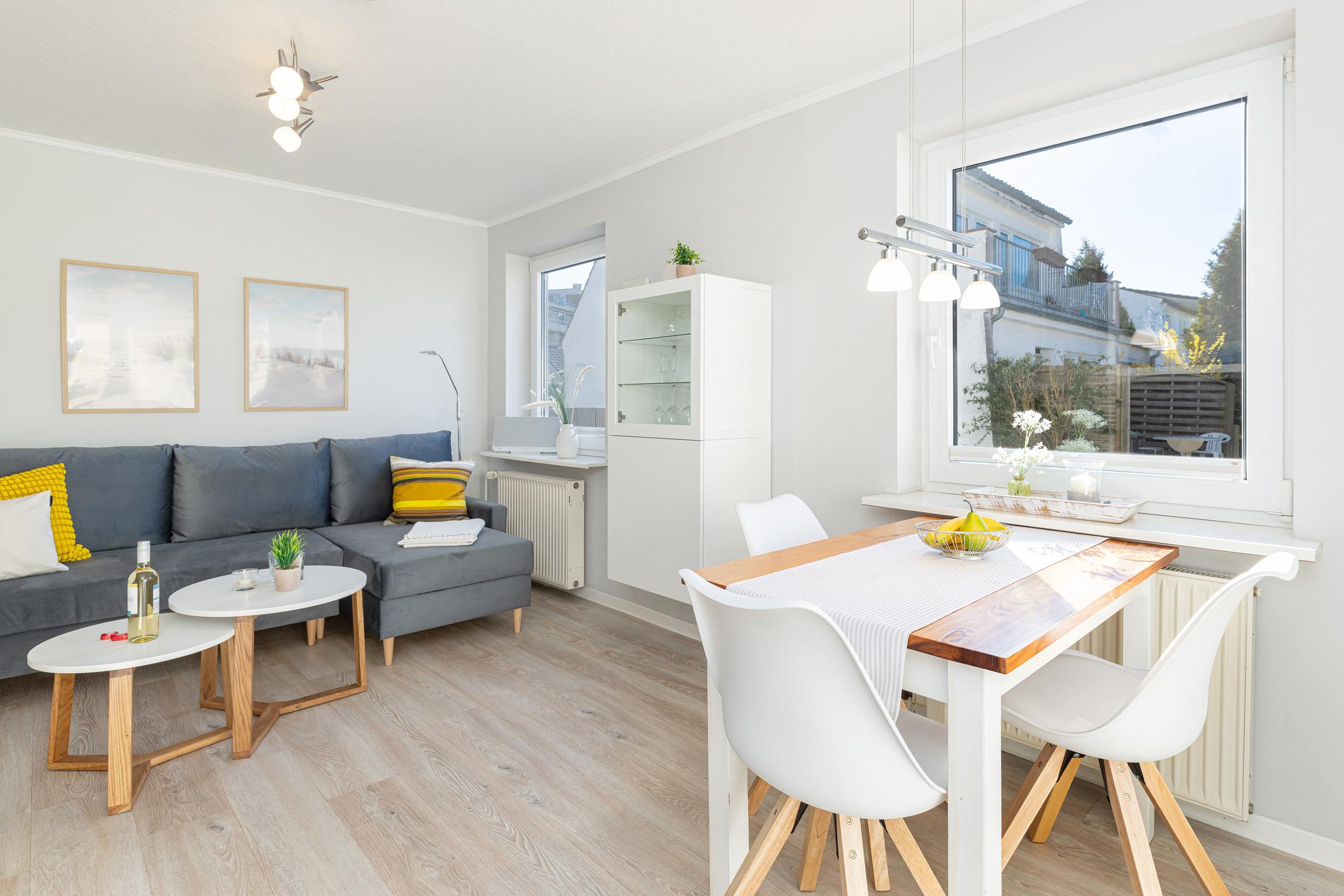 Komfortables Apartment in Grömitz, 100 m vom Strand entfernt, mit Terrasse und moderner Ausstattung für 2-3 Personen.