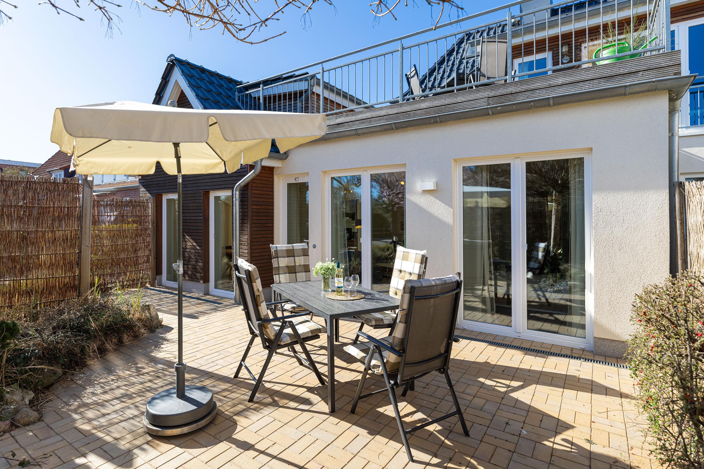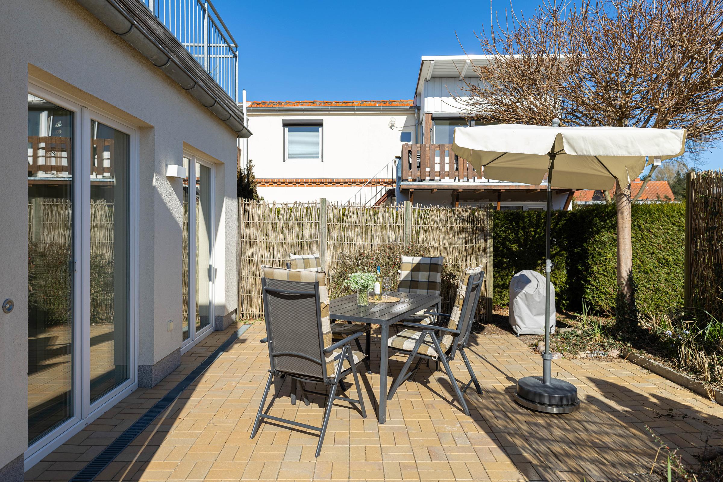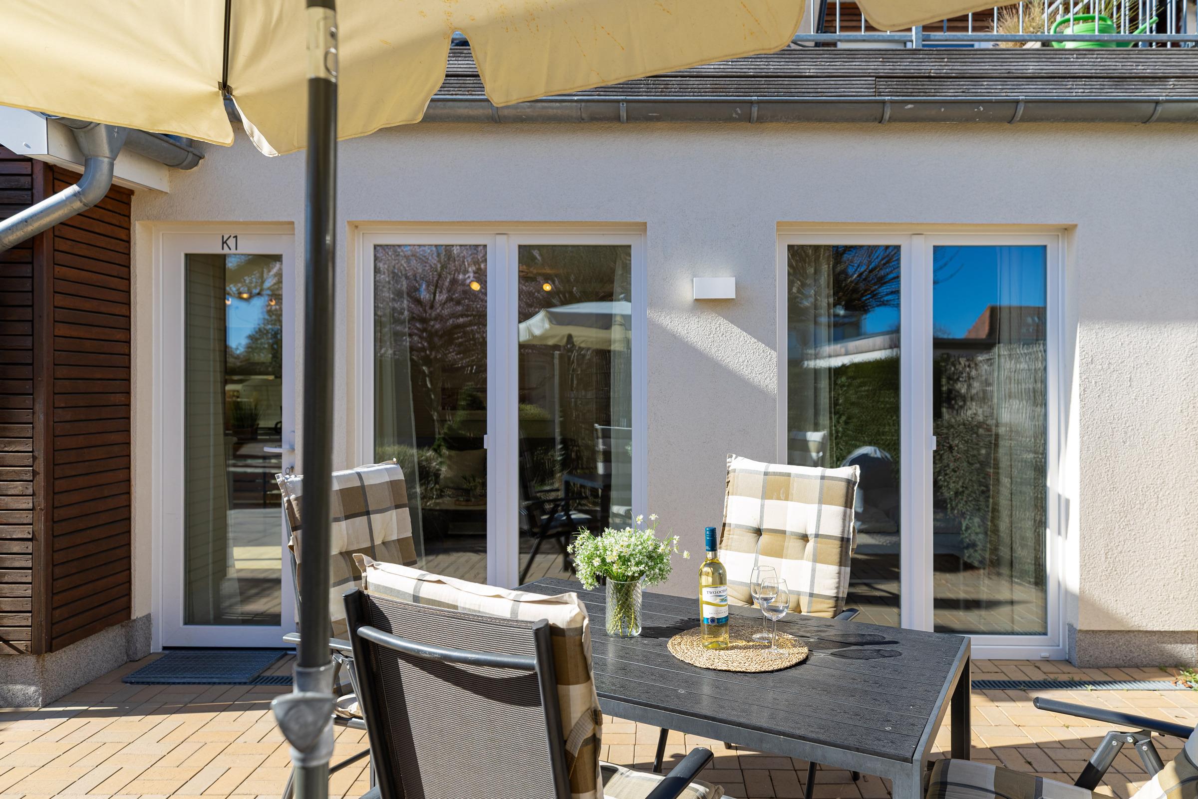 Modernes Komfort-Apartment nahe Hauptstrand in Grömitz mit zwei Schlafzimmern und Terrasse.