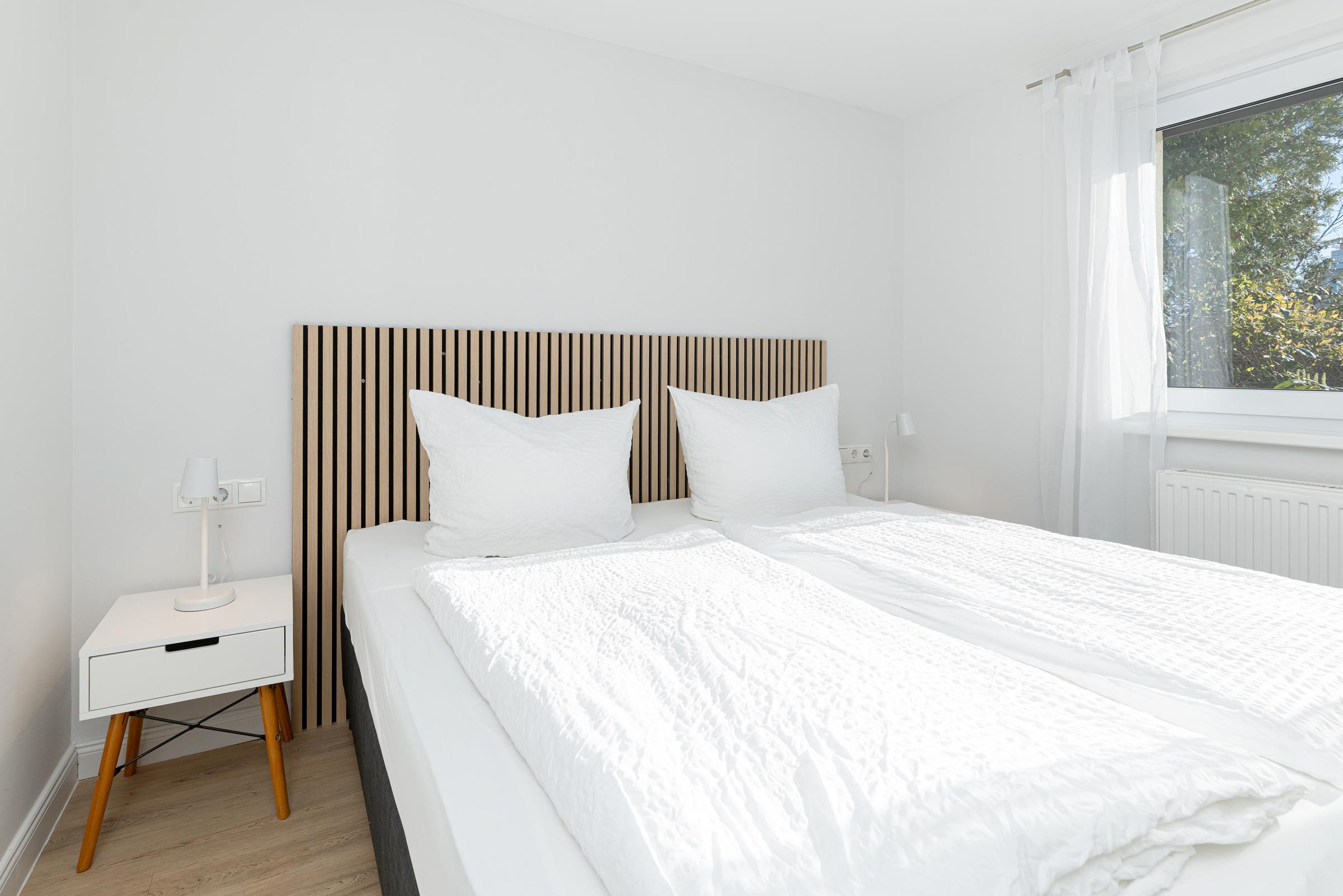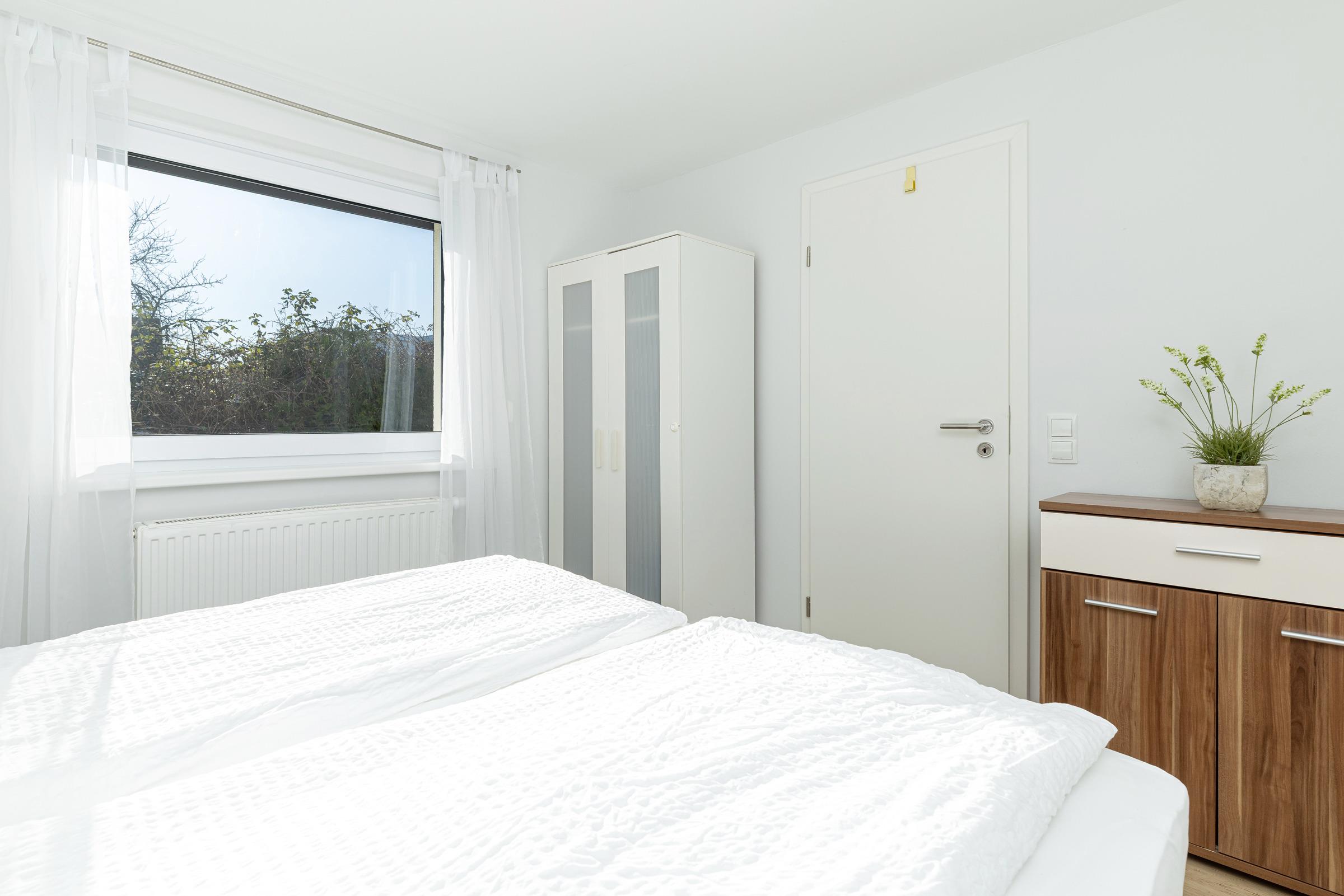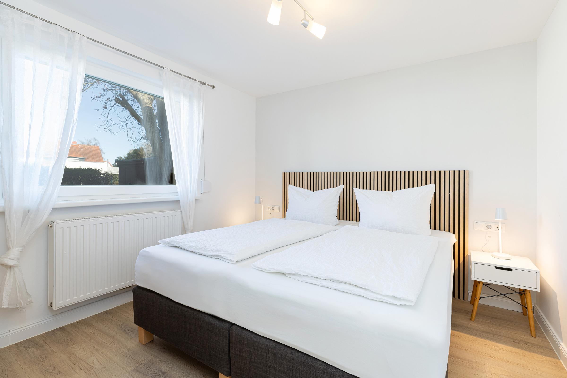 Zwei neu gestaltete Schlafräume mit hochwertigen Boxspring-Doppelbetten (90 x 200 cm) garantieren Ruhe und Schlafkomfort und Kleiderschränke bieten genügend Stauraum.