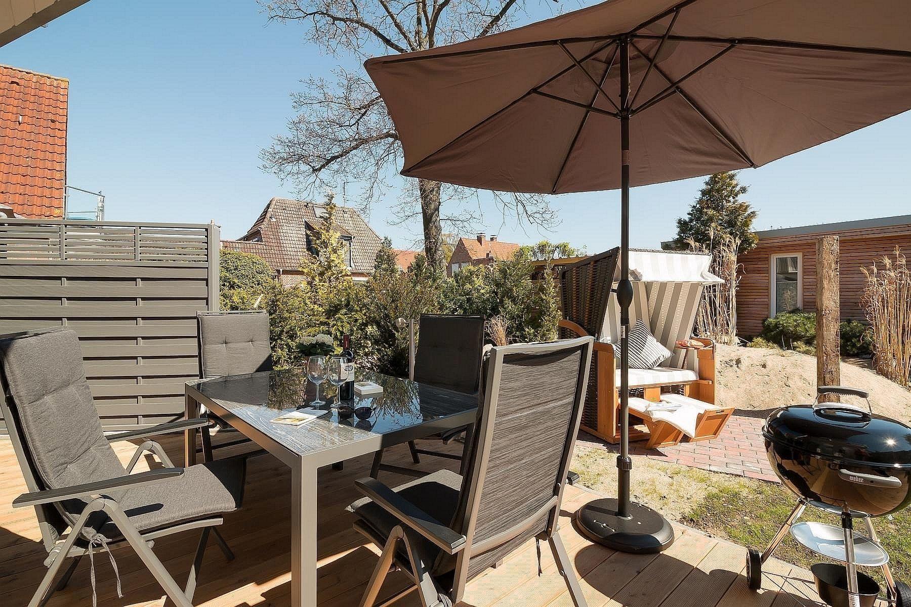 Ansprechende Komfort-Terrassen-Wohnung für 2 bis 4 Personen mit 2 Schlafzimmern und 70 m² Wohnfläche in unmittelbarer Hauptstrand-Nähe (direkt am Deich, 100 m zur Promenade, 200 m zur Seebrücke).
