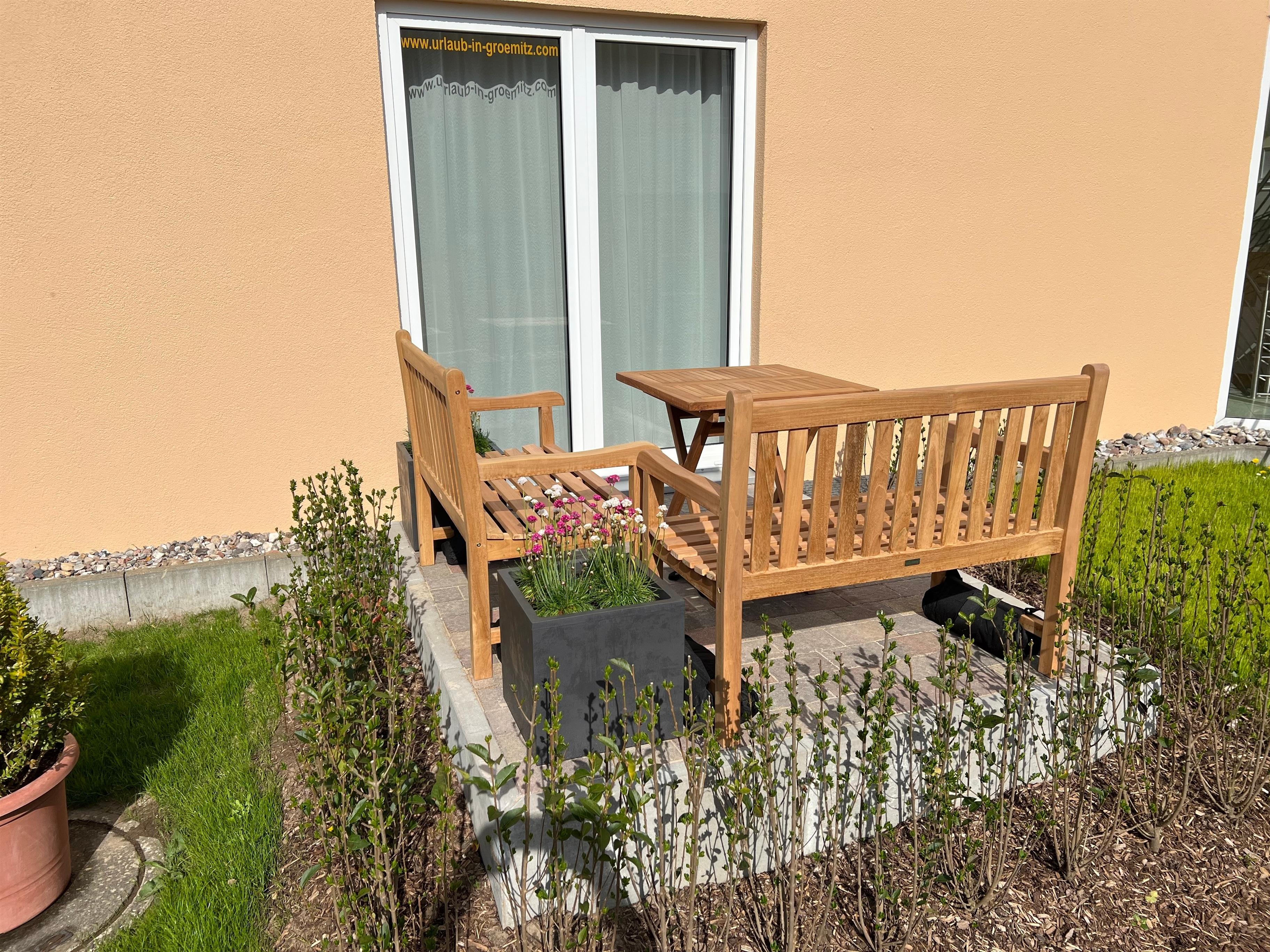 Komfortable Ferienwohnung in Grömitz mit zwei Terrassen und Nähe zum Strand für erholsame Urlaubstage.