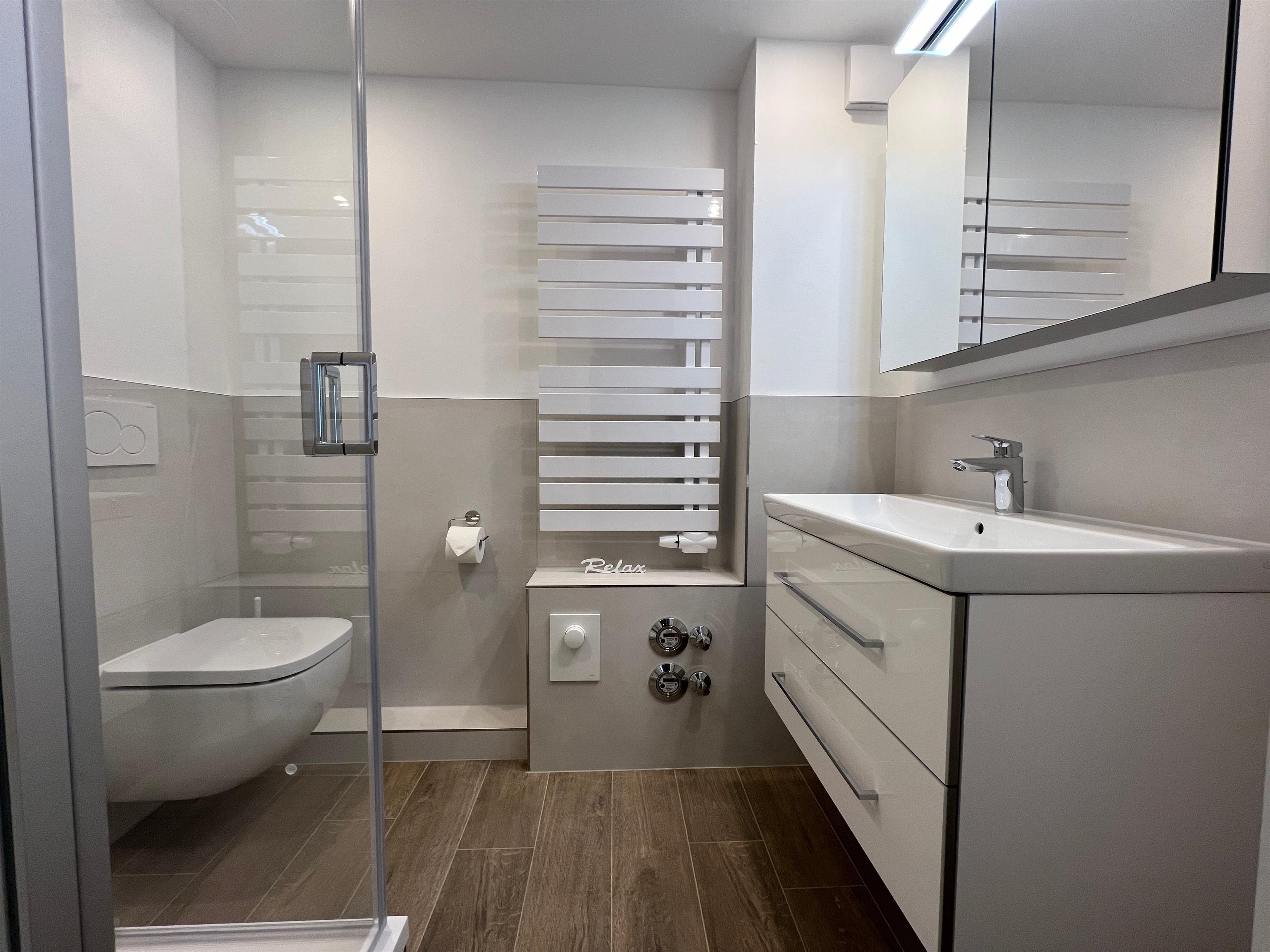 Das Badezimmer wurde Ende 2024 komplett erneuert.