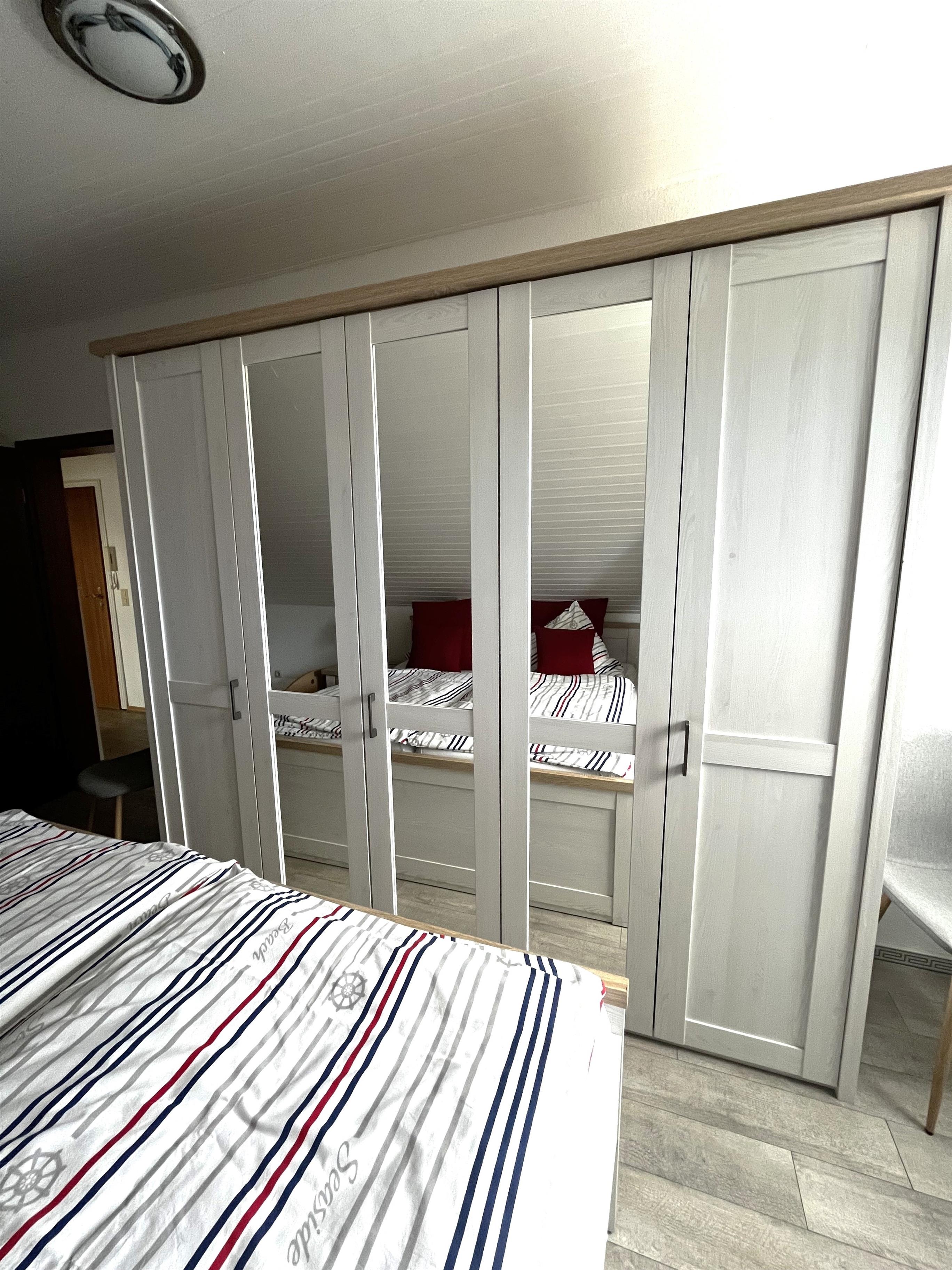 In dieser Wohnung stehen Schlafmöglichkeiten für vier Personen zur Verfügung. Für die fünfte Person kann ein Kinderreisebett / Kinderbett für ein Kind bis zu 4 Jahren gebucht werden.