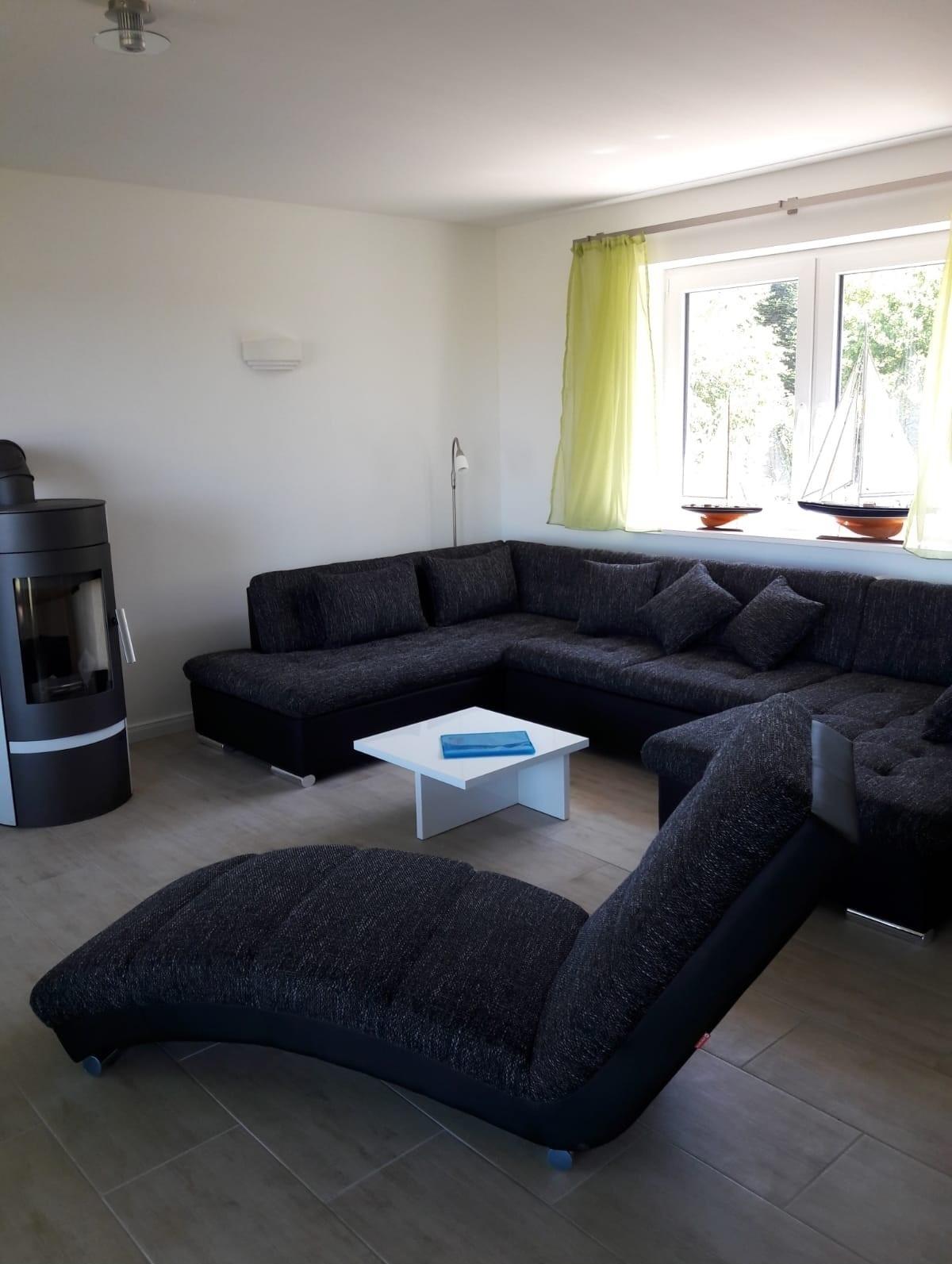 Die Küche ist komplett ausgestattet mit Mikrowelle, Backofen und Spülmaschine uvm.. Auch das Wohnzimmer bietet mit Sat-TV, DVD-Player sowie WLAn und Schwedenofen moderne Bequemlichkeit.