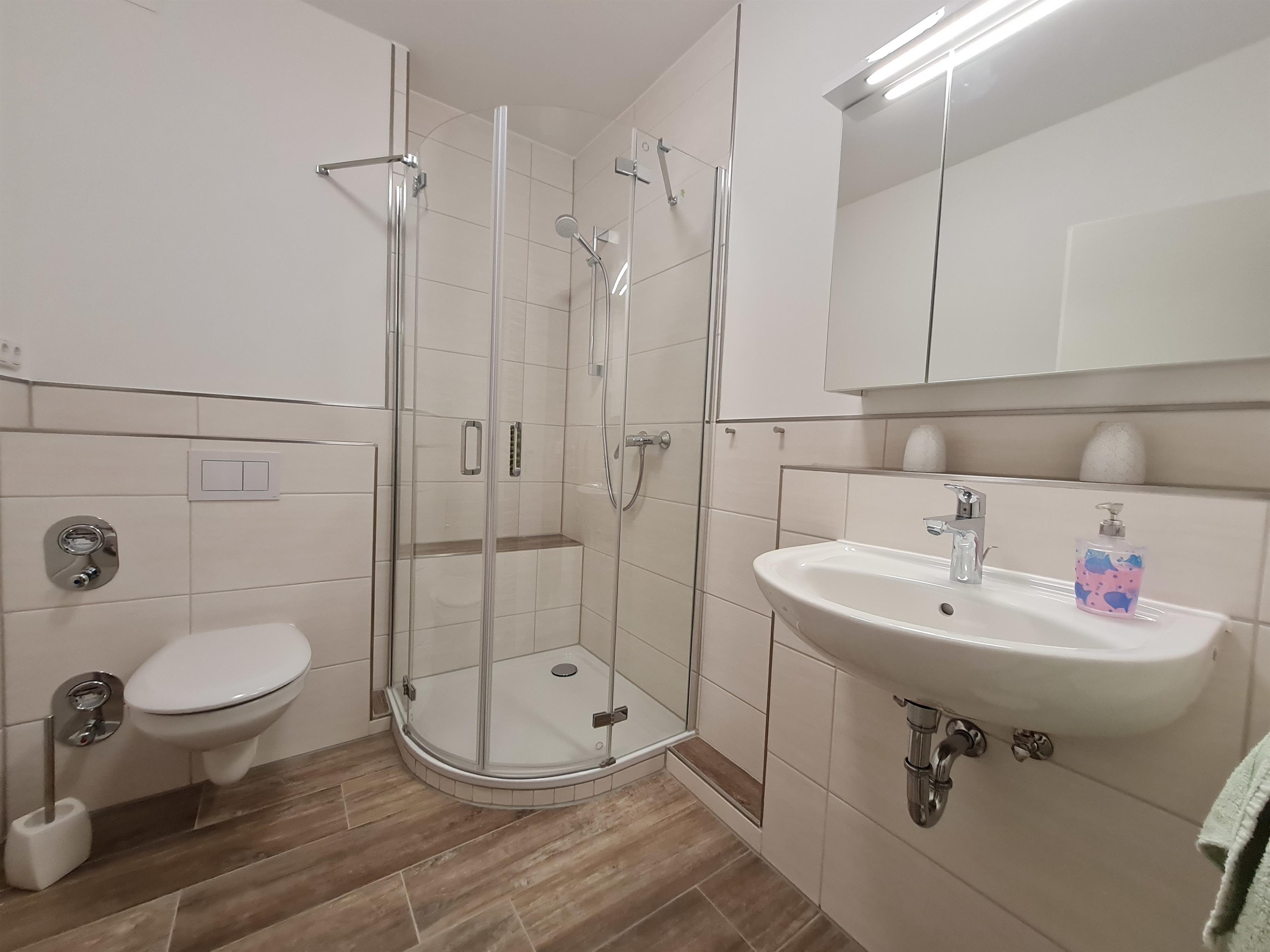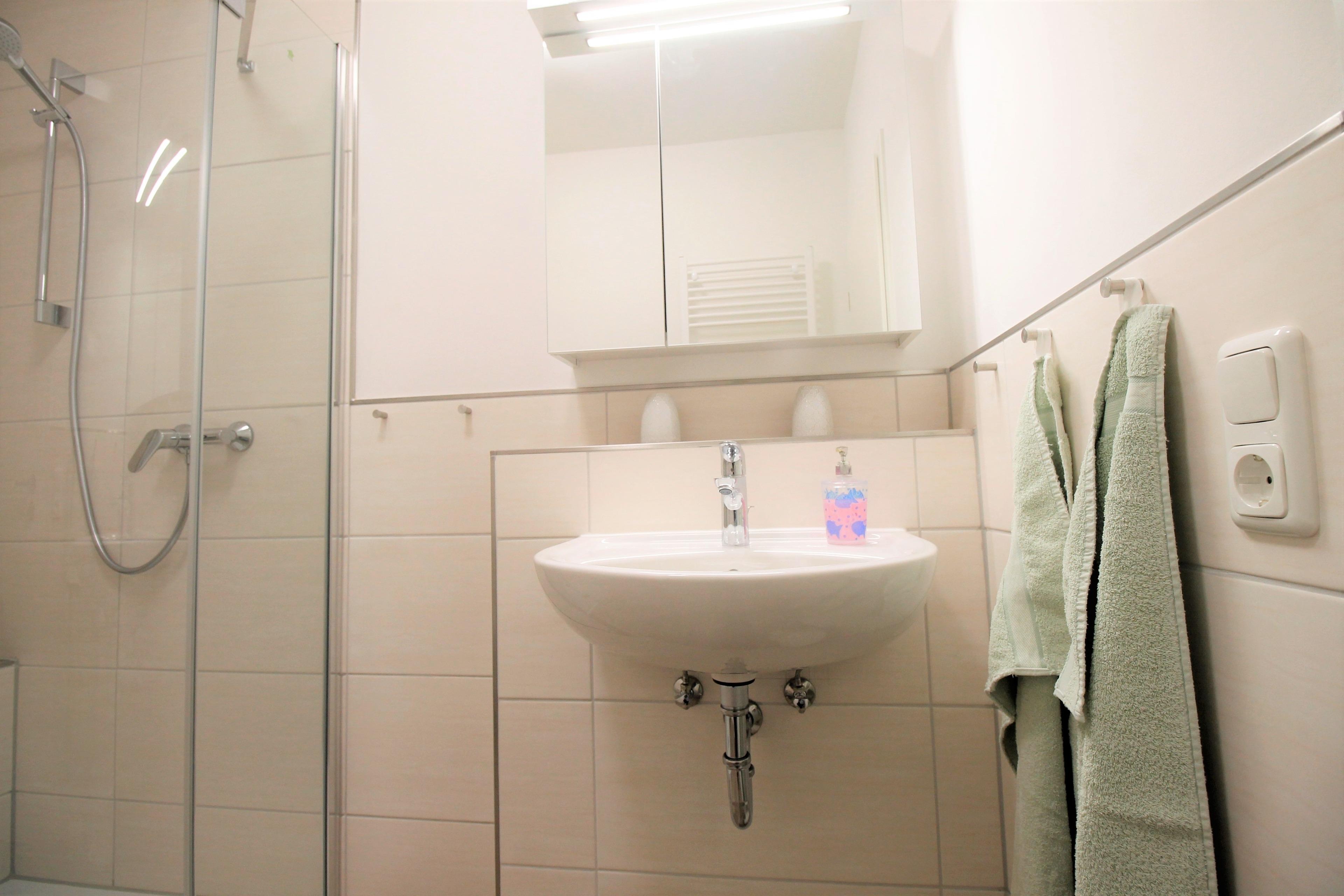 Die Wohnung verfügt über eine separate Küche, Essplatz, Farb-TV, Radio und ein modernes Duschbad mit WC.
