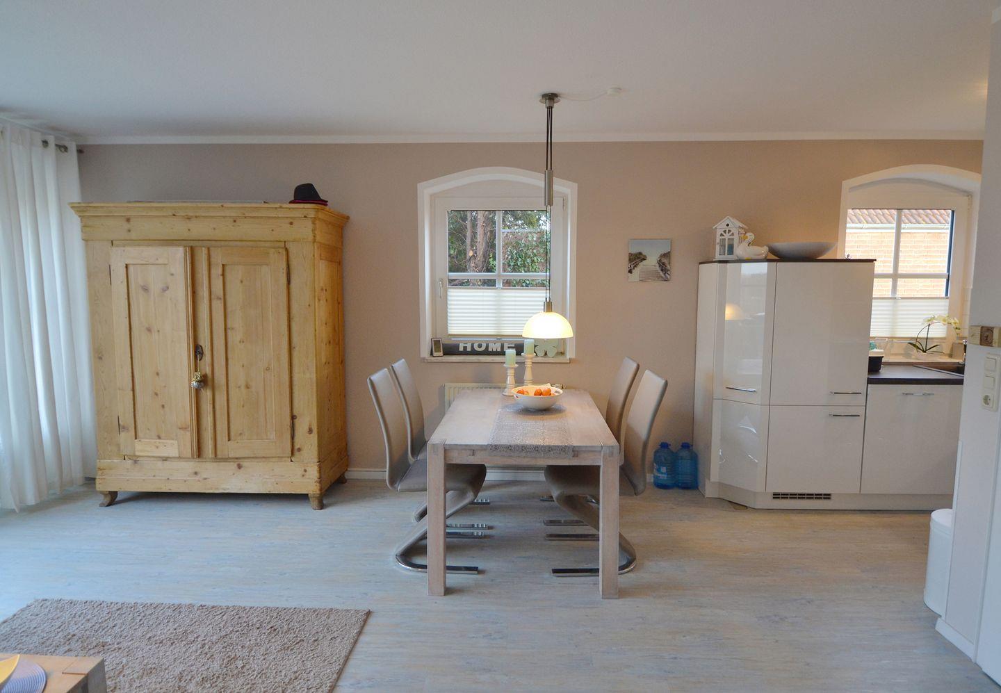 Im "Teichhaus" in Grömitz finden Sie auf 109m² über 3 Etagen verteilt 1 Schlafzimmer mit einem Doppelbett und eine Galerie (2.OG) mit zwei Einzelbetten. Der hier angegebene Preis bezieht sich immer auf 2 Erwachsene und 2 Kinder. Vom Strandaufenthalt, sportlichen Aktivitäten und/oder ausgedehnten Wanderungen erschöpft können Sie sich in dem Wannenduschbad (1.OG) oder in der Dusche (Parterre) erfrischen. Zwei TV-Geräte (Wohnbereich und Galerie) sorgen für Unterhaltung und Information. Auf der Terrasse können Sie bei Ihrem Lieblingsgetränk nicht nur am Nachmittag relaxen, sondern auch den Sonnenuntergang genießen. Ihr PKW steht währenddessen auf dem hauseigenen Parkplatz. Trotz der herrlich ruhigen Lage, sind Sie in nur 10 Minuten zu Fuß am Strand, im modernen Yachthafen oder an der Steilküste. Um sich an einem Kaffee mit Kuchen, Mittag- oder Abendessen zu erfreuen, sind Sie - ebenfalls zu Fuß - in 20 Gehminuten im Zentrum, an der Seebrücke und auf der Promenade, wo Sie auch bummeln und shoppen und das kürzlich vollendete Wellenhallenbad nutzen können.