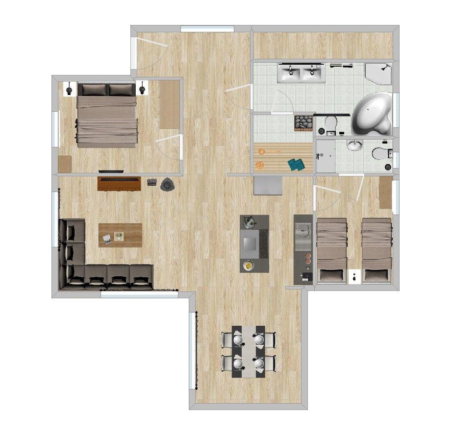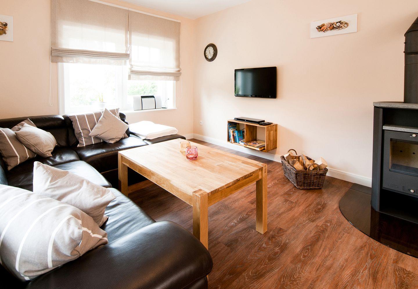 Die ruhig gelegene Erdgeschoss Wohnung 'Klabautermann' mit 86 m² bietet jeglichen Komfort und Luxus für bis zu 4 Personen. Zur Ausstattung gehören: Bad mit Sauna & Whirlwanne, Gäste WC mit Dusche, Eltern- Schlafzimmer, Kinderzimmer mit 2 Einzelbetten, offene voll ausgestattete Wohn- Küche, Kamin inkl. Holz, Flat TV, DVD, kostenloser Internet und W-LAN Anschluss, Safe für Ihre Wertsachen, Fußbodenheizung, Südterrasse mit Ostseeblick und hochwertigen Gartenmöbeln, Parkplatz direkt am Haus. Das Elternschlafzimmer mit einem Doppelbett, sowie das Kinderzimmer mit zwei Einzelbetten, laden zum gemütlichen Schlafen ein. Die offene, voll ausgestattete Küche bietet jeglichen Komfort: Spülmaschine, Kaffeemaschine, Toaster, Wasserkocher, Eierkocher, Mikrowelle, Side-by-Side Kühl- und Gefrierschrank, Töpfe, Pfannen, Geschirr, Besteck, Salz, Pfeffer, Aluminiumfolie, Backpapier etc. Im Wintergartenstil gehaltenen Esszimmer können Sie Ihre Mahlzeiten zu sich nehmen. Im Wohnzimmer erwartet Sie ein Flachbildschirm mit DVD Recorder, ein kostenloser W-LAN Anschluss um immer up to date zu sein, ein dänischer Kaminofen inklusive Holz und die Fußbodenheizung für wohlige Wärme an kalten Tagen. Alle unsere Häuser und Wohnungen sind Nichtraucherobjekte, allergikergerecht und voll ausgestattet. Wir legen sehr großen Wert auf einen hohen Sauberkeitstandard!
