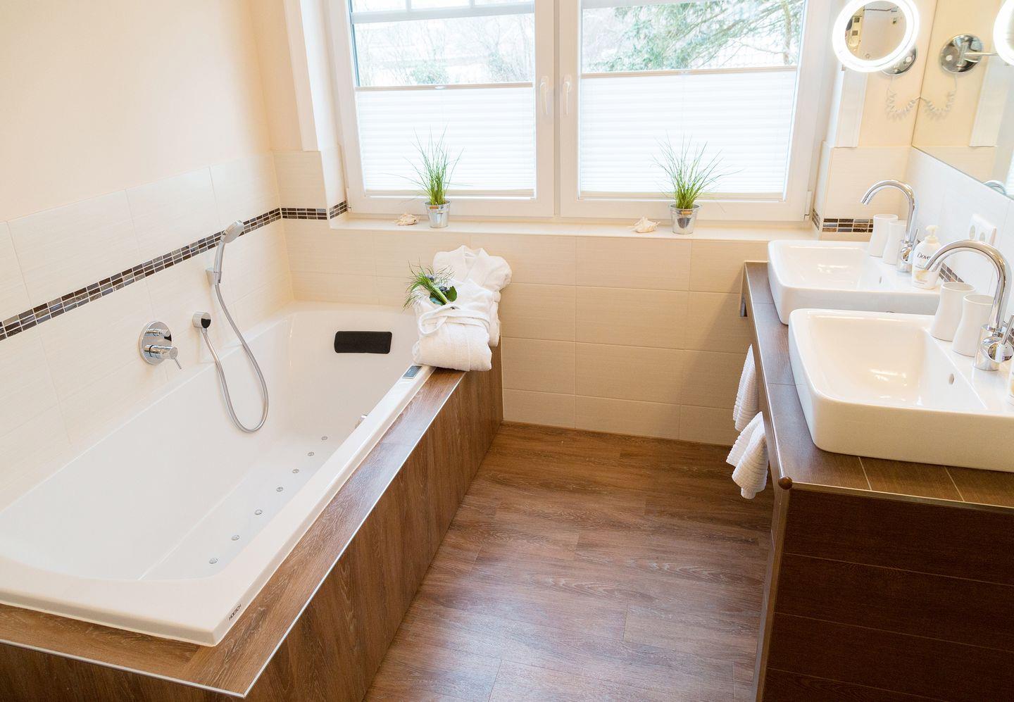 Die Wohnung ist hell und freundlich eingerichtet. Die hochwertige Ausstattung wurde mit viel Liebe zum Detail ausgewählt. Wohlige Entspannung finden Sie in Ihrem eigenen Wellnessbereich. Genießen Sie einen belebenden Saunagang oder relaxen Sie im wohnungseigenen Whirlpool - in unserem Dünenhaus stehen alle Zeichen auf Erholung. Und was gibt es Schöneres, als gemeinsam den Abend vor dem Kamin ausklingen zu lassen? Der Balkon der Wohnung ist mit gemütlichen Liegen ausgestattet, die zum ausgiebigen Sonnenbaden einladen. Außerdem verfügt sie über einen Grill auf dem Grillplatz, auf dem Sie nach Herzenslust knackige Würstchen brutzeln können. Ein Handtuch- und Bettwäsche Service ist ebenfalls inklusive. Gegen Gebühr: Bei uns haben Sie die Möglichkeit, im Keller des Hauses Ihre Wäsche zu waschen und zu trocknen.