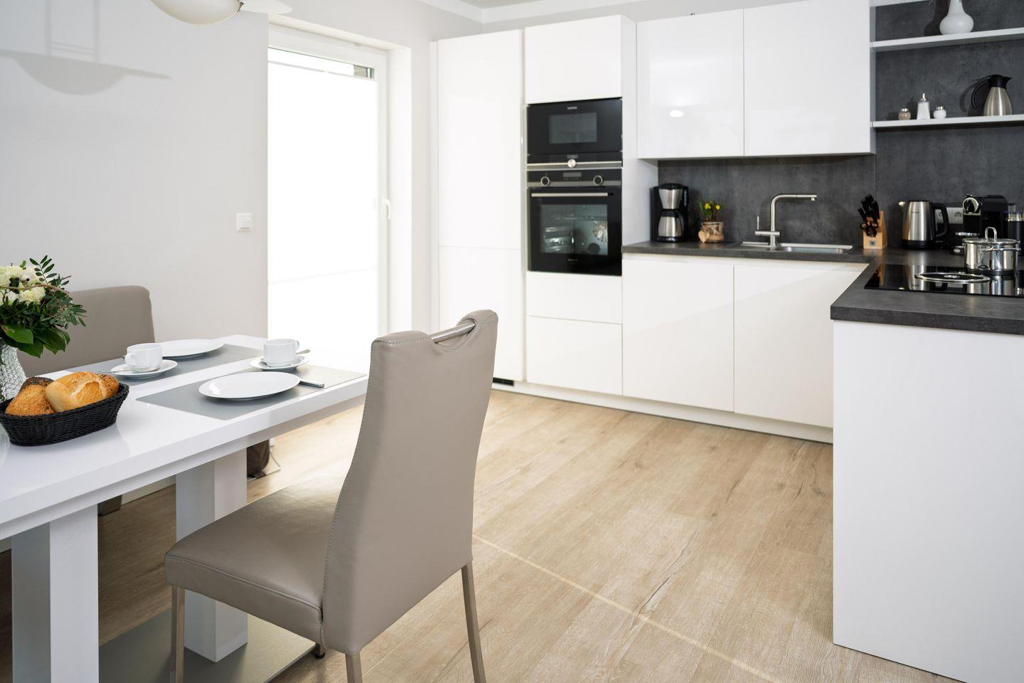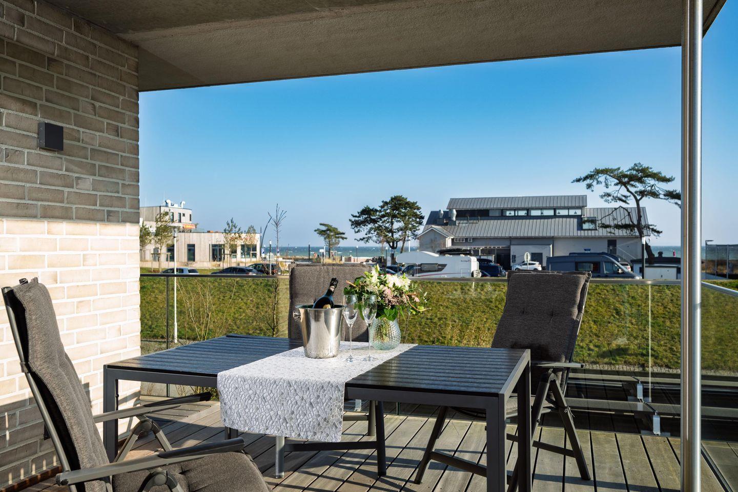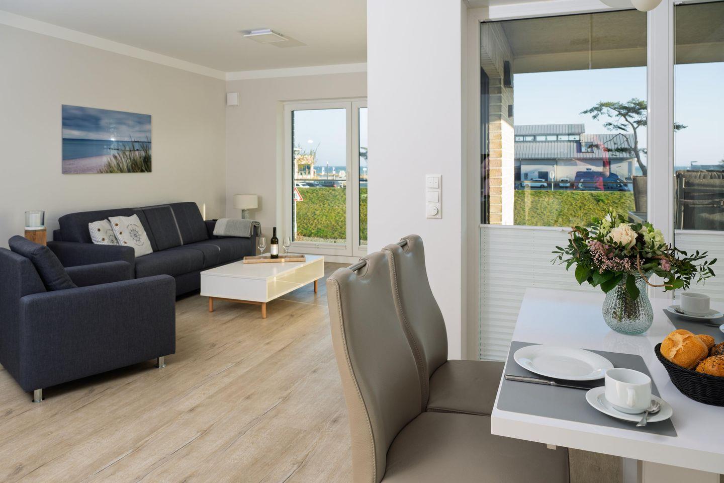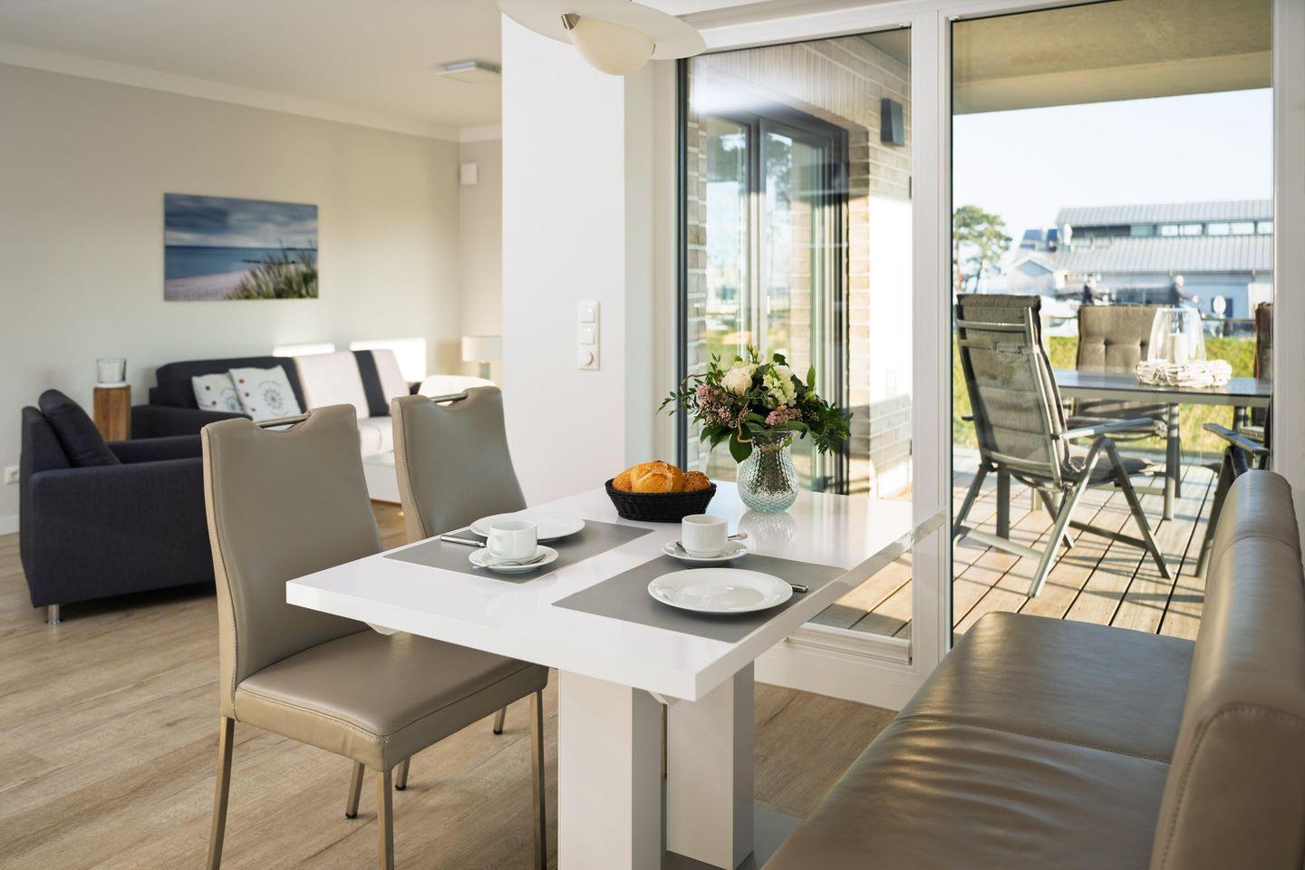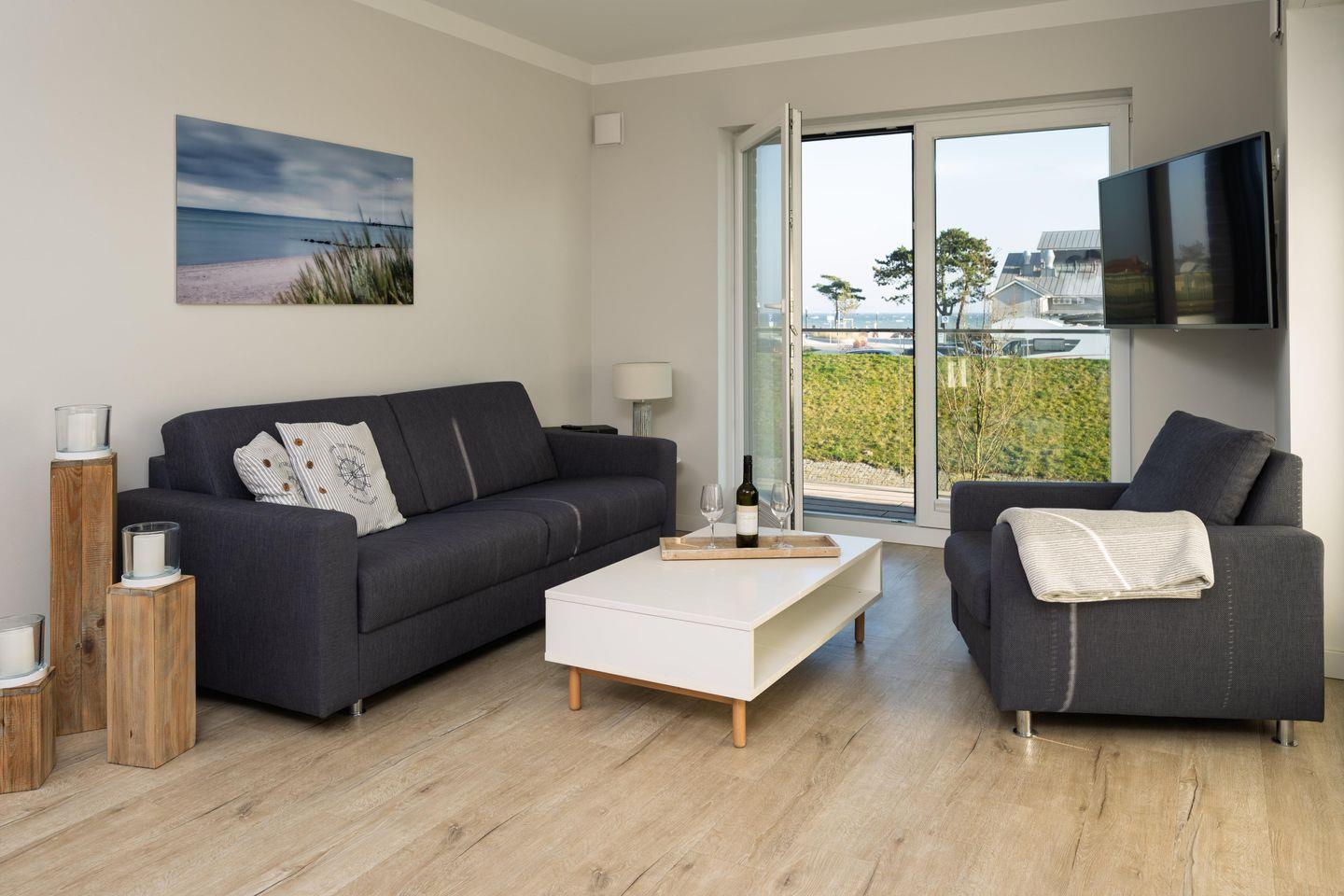 Die strandnahe Wohnung ist nach der Fertigstellung 2020 erstmals in der Vermietung und bietet einen tollen Blick auf die Ostsee! Sie ist buchbar für bis zu 3 Personen (der angegebene Preis bezieht sich immer auf 2 Erwachsene und 1 Kind) und es sind nur wenige Schritte zum Strand und zur Ostsee. Auf 79m² befinden sich zwei Schlafzimmer mit Doppelbetten (180x200cm) mit einem 50 Zoll Smart- TV, ein geräumiges Bad mit ebenerdiger Dusche und Sauna. Im Wohnzimmer erwartet Sie ein 50 Zoll Smart- TV, der Zugang zum großzügigen, möblierten Balkon in Südwest Lage und der herrliche Blick zur Ostsee. Zudem bieten wir Ihnen schnelles und kostenloses WLAN (bis zu 1.000 Mbit/s). Die Küche ist komplett ausgestattet und hat ein Bora Induktions-Kochfeldabzug zudem gibt es einen Essbereich. Ein separater Raum mit kostenfreier Nutzung von Waschmaschine und Trockner ist im Haus, außerdem ist ein Abstellraum vorhanden, ebenso ein PKW Stellplatz auch.