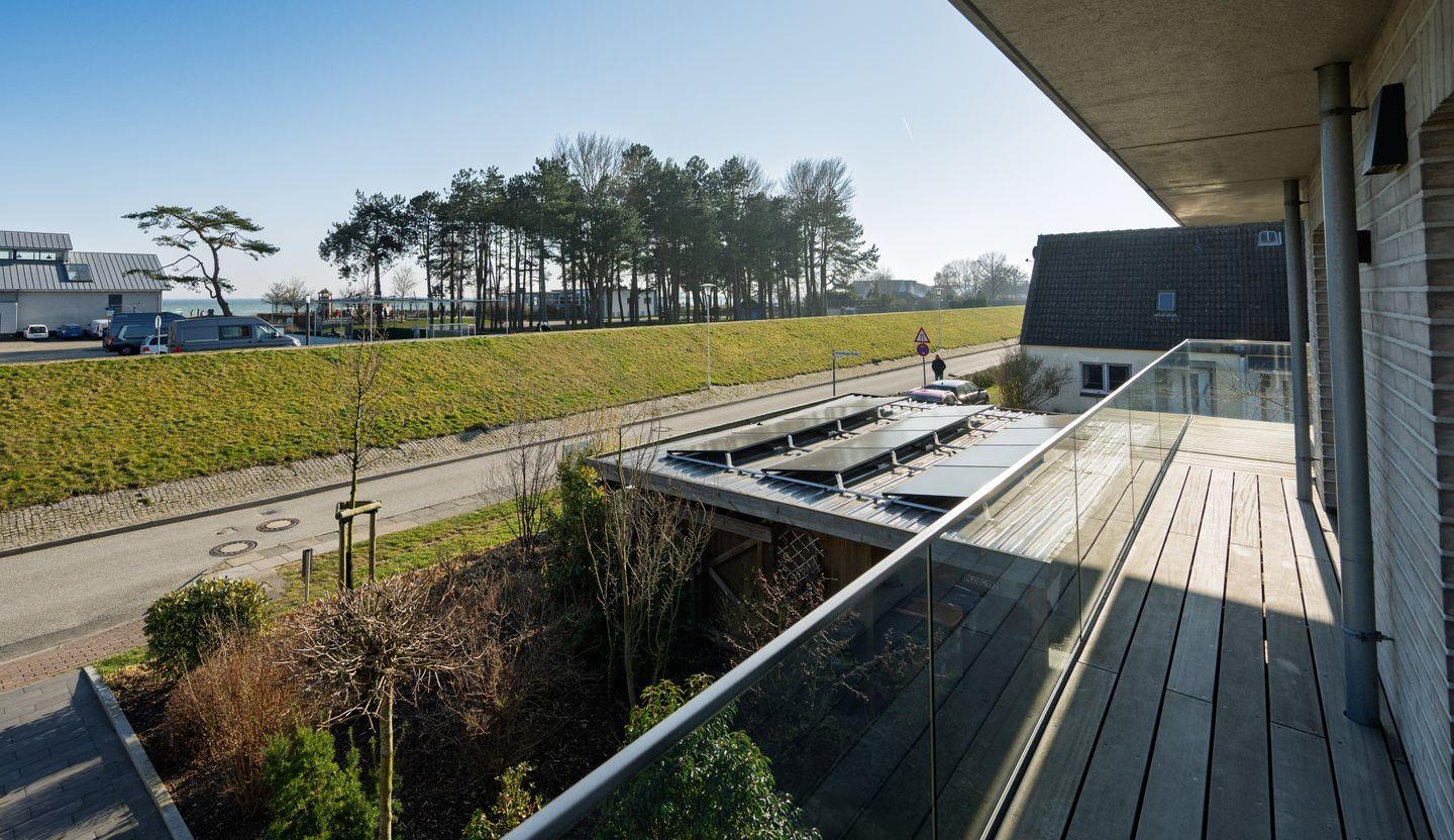 Direkt hinterm Deich gelegen befindet sich die Ferienwohnung Ostseeblick in der Schützenstraße 38. Die im 1.OG gelegene Wohnung mit Fahrstuhl hat einen wunderbaren Blick zur Ostsee. Auf 79m² befinden sich zwei Schlafzimmer mit je einem Doppelbett, eine Wohnküche sowie ein Bad mit Sauna. Zudem haben Sie einen großen Balkon und einen PKW Stellplatz.