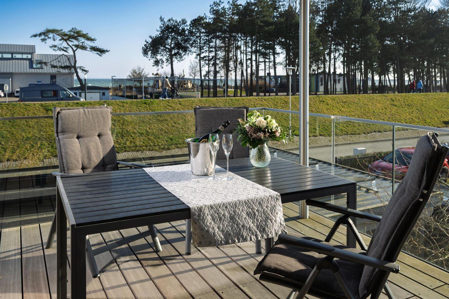 Luxuriöse Ferienwohnung in Grömitz mit Sauna, Balkon und herrlichem Meerblick.
