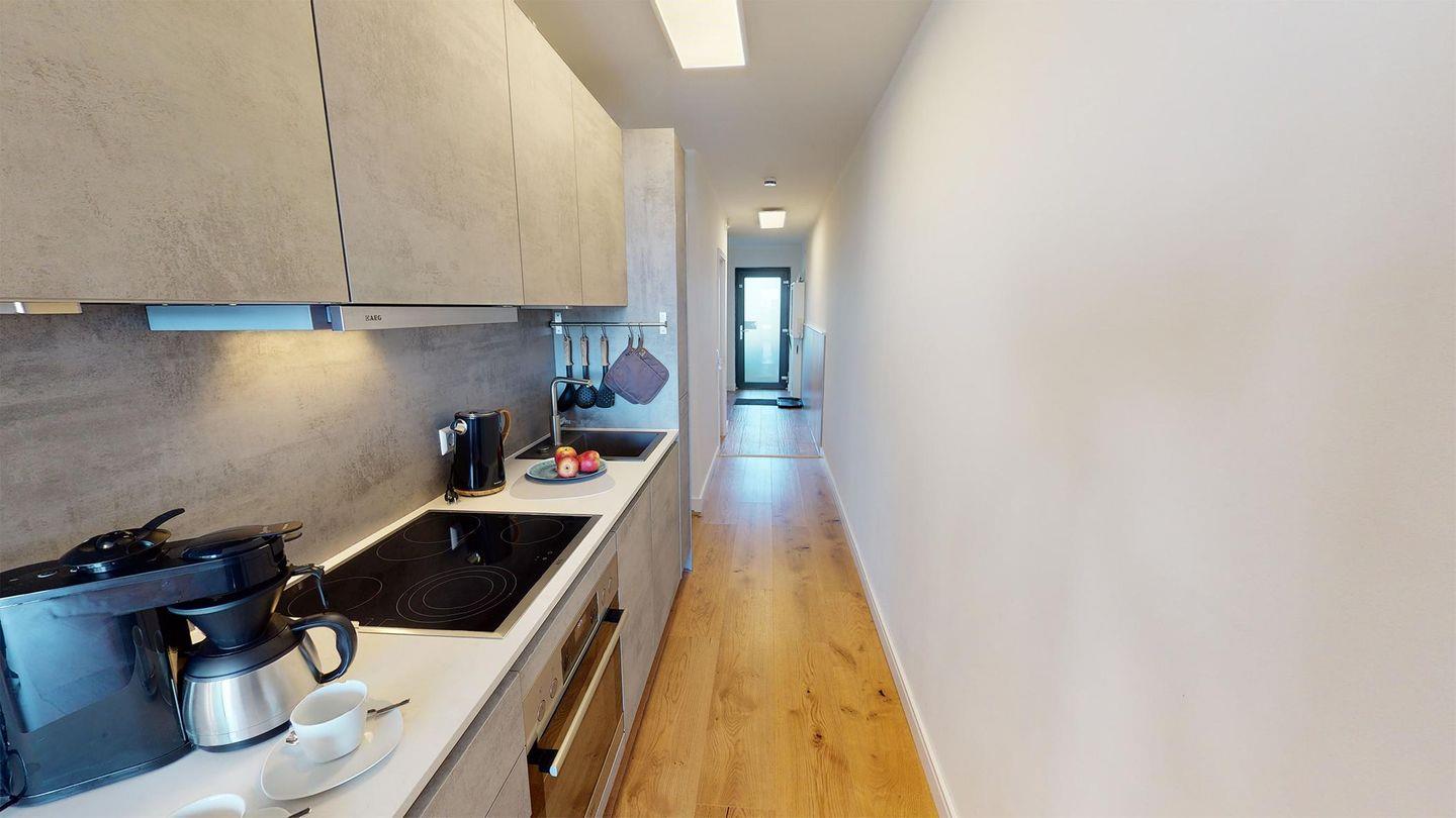 Durch die offene, modern ausgestattete Küche gelangen Sie in den gemütlichen Wohnbereich mit einer kleinen Essecke und einem einladenden Sofabereich. Ein Schlafzimmer verfügt über ein Einzelbett und ein Hochbett sowie einen Flachbildfernseher. Im zweiten Schlafzimmer erwartet Sie ein großes Doppelbett, ein Flachbildfernseher und ein Kleiderschrank. Das moderne Badezimmer mit Dusche und Sauna rundet die Wohnung ab (geringe Extragebühr durch Münzeinwurf, max. 2,00€ pro Saunagang).