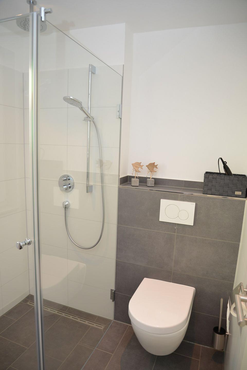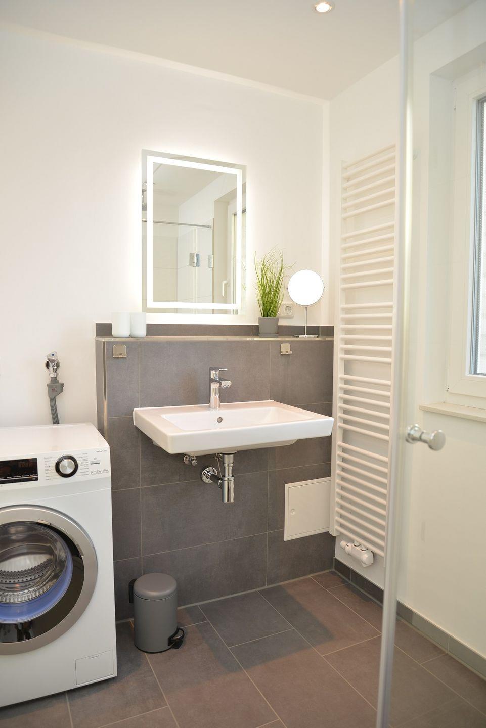 Außerdem verfügt die Wohnung über ein Duschbad (bodentiefe Dusche) mit eigener Waschmaschine, sowie einem Fenster. Ein Haartrockner ist ebenfalls vorhanden.