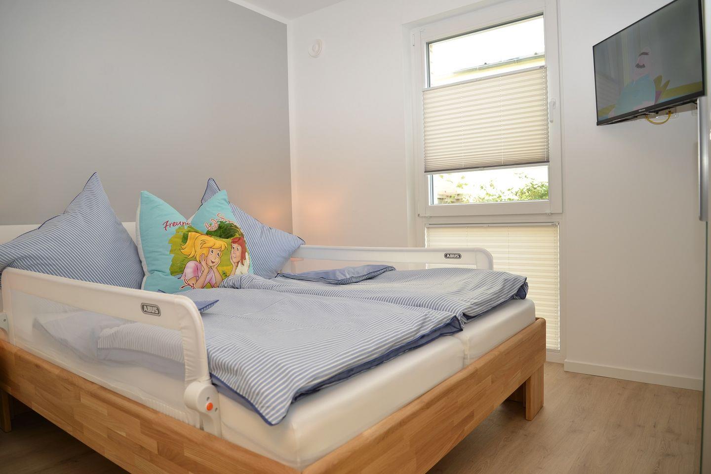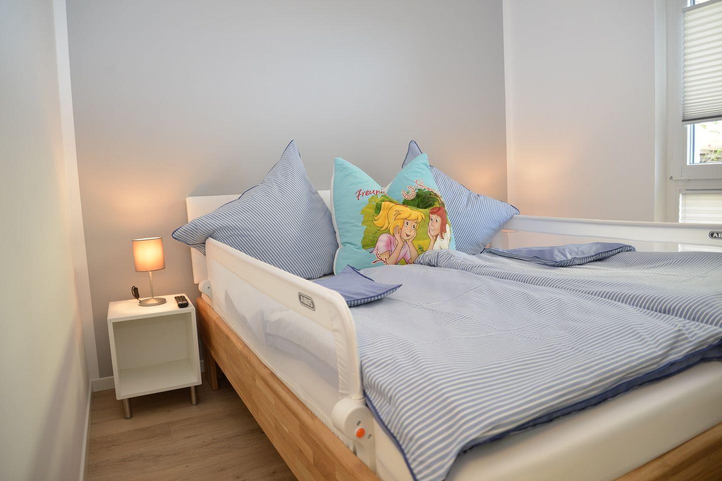 Außerdem befindet sich ein beidseitiger Betten-Rausfallschutz für kleinere Kinder in der Wohnung.