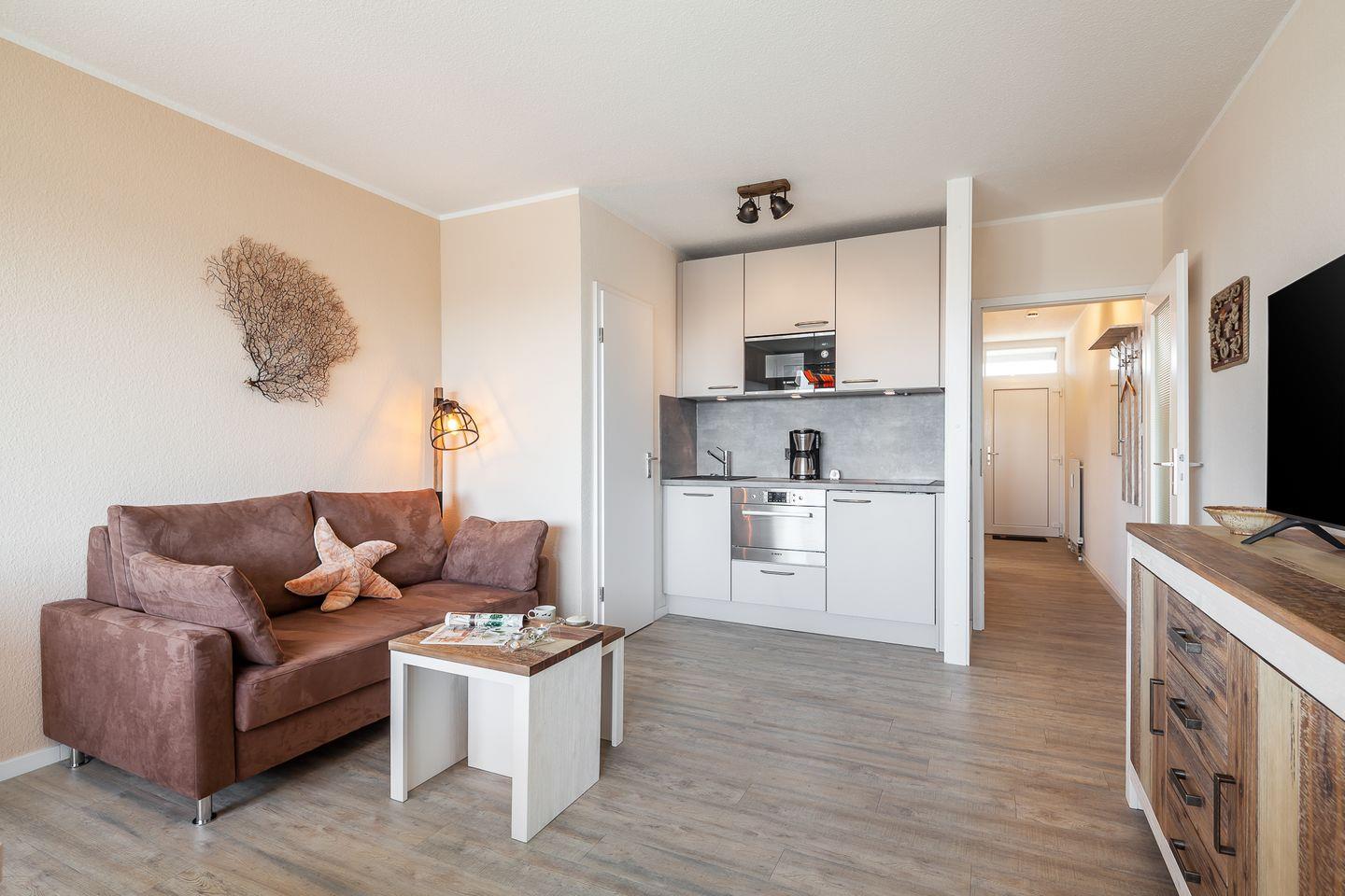 Das Apartment ist mit Designplanken in Holzoptik ausgelegt und bietet viel Gemütlichkeit für 2 Personen.