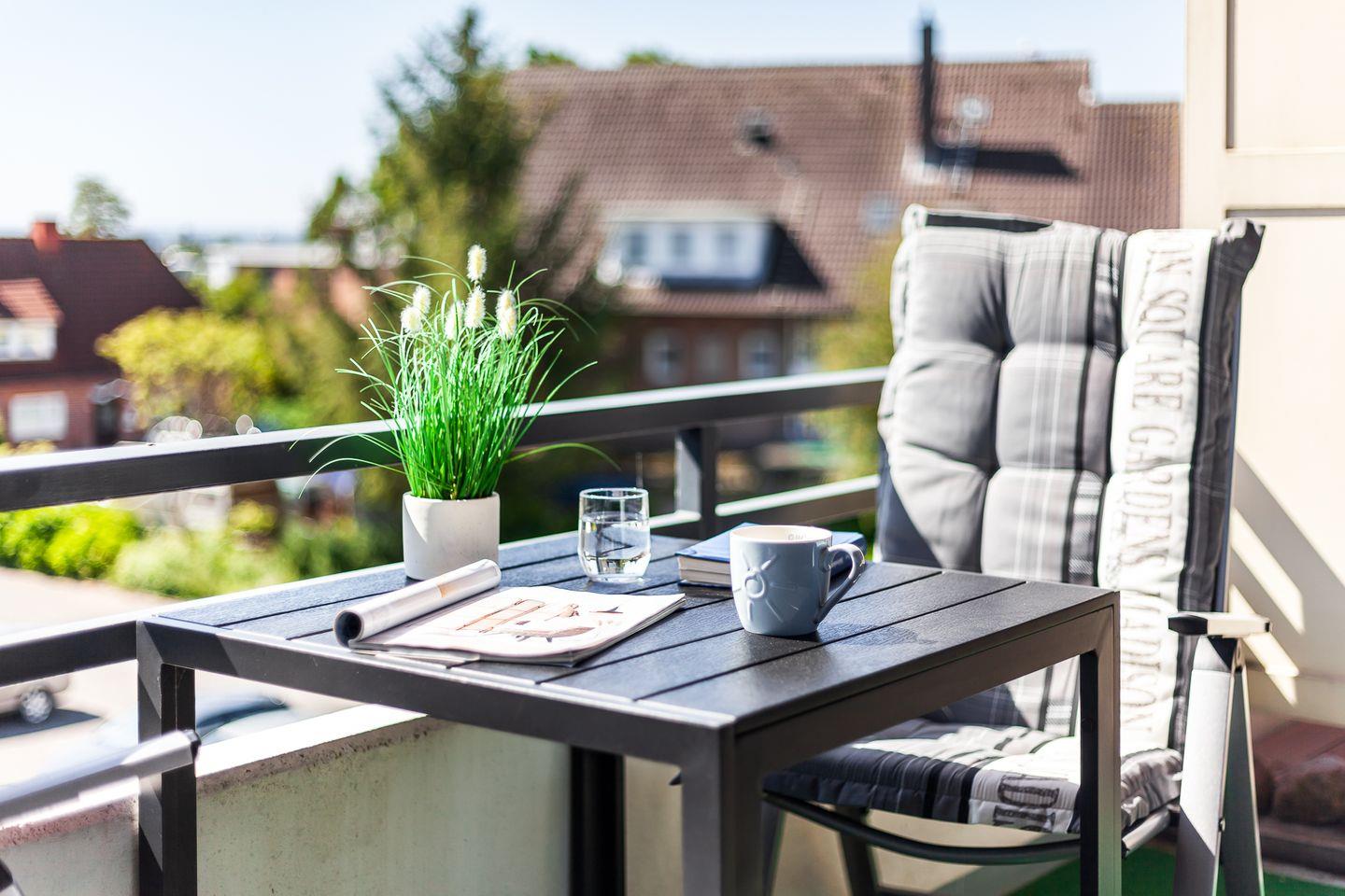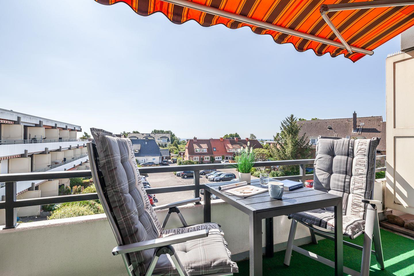 Vom Balkon in Süd-Lage können Sie Teile der Ostsee sehen.