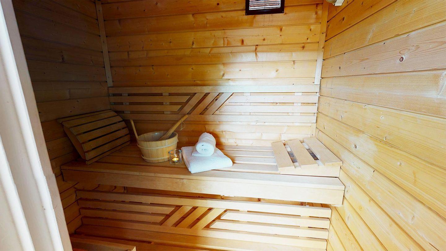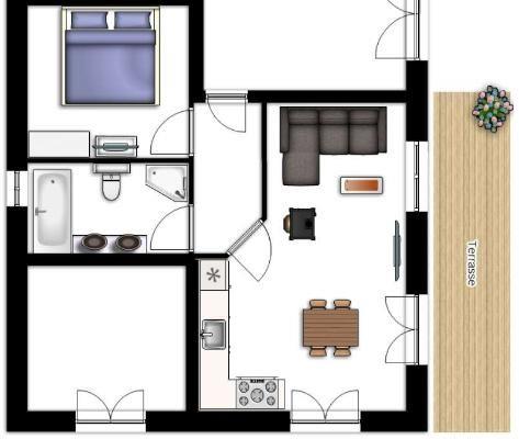 Dieses moderne, helle 2-Zimmer-Ferienapartment bietet ein Schlafzimmer für 2 Gäste (Doppelbett 2 x 2 m), ein Vollbad mit separater Dusche, ein gemütliches Wohnzimmer mit Kamin und offener Küche und eine schöne Terrasse. Ihre eigene Sauna befindet sich im separaten Saunahaus an der Terrasse.